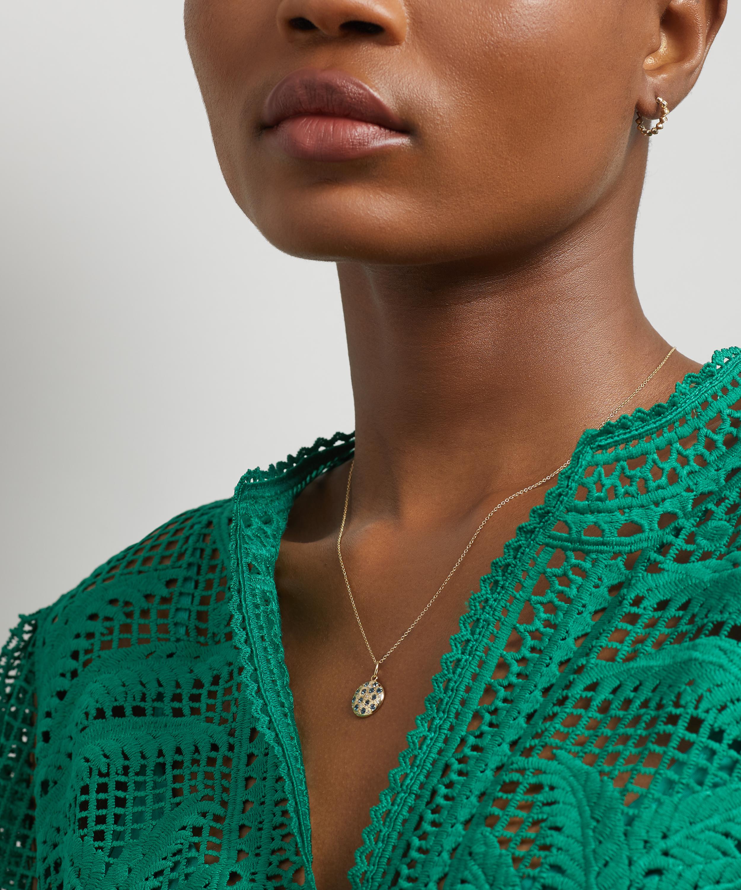 A modern heirloom that pays tribute to Liberty’s collector spirit, this statement Equinox pendant is complete with lab-grown blue London topaz stones.