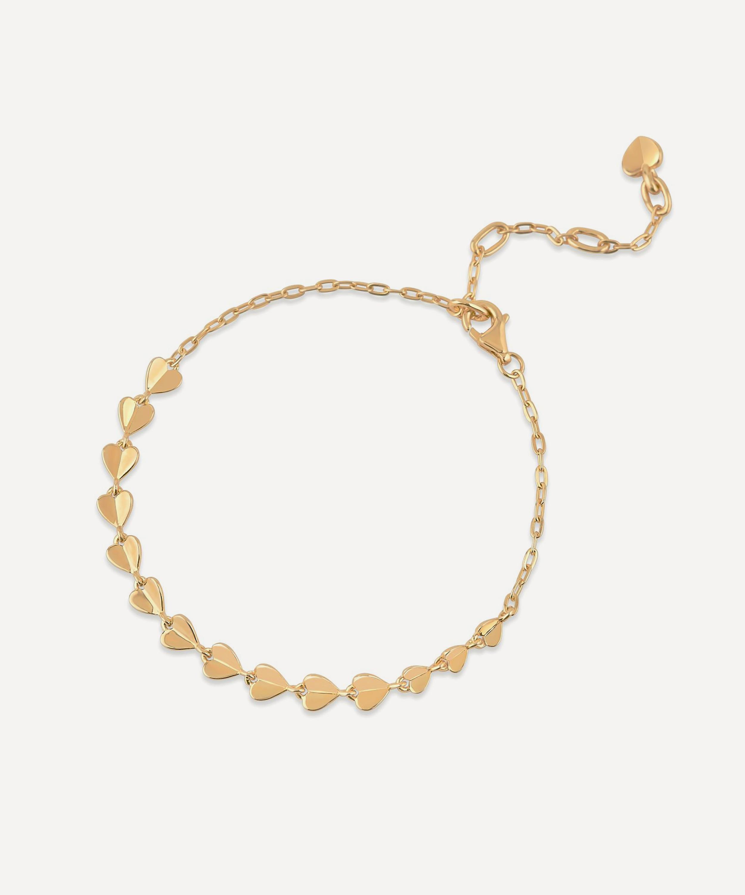 Crafted from 9ct gold, it combines sophisticated luxury with playful design, featuring a hammered trace chain adorned with fluttering, folded heart charms. Made to be treasured and cherished for generations to come, it’s ideal for both casual and formal looks – try pairing it with other pieces from the collection for a coordinated finish.