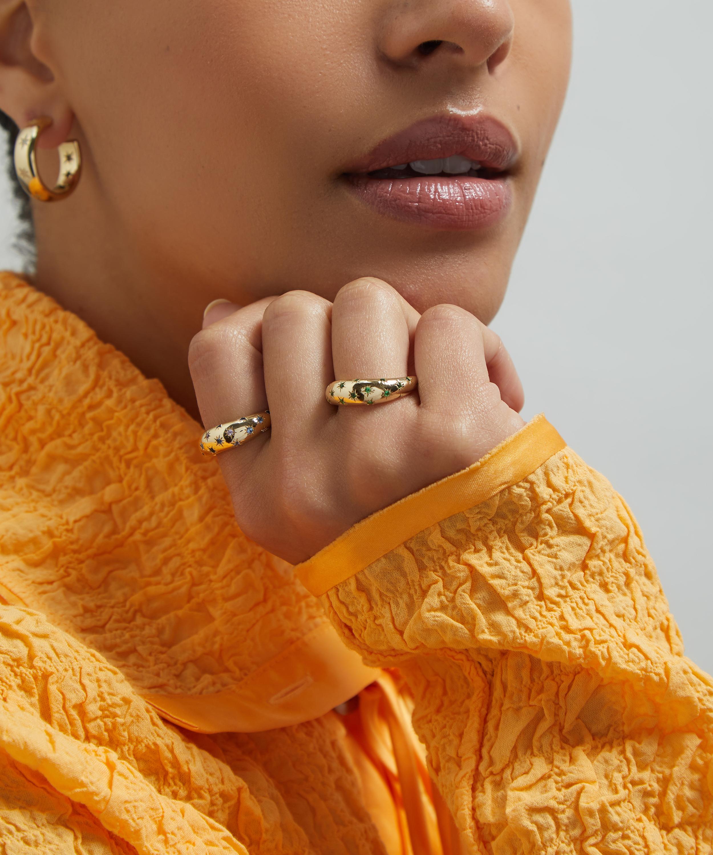 Translating print details and vintage shapes into luxuriously jewelled textures, the Ianthe Star ring captures our studio’s historic passion for artists and artisans. Engraved on the inside with our branded Liberty logo, the ring is designed in London and crafted by hand at a small atelier in Italy, its delicate shapes inspired by the artworks of visionary 1930s female surrealists. A modern heirloom that pays tribute to Liberty’s collector spirit.