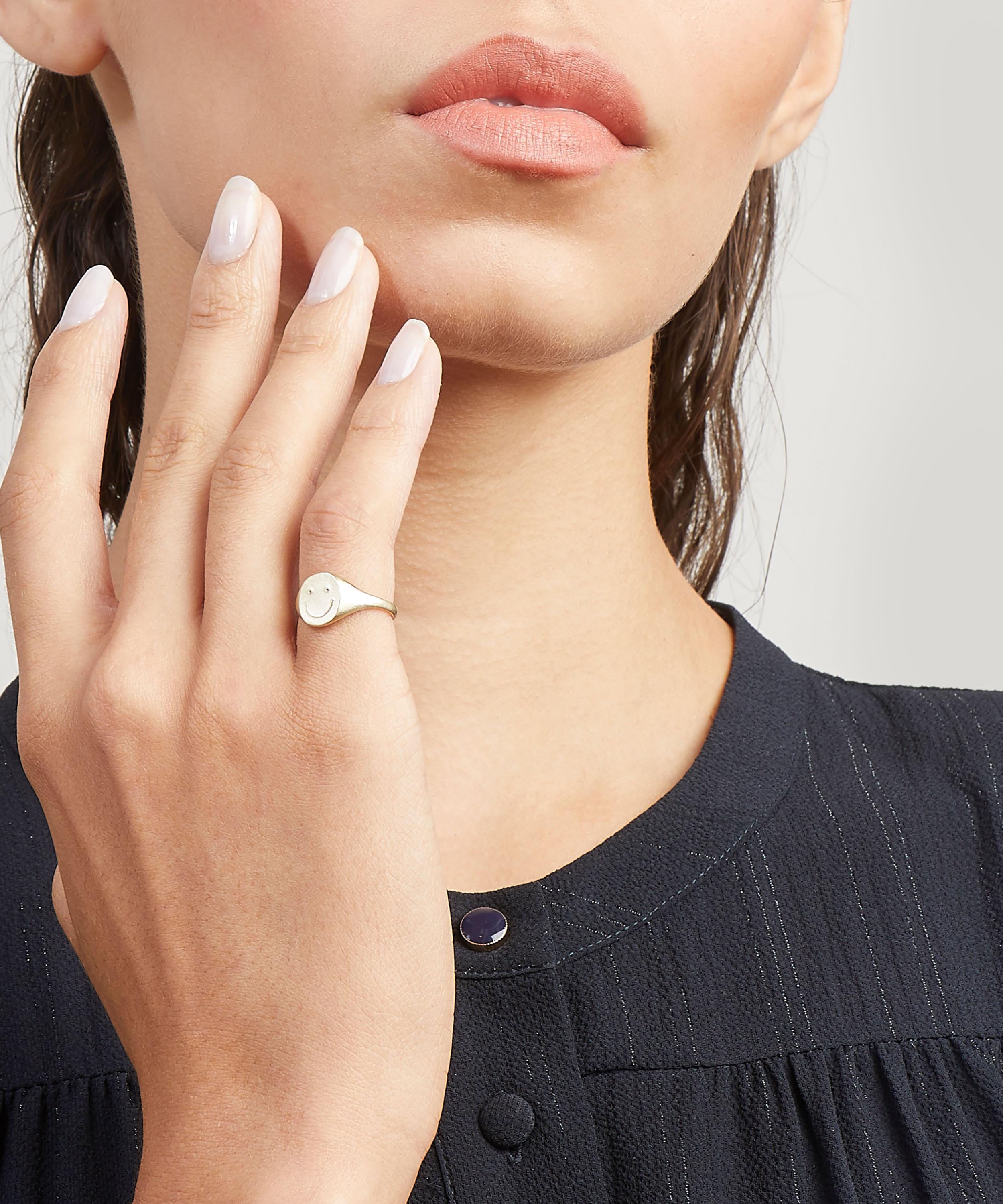 This Happy Face signet ring from Seb Brown cheekily showcases how the brand balances playful and contemporary design codes with an effortlessly contemporary aesthetic.