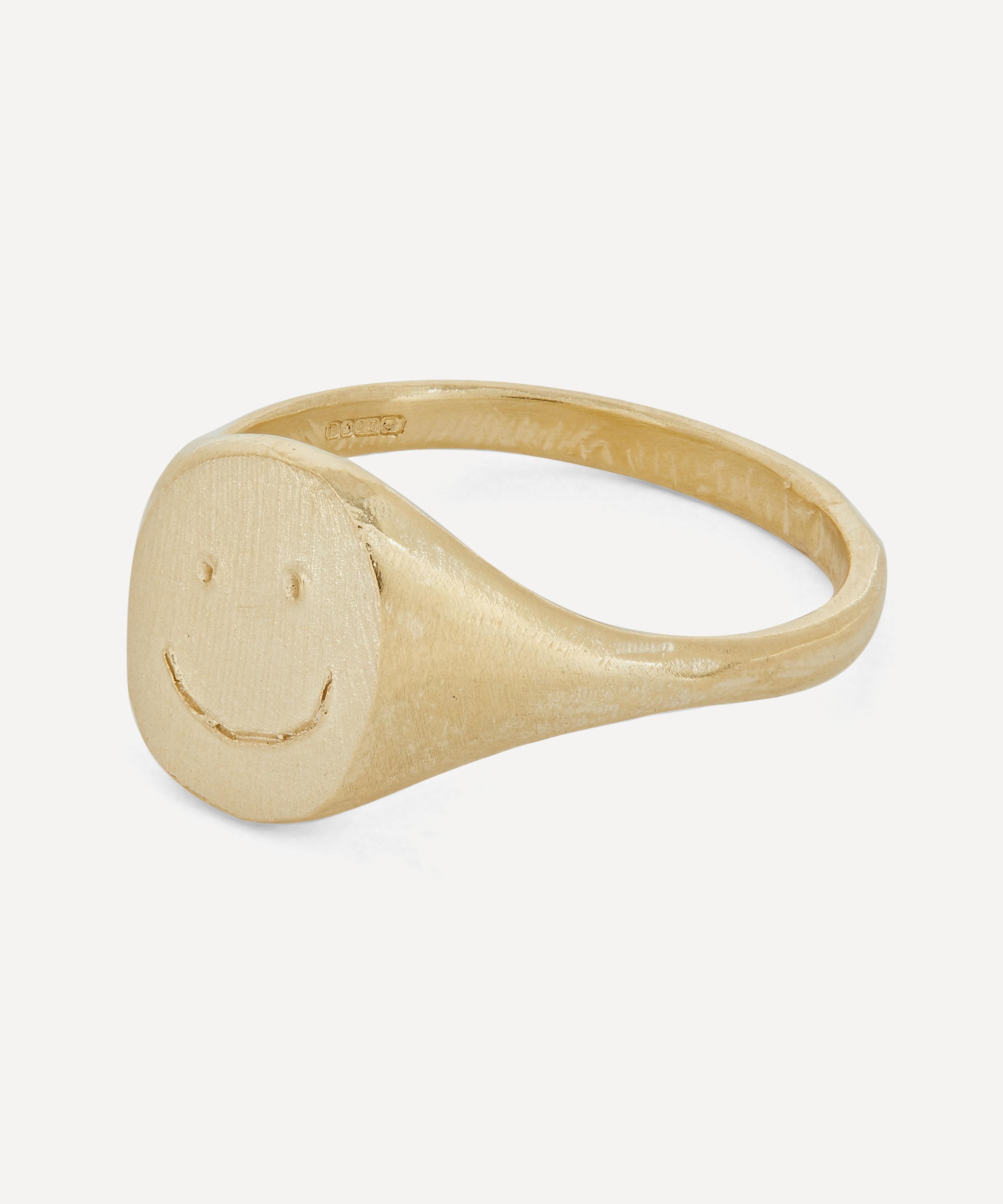 Handmade in Melbourne from 9ct gold, this small signet ring features a happy face graphic, as well as logo and hallmarking to the inner band. The designer’s experimental design process means every piece is unique - often varying in colour, shape and texture for an organic finish that's perfect for injecting a burst of individuality into your everyday jewellery line-up.