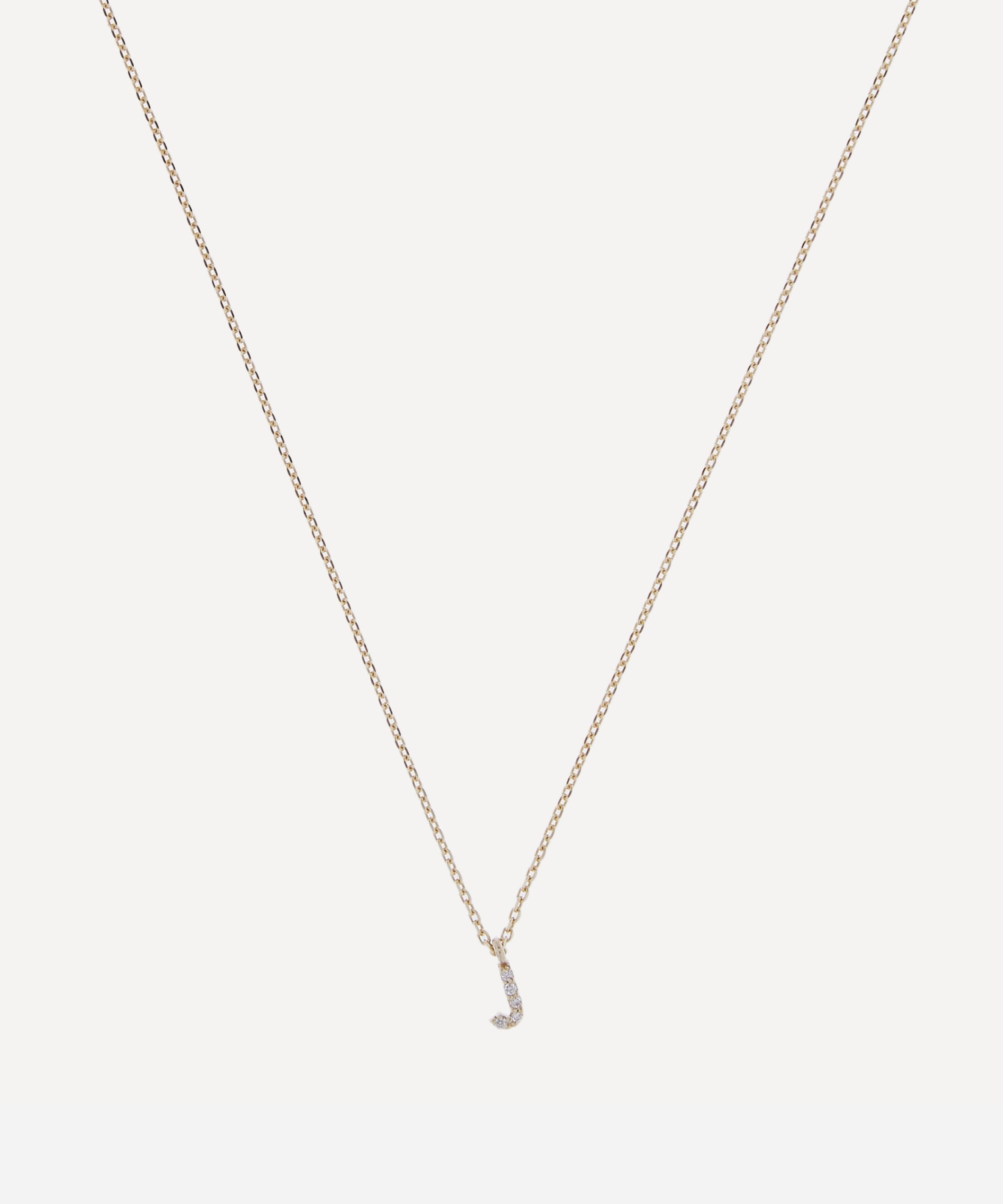 Crafted in Israel from solid 9 carat gold, this necklace features a dainty letter J pendant with a glittering white diamond pavé and a fine trace chain. Perfect for gifting or adding to your own jewellery line-up, it styles beautifully alone or teamed with additional letter pendants for a fully personalised finish. Try layering several initial necklaces together, or arrange a few of the pendants on a single chain to spell out a name of your choice.
