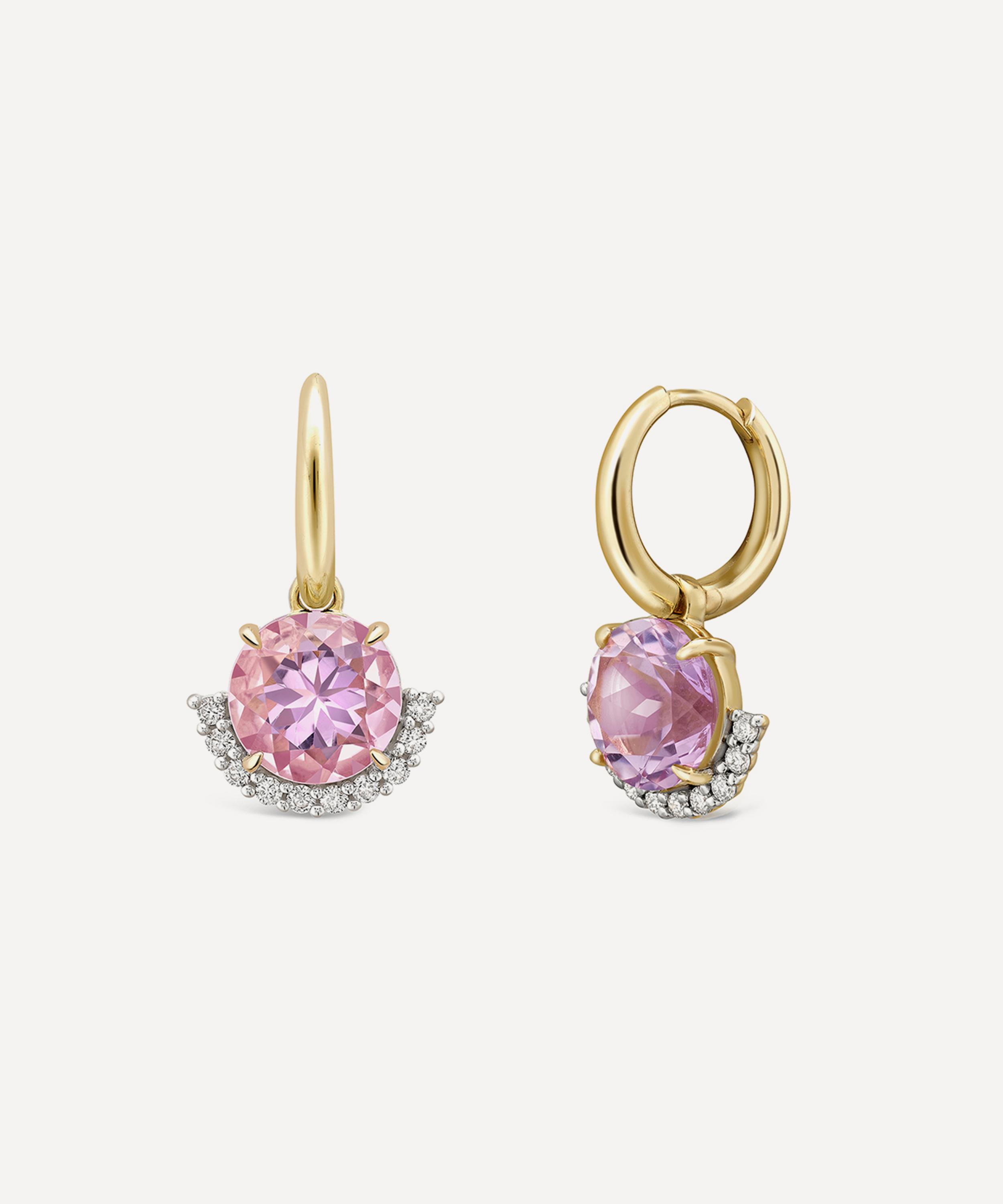 Look effortlessly striking and accelerate the impact of your outfit with the elevating Libby drop earrings from Dinny Hall. Handcrafted from 9ct gold, each earring features a polished huggie hoop, embellished with a claw-set amethyst cradled by pave diamonds. Style them solo or stacked.