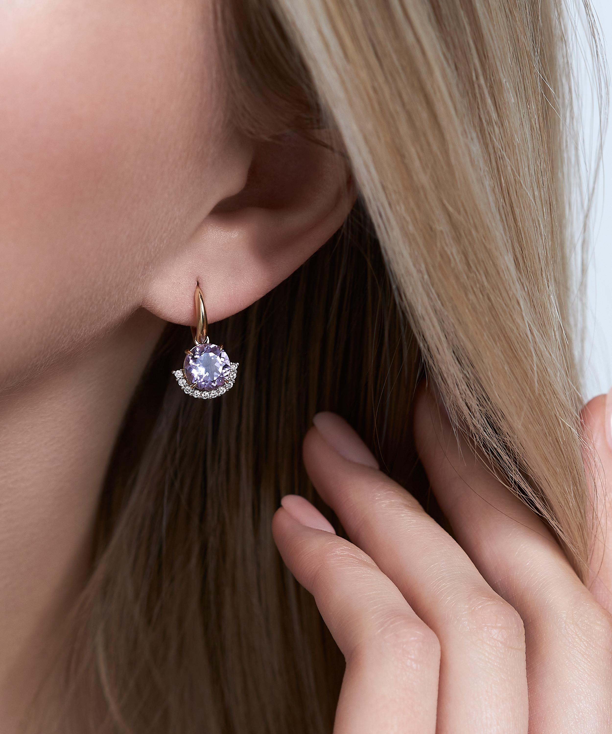 9ct Gold Libby Amethyst and Diamond Drop Earrings