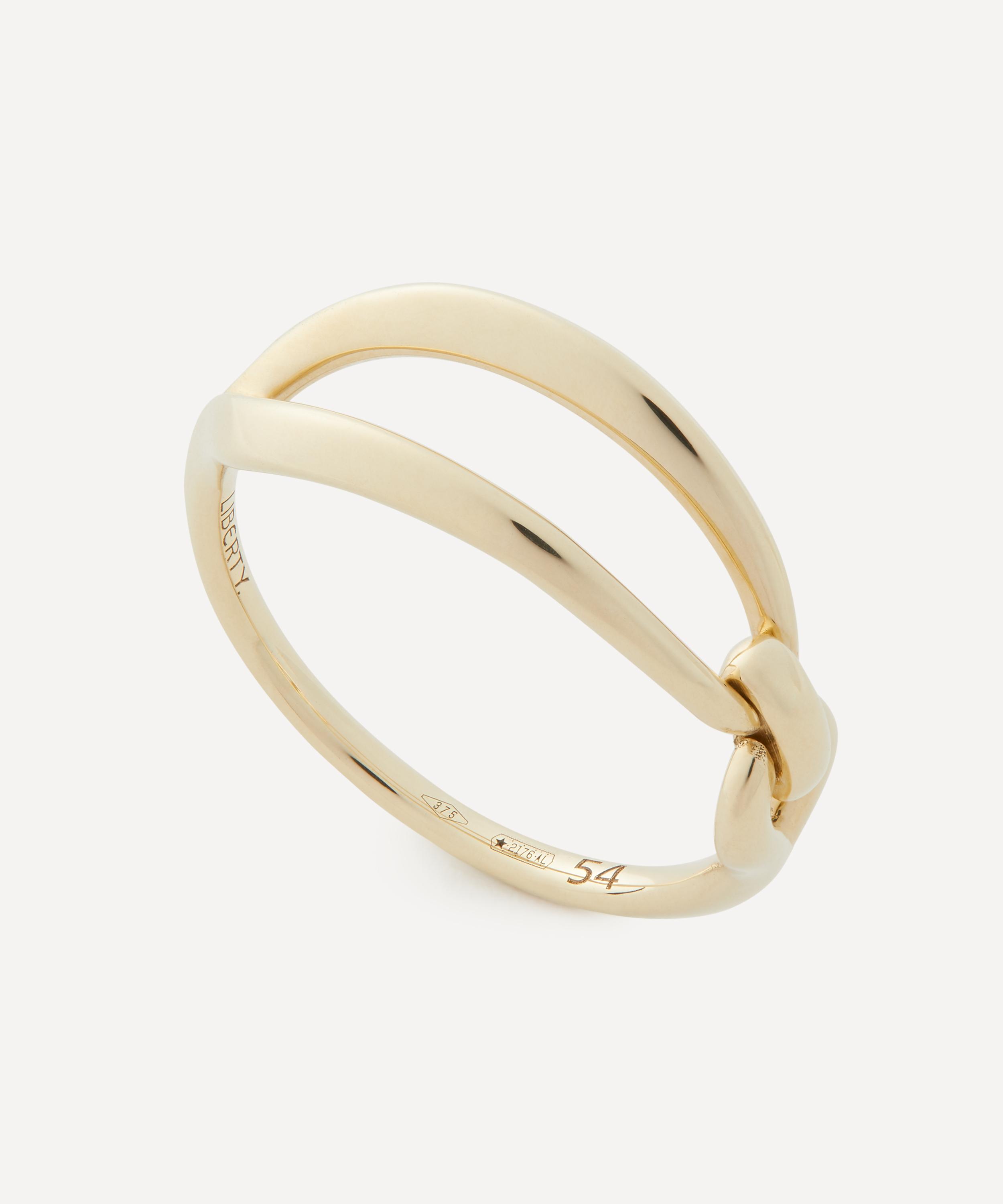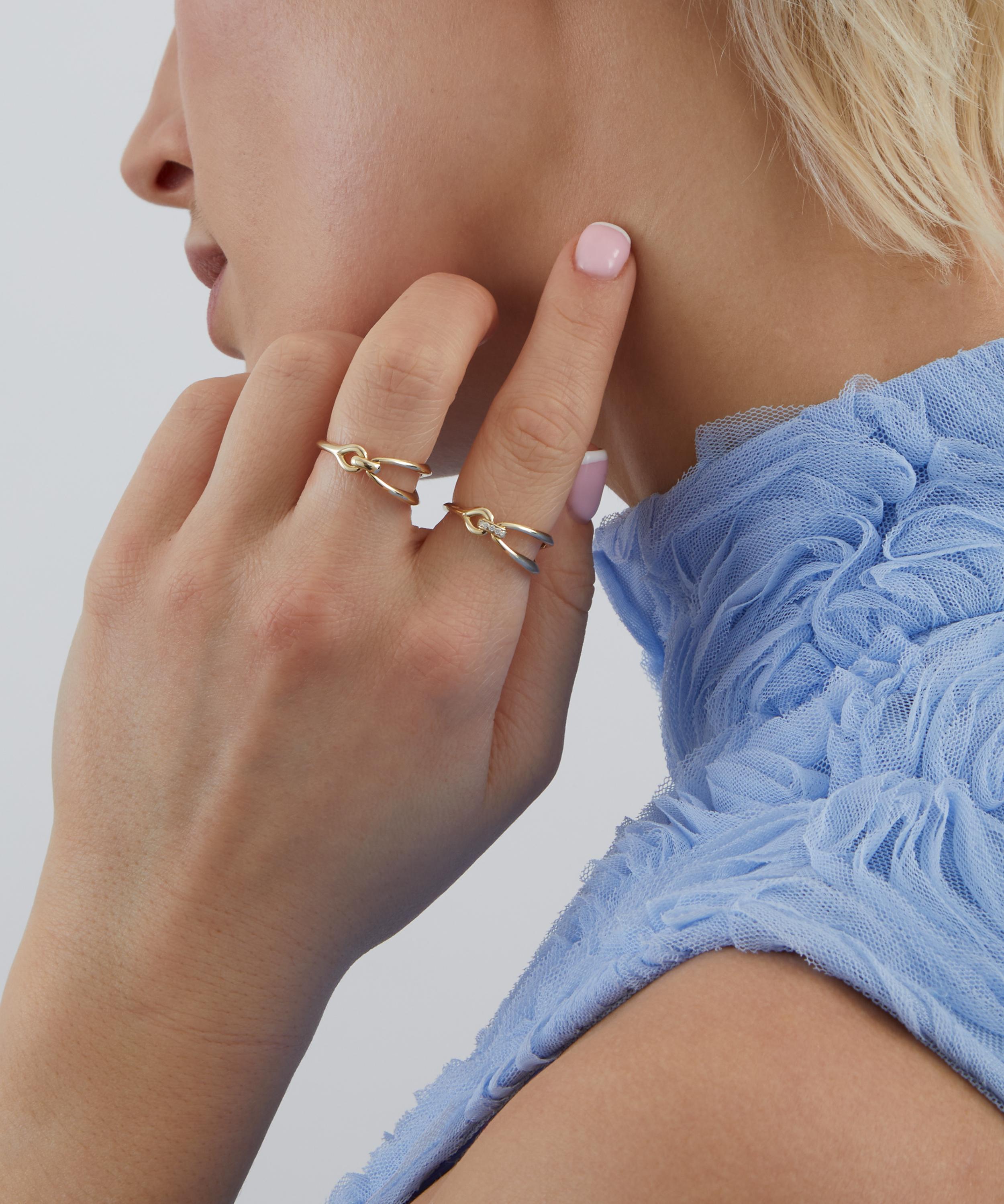 Celebrate love and deep connection in its purest form with this symbolic ring from Liberty’s Link collection – a token of love, unity and the invisible thread that ties hearts together. Drawing inspiration from our Liberty archive, it combines minimalist and modern aesthetics with a sleek band and knot detail handmade in 9ct gold for a clean, timeless appeal. Perfect for declaring your special bond with a partner, friend or a loved one, it can be worn on its own or layered with the second Diamond Link Ring from the collection. Together, these rings form a perfect pair, just like two hearts linked by love.