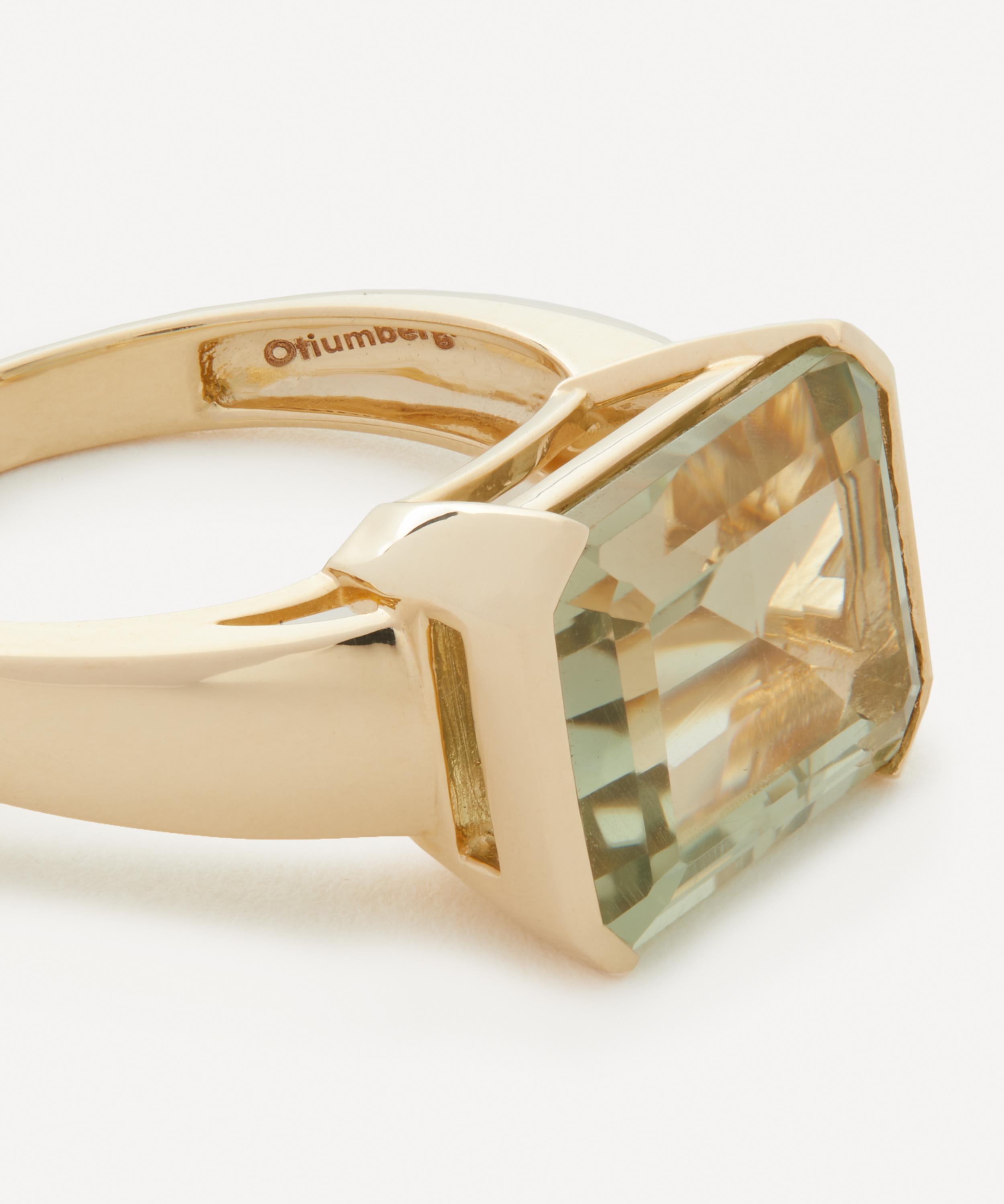 Tie your look together with the elevating silhouette of Otiumberg’s Domino ring. Crafted from 9ct gold, it features a polished band, adorned with a rectangular-shaped mint quartz in a half bezel setting. Offering a showstopping design, it can be styled solo or stacked with additional rings.