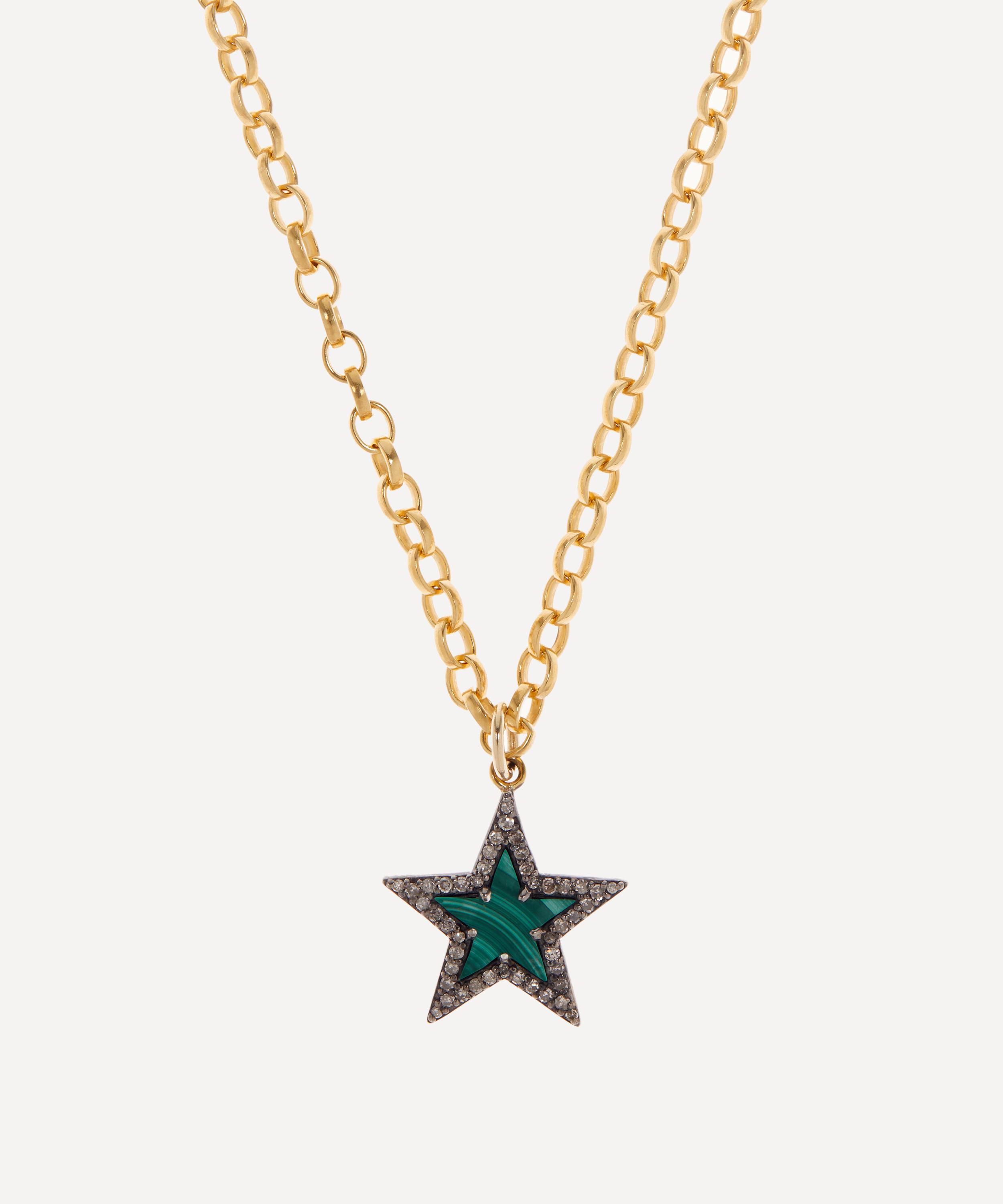 Kirstie Le Marque’s Diamond Malachite Chunky Star pendant necklace perfectly encapsulates the brand’s contemporary take on vintage bling. p>