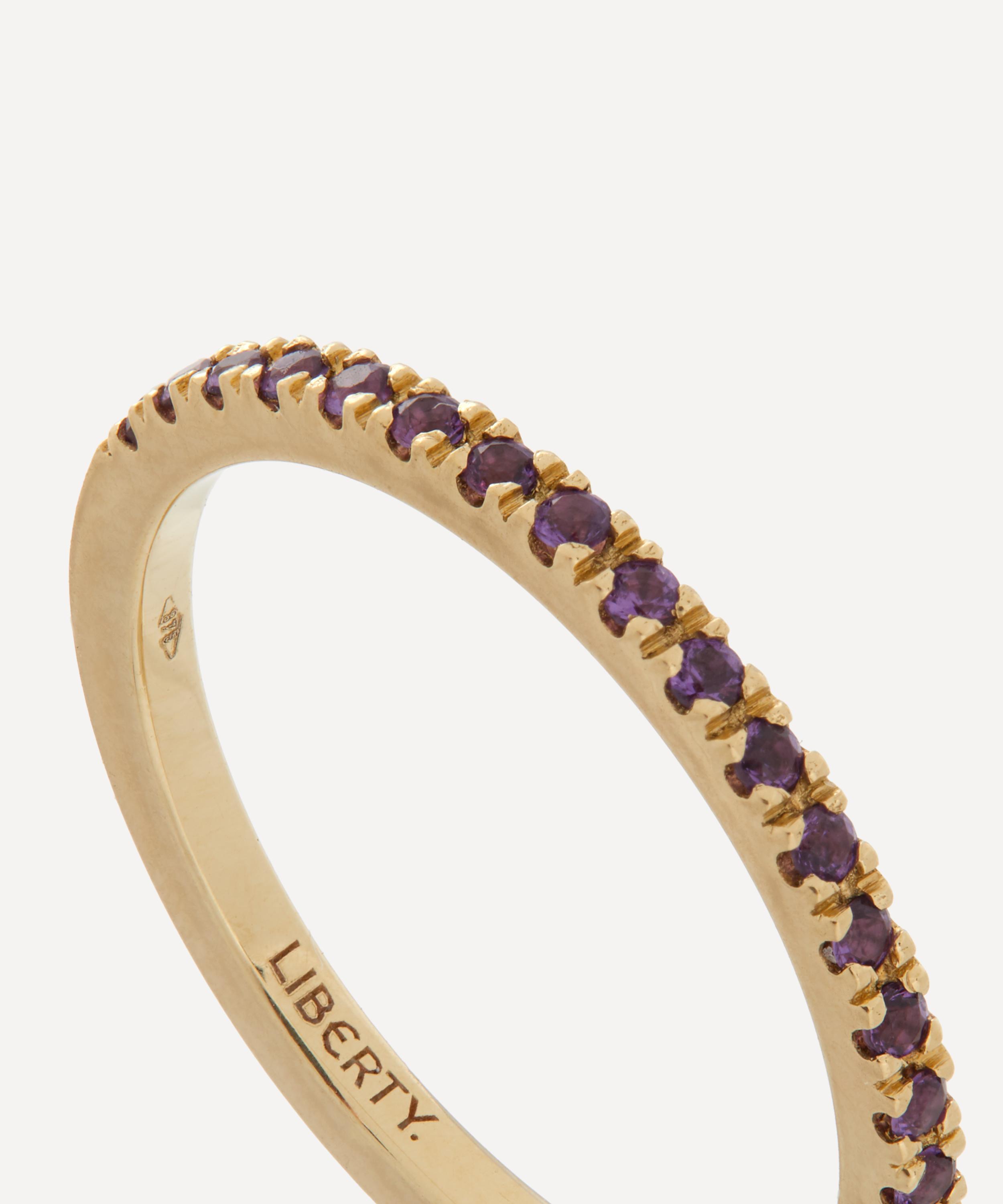Encrusted with lab-grown amethyst gemstones, this versatile ring features a high-polish finish and is engraved on the inside with our branded Liberty logo. Each ring is made in a small batch, crafted by hand in Italy – a modern heirloom that pays tribute to Liberty’s collector spirit.