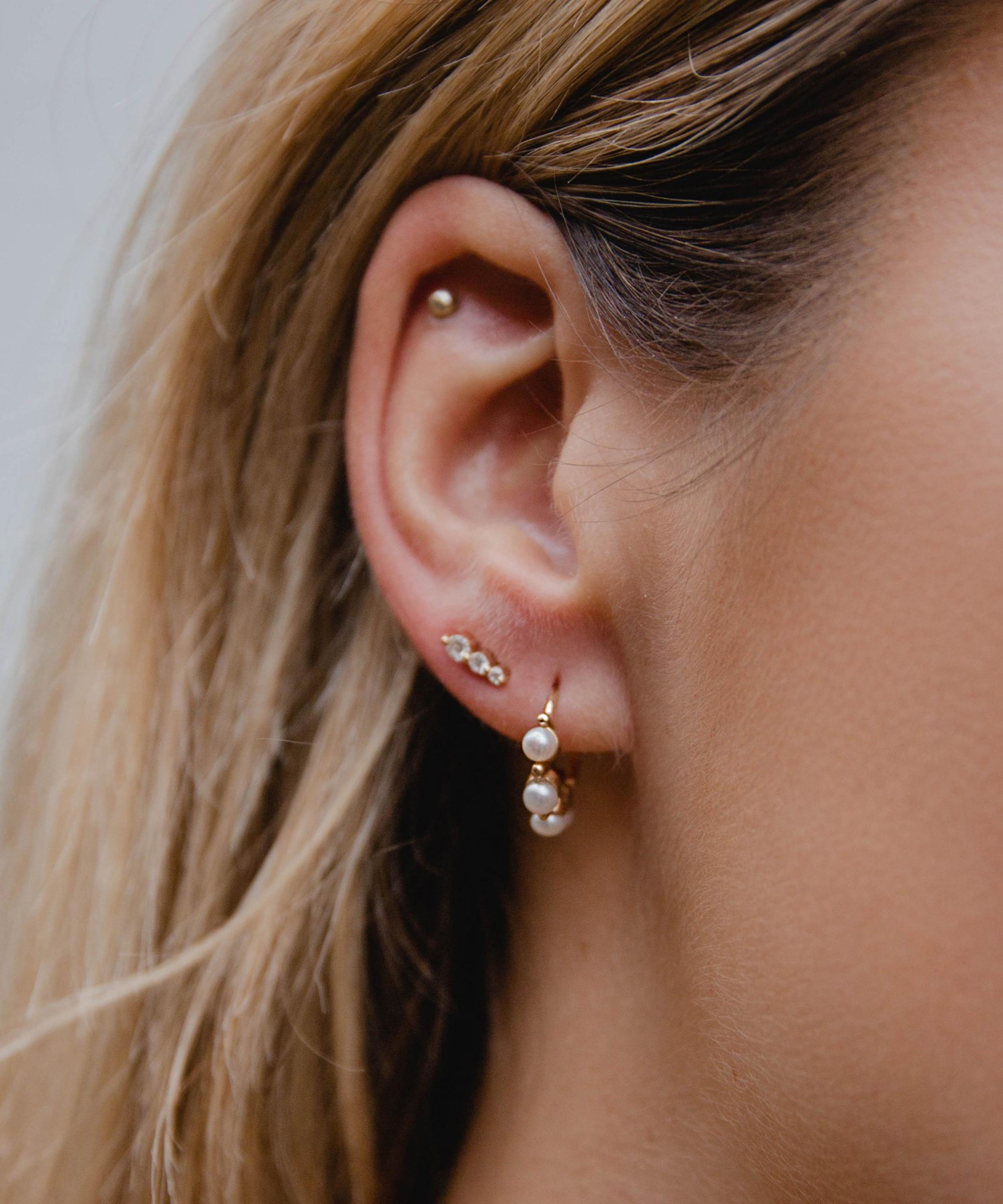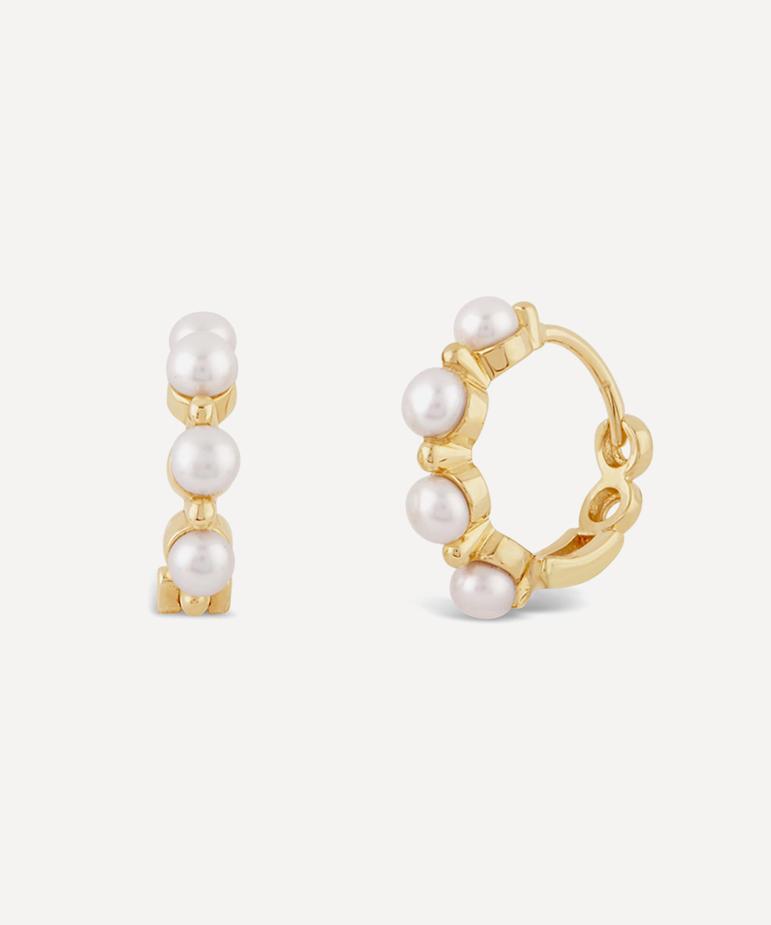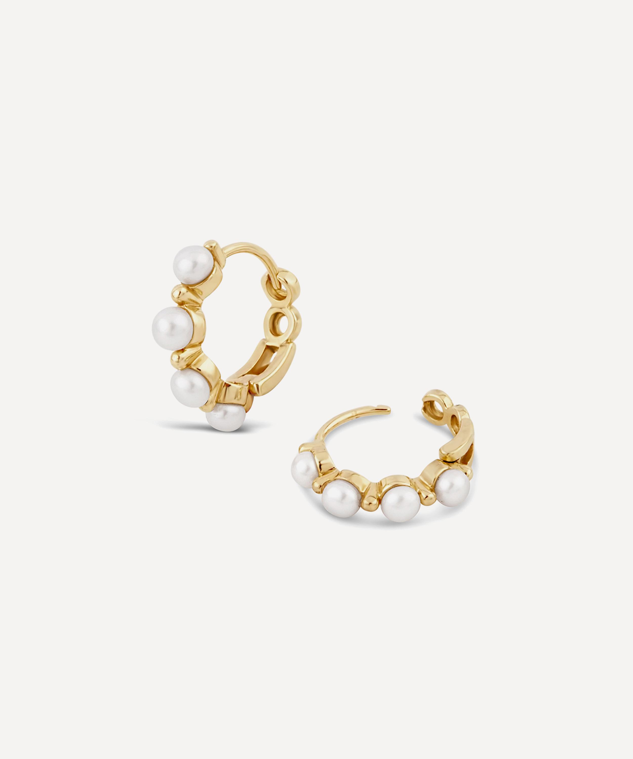 Bring a touch of vintage-inspired charm to your everyday look with the Shuga pearl huggie hoop earrings from Dinny Hall.