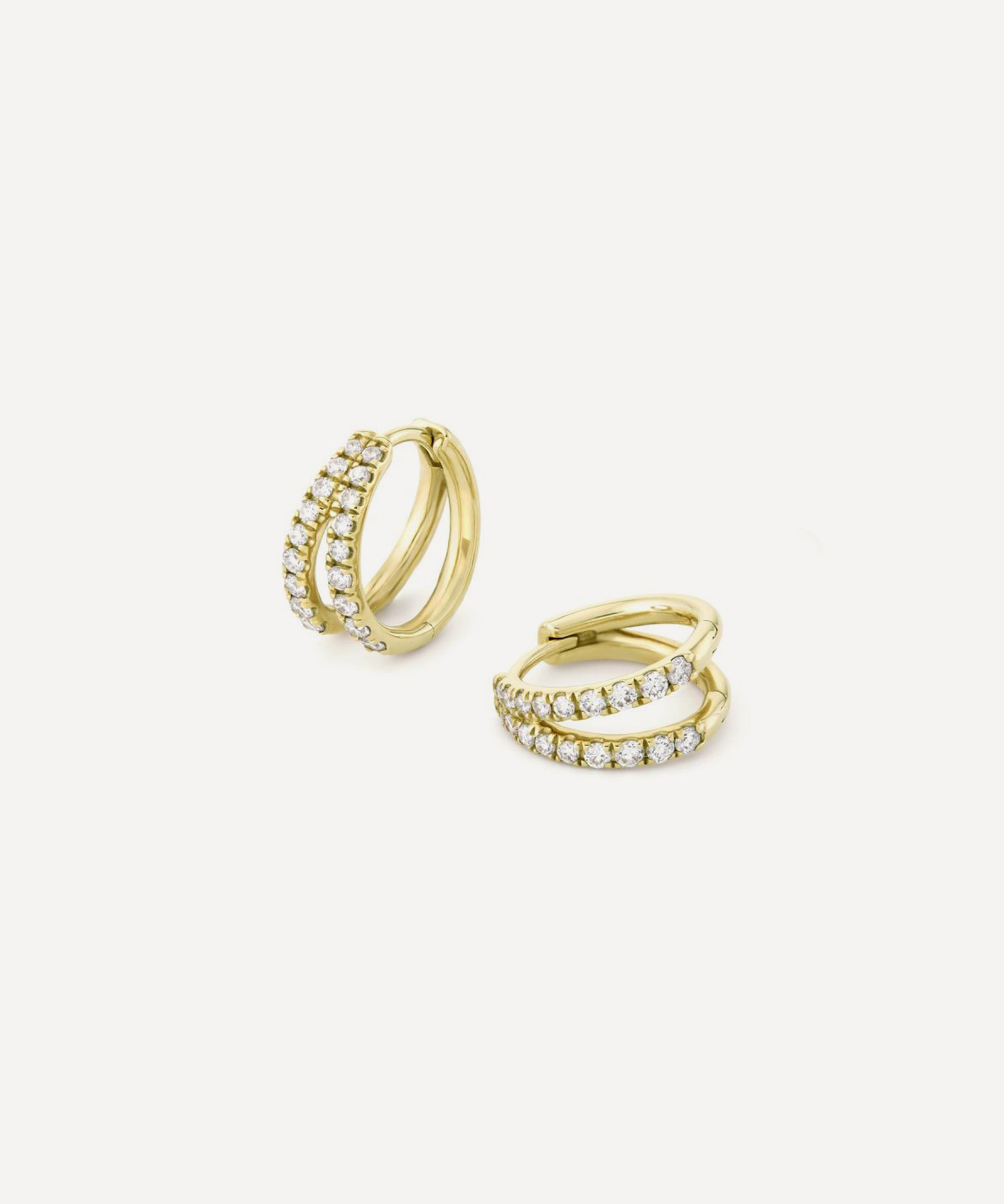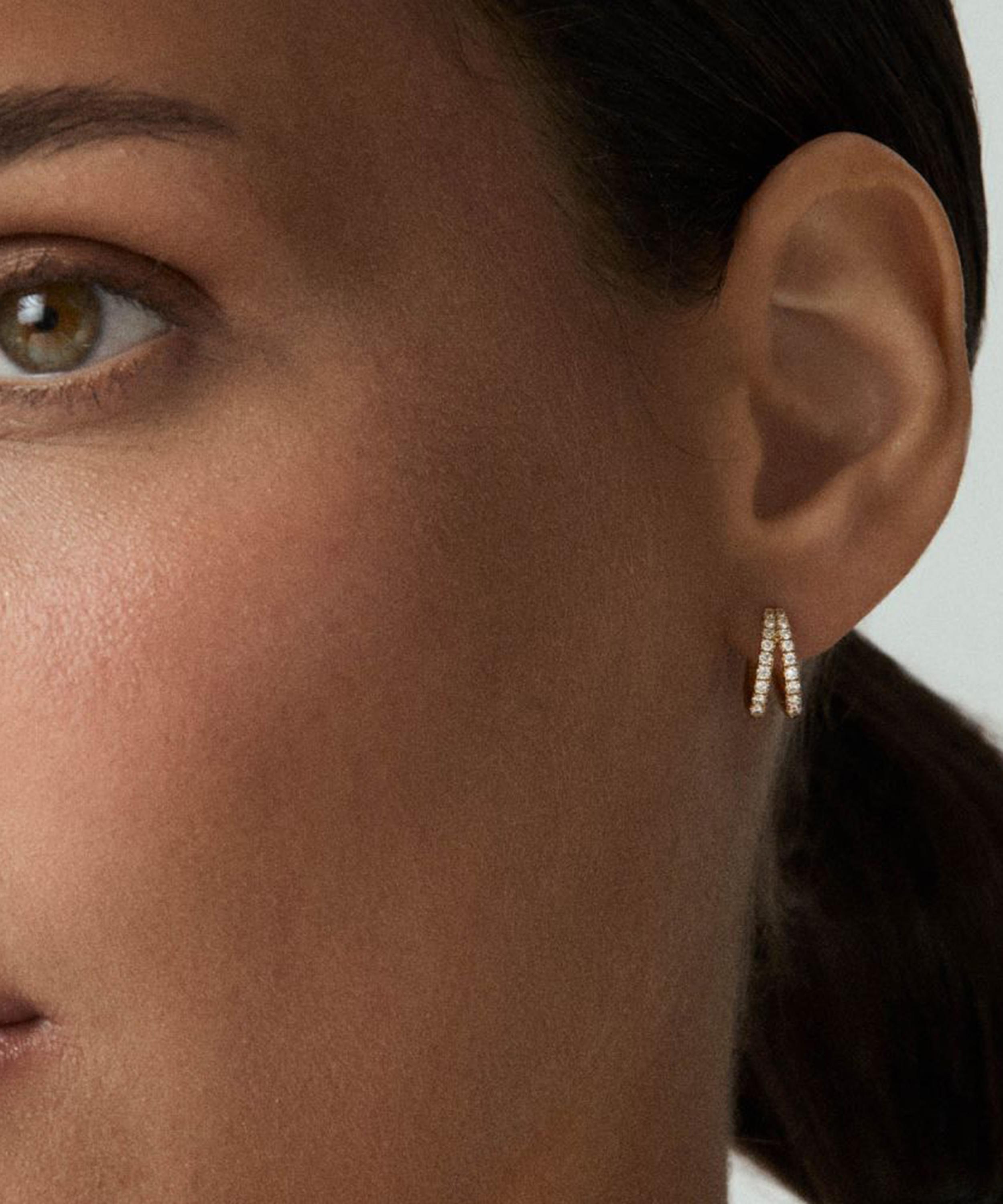 Rendered in solid 9ct gold, each earring features a double hoop silhouette embellished with sparkling diamonds down the front. Boasting a jewellery box essential, make them part of your accessory rotation for effortless daily dressing.