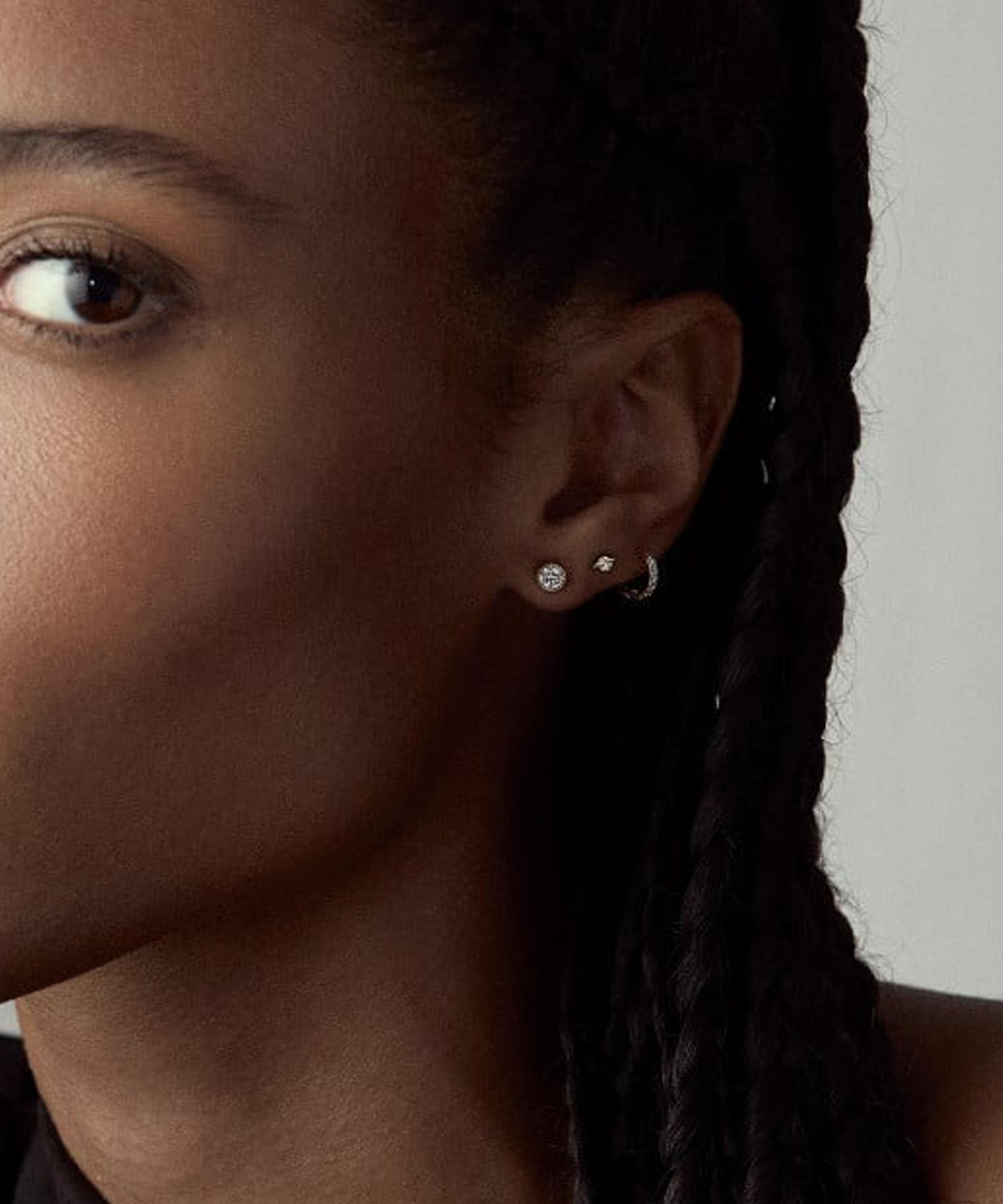 Each earring is cast in solid 9ct gold to a round silhouette, and is illuminated by a single lab-grown diamond. This timeless pair are a jewellery box mainstay that look great in the lobes alone, or in any other piercing as part of a sparkling ear curation.
