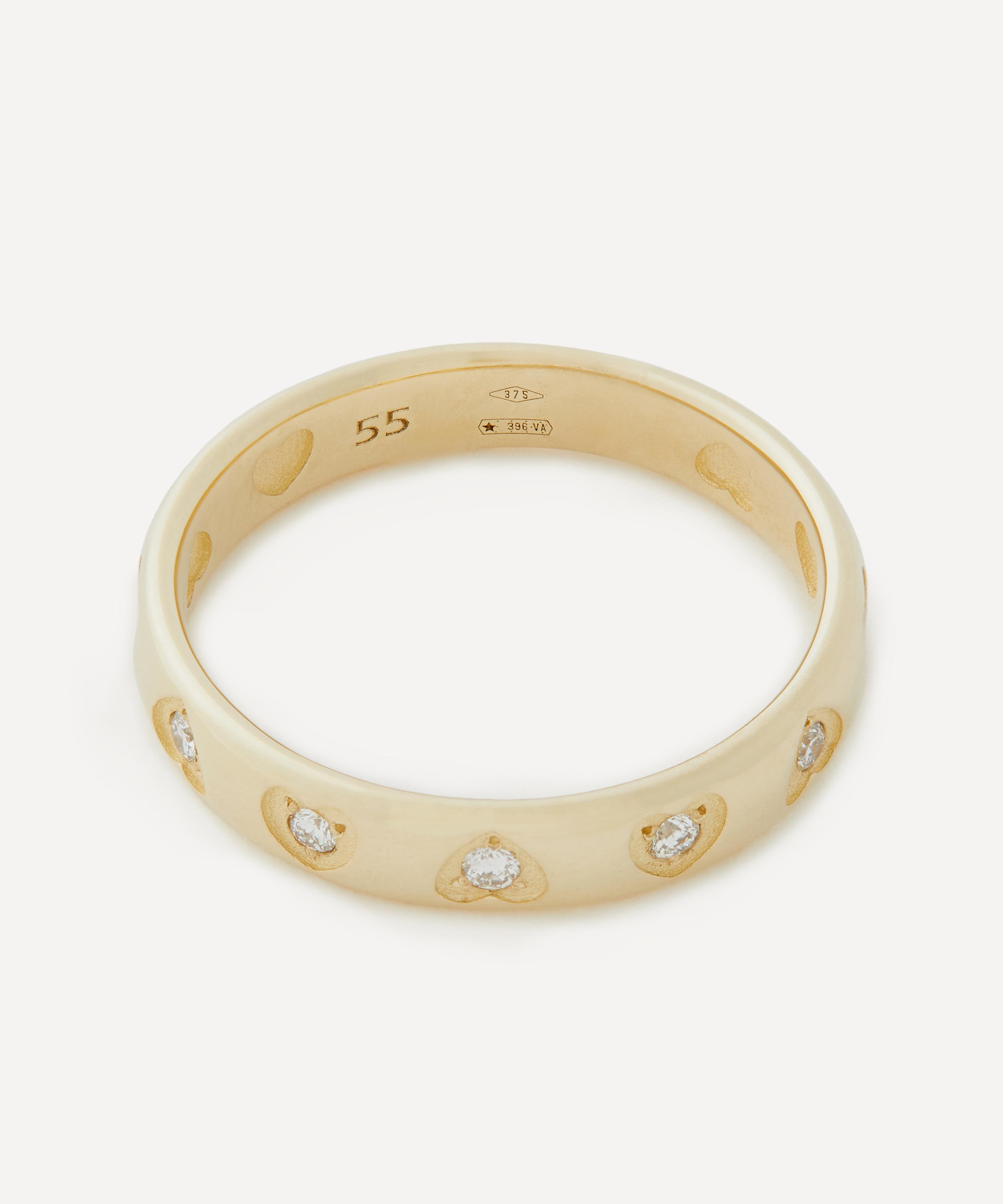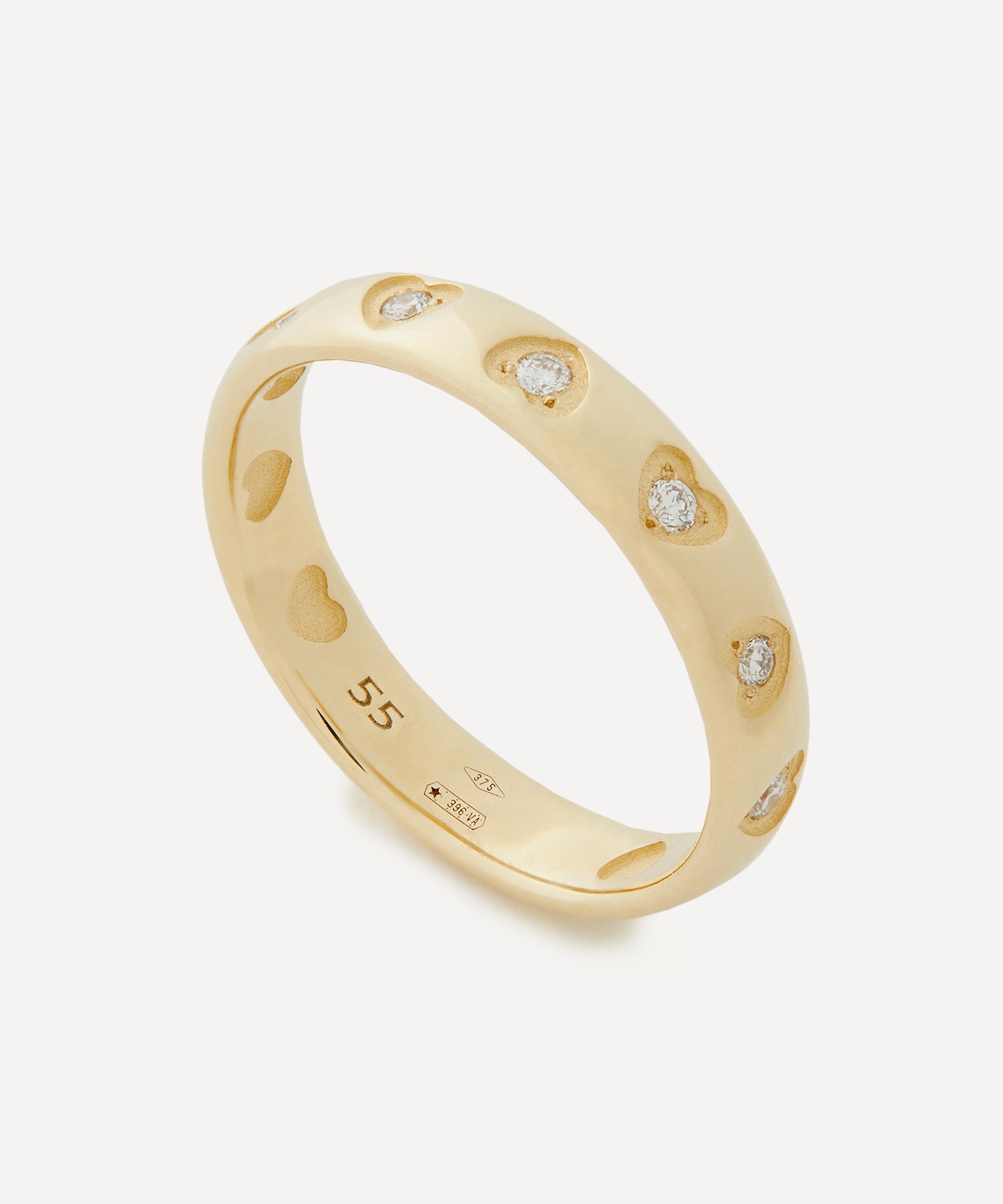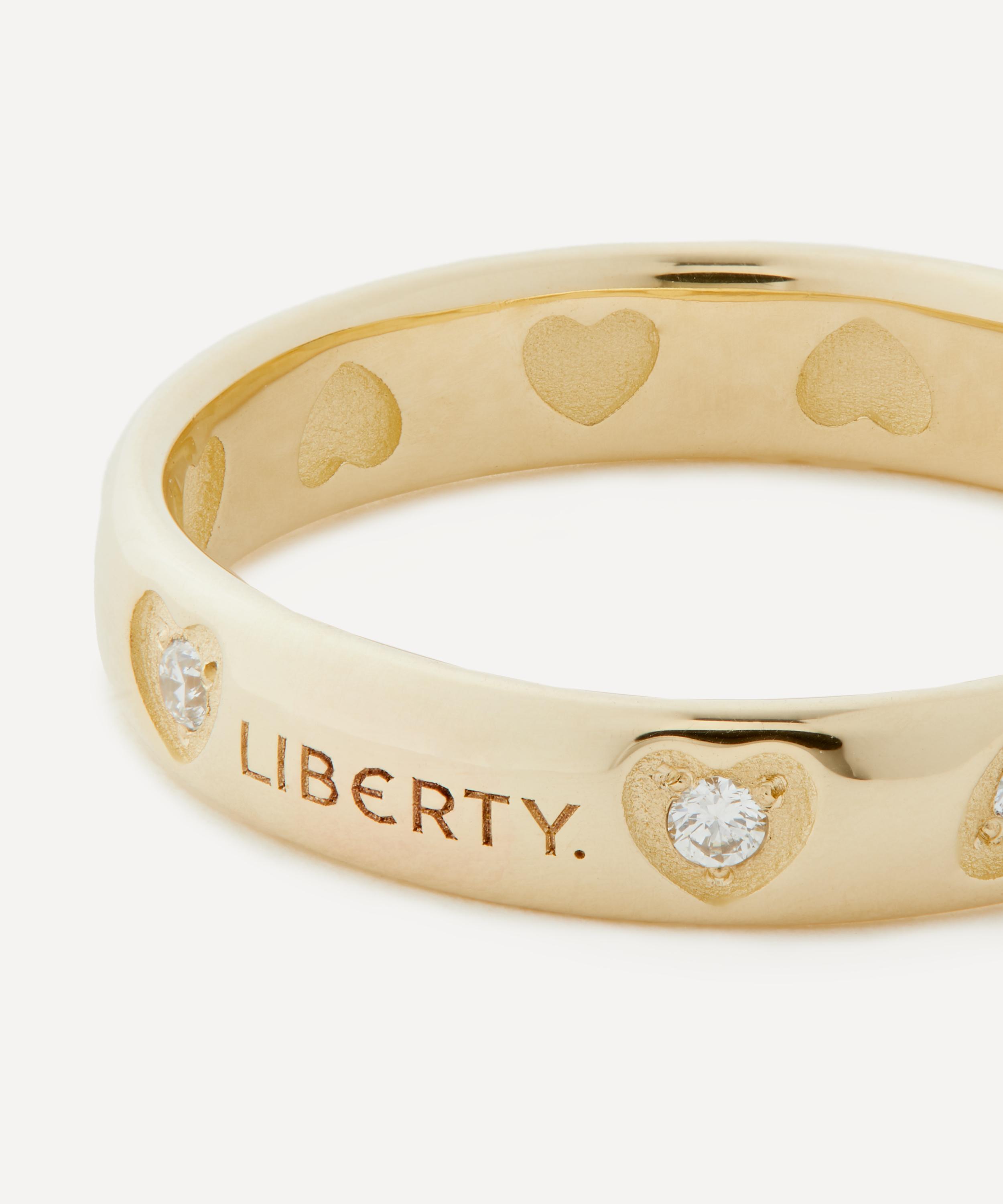 Perfect for gifting, spread the love and treat someone you care about, or yourself, to the Spring Love ring from Liberty. Offering endless styling options, it’s crafted from solid 9ct gold, featuring a polished band adorned with engraved hearts and sparkling diamonds – for a teasingly charming silhouette. Style it with your favourite jewellery pieces, or pair it with one of our Spring Love pendants.