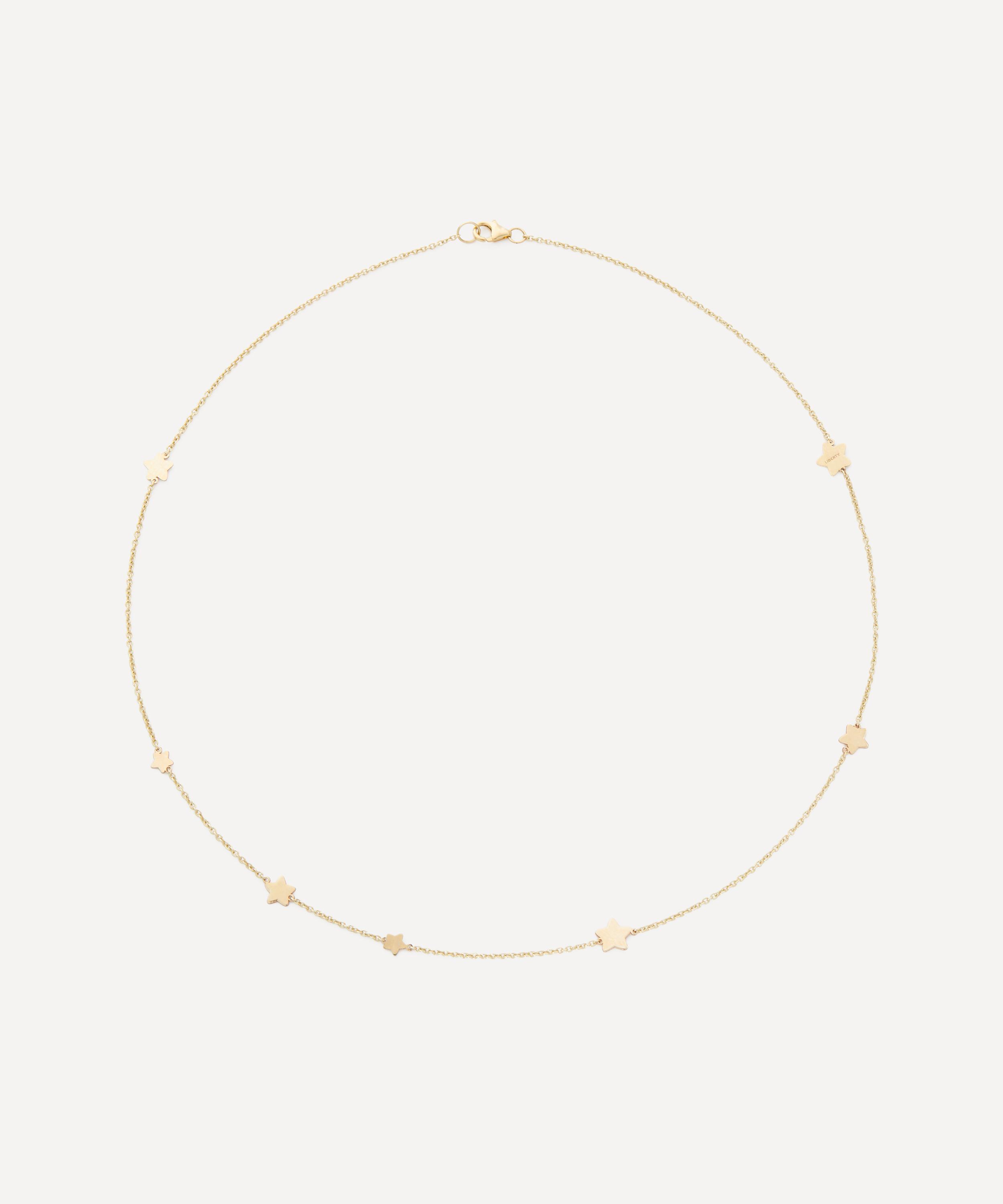 Spread the love and treat someone you care about, or yourself, to this chain necklace from Liberty. Crafted from 9ct solid gold, it’s formed of a delicate trace chain, adorned with small, sculpted star charms of varying size. Complete with a classic spring clasp, it can be paired with one of our Ianthe Star hoops, worn on its own, or layered with additional gold chain.