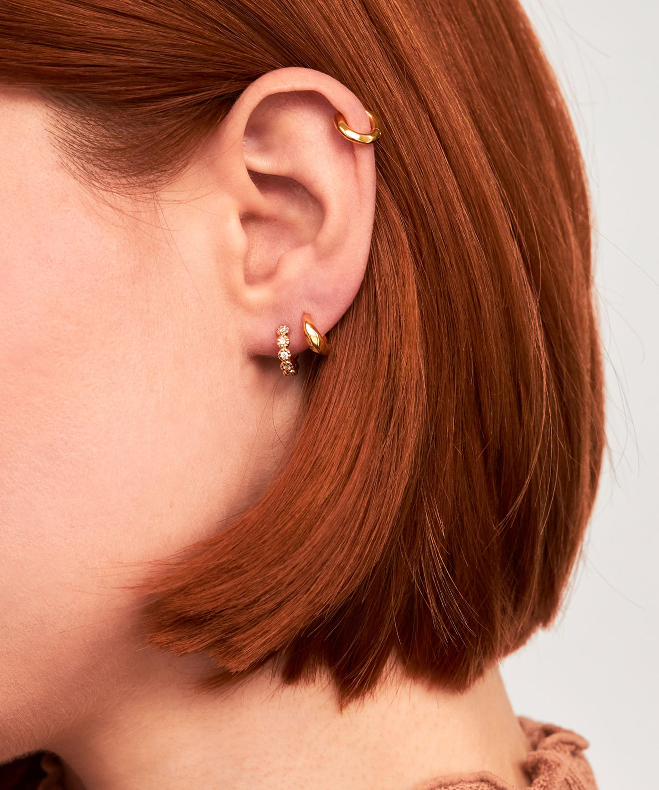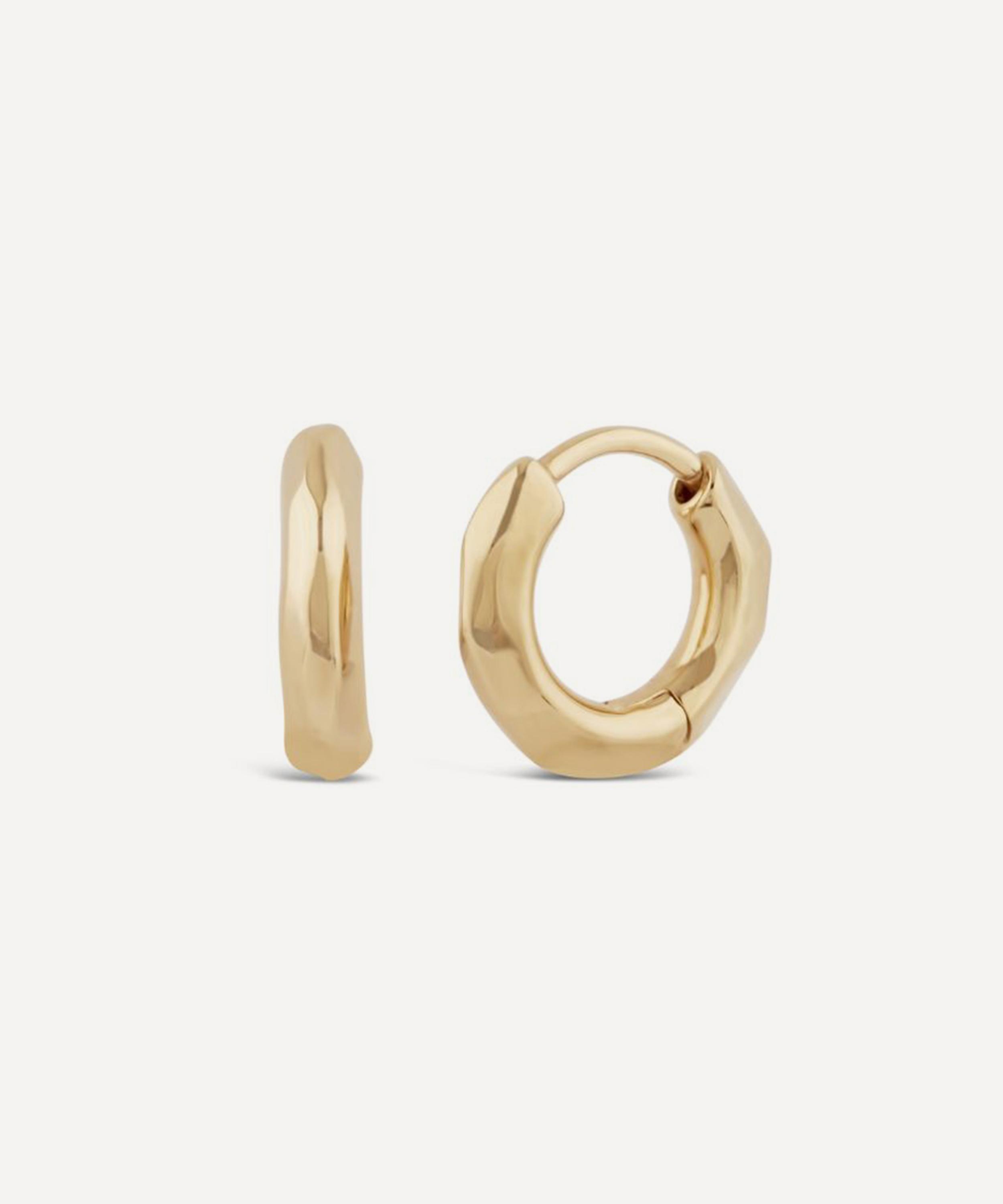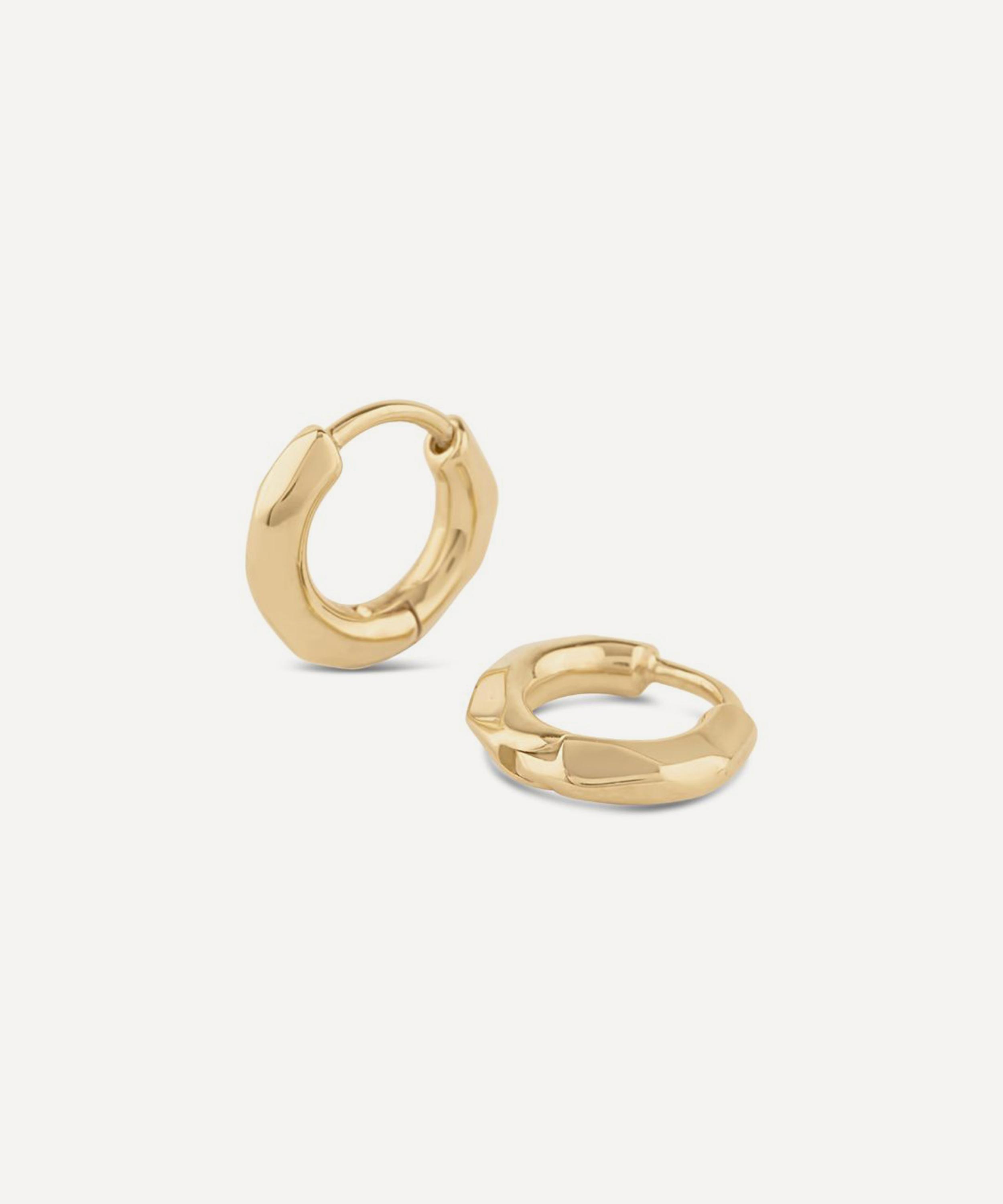 Inspired by Thalassa, goddess of the sea, these huggie hoop earrings from Dinny Hall celebrate the mystical depths of the sea – a collection of pieces expertly crafted to appear worn away by the passing tides. Crafted from 9ct gold, each earring is hand-carved to achieve a faceted and light refracting effect. Wear them solo, or as part of a stack.