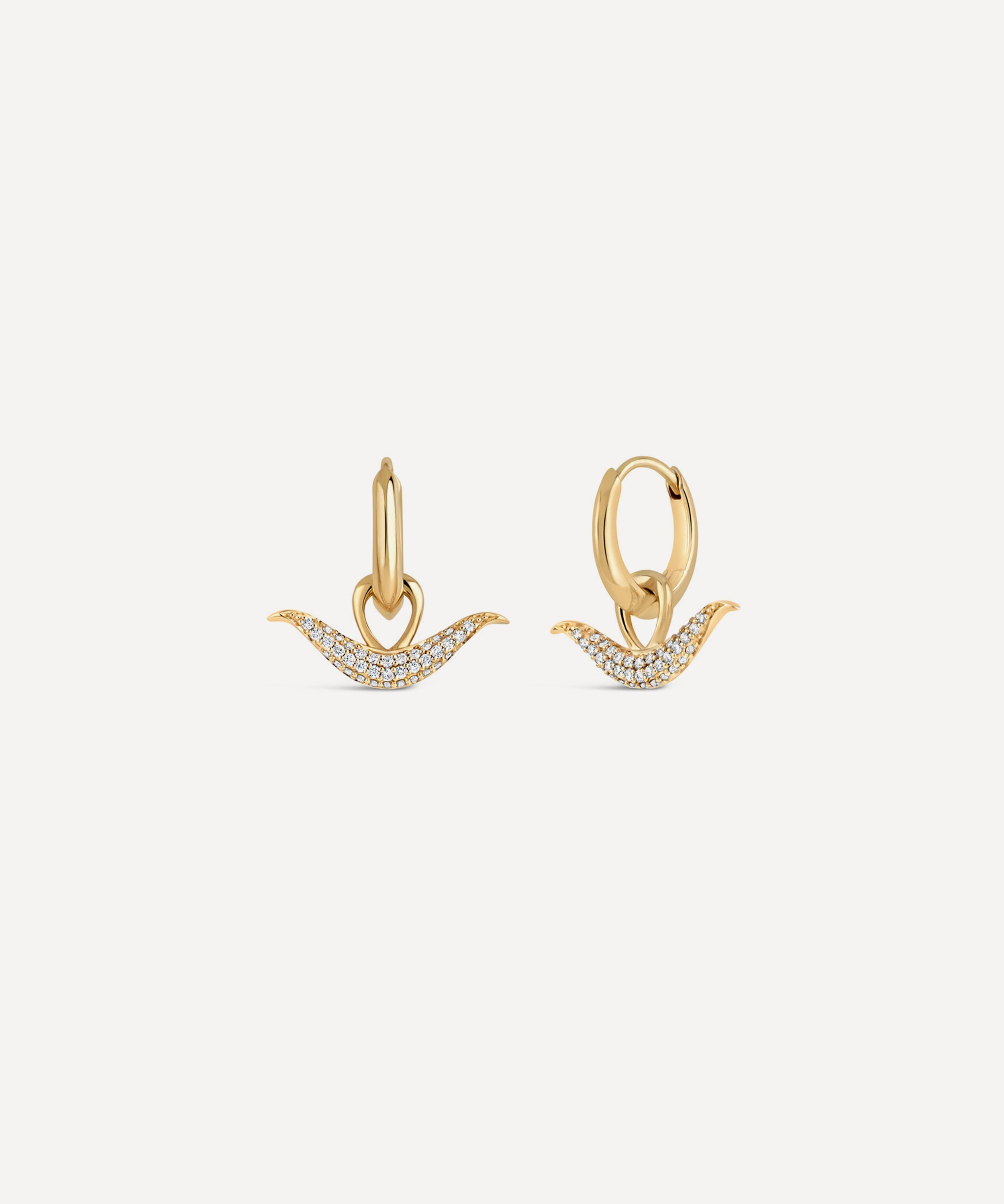 Empower your self-expression and unique style with Dinny Hall’s emblematic Toro diamond drop earrings. Crafted from solid 9ct gold, these exceptional earrings feature a sleek hoop design adorned with a diamond encrusted horn charm – inspired by the Italian horn amulet. A symbol of strength and resilience, their bold yet versatile design offer seamless day-to-night styling. Wear them on their own, pair with matching pieces from the collection, or stack with another pair of gold earrings, hoops and studs to add depth and dimension to your look.