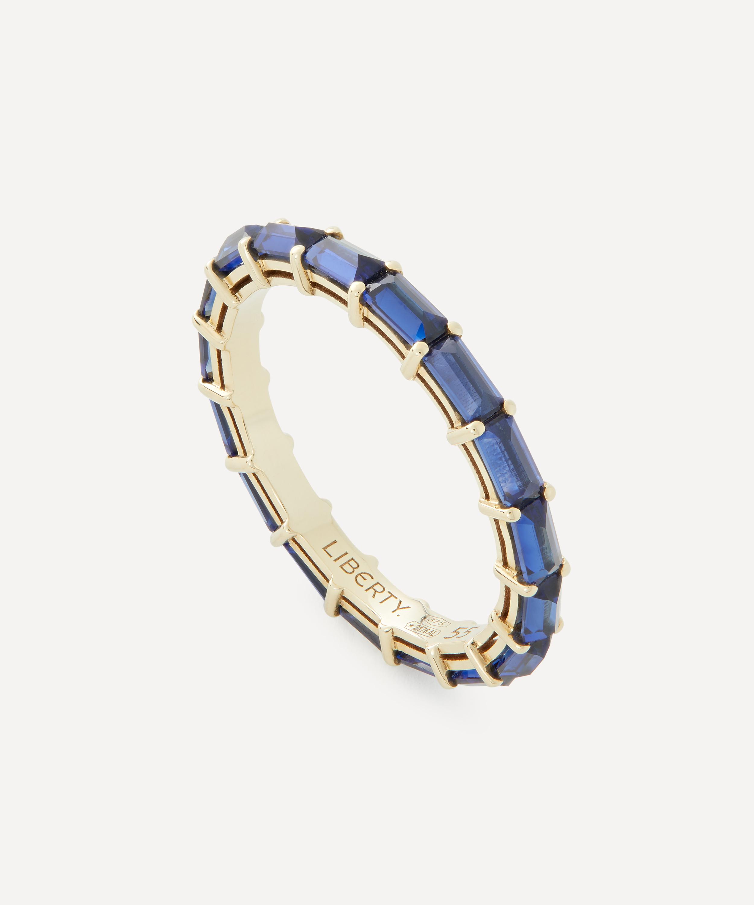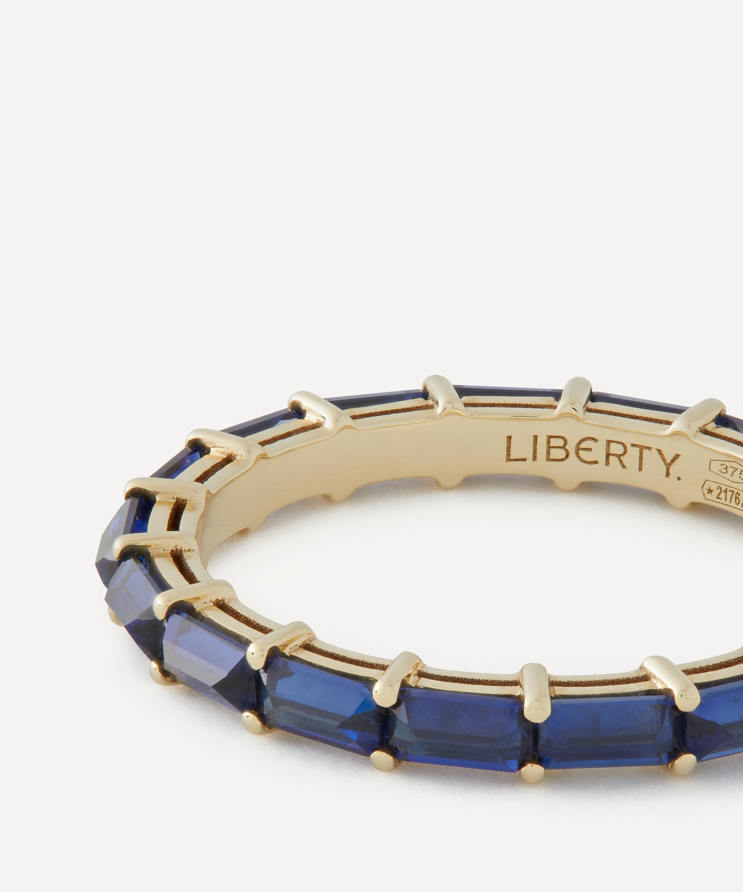 Handcrafted in Italy from solid 9ct gold, this versatile and stackable ring draws design cues from our renowned Liberty archive, blending timeless elegance with a modern refinement. Exquisitely adorned with tranquil blue sapphires, it captures the fluid energy and nuanced colour palettes of water, evoking rippling streams and cascading waterfalls. Wear it as a solo piece or mix and match with any of the other Waterfall rings and matching earrings for a dynamic jewellery curation.