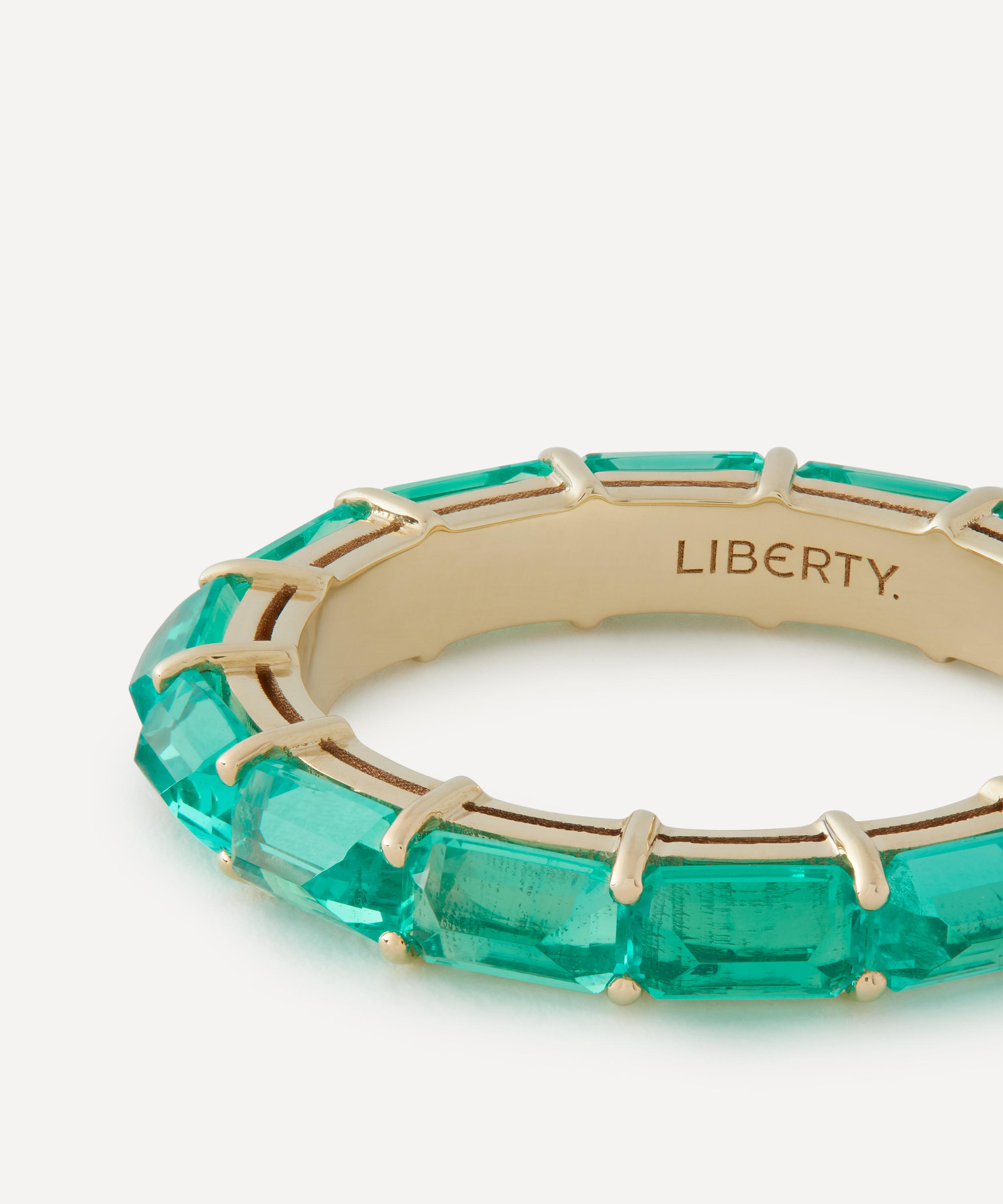 Handcrafted in Italy from solid 9ct gold, this versatile and stackable ring draws design cues from our renowned Liberty archive, blending timeless elegance with a modern refinement. Exquisitely adorned with deep green emeralds, it captures the fluid energy and nuanced colour palettes of water, evoking rippling streams and cascading waterfalls. Wear it as a solo piece or mix and match with any of the other Waterfall rings and matching earrings for a dynamic jewellery curation.