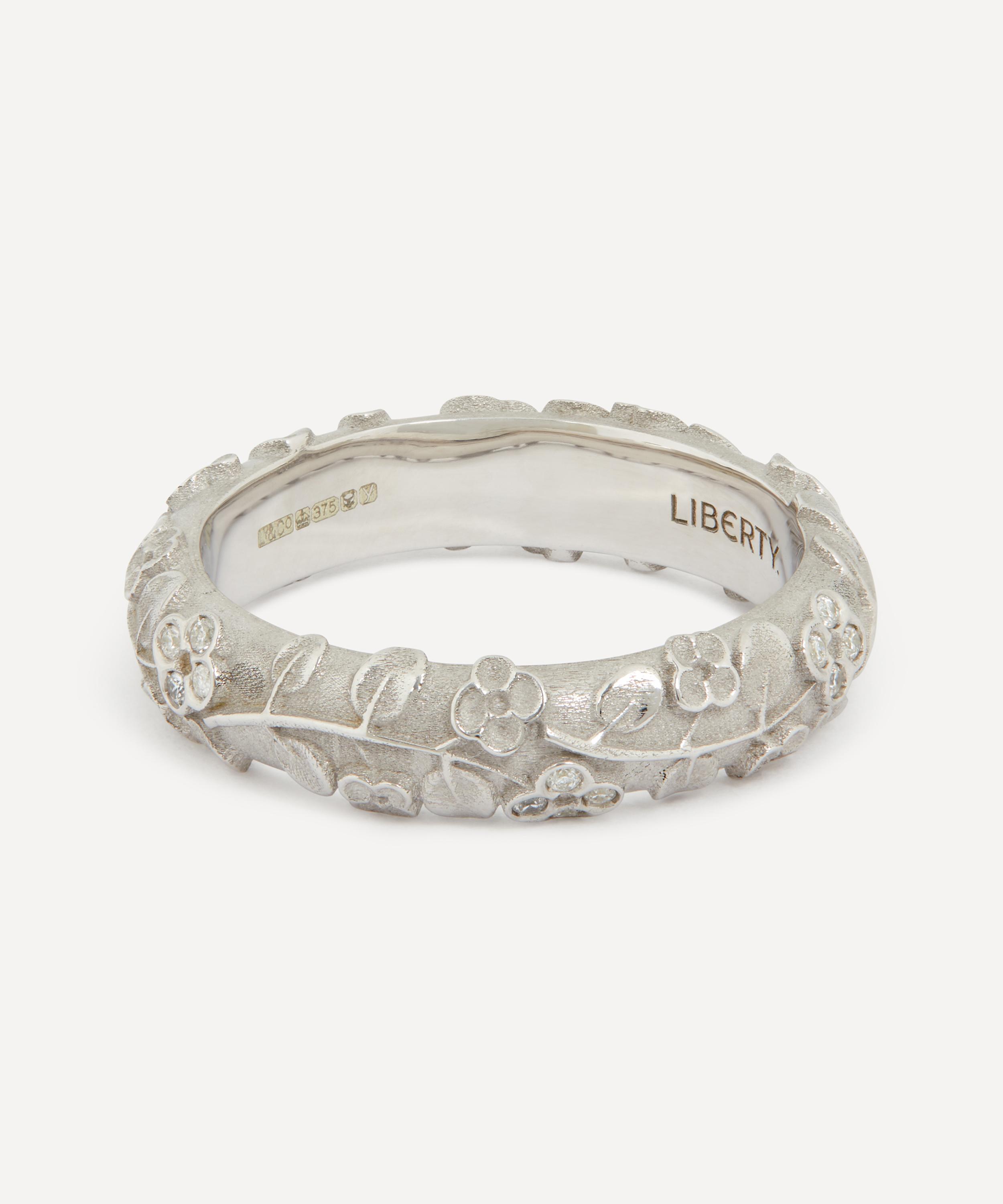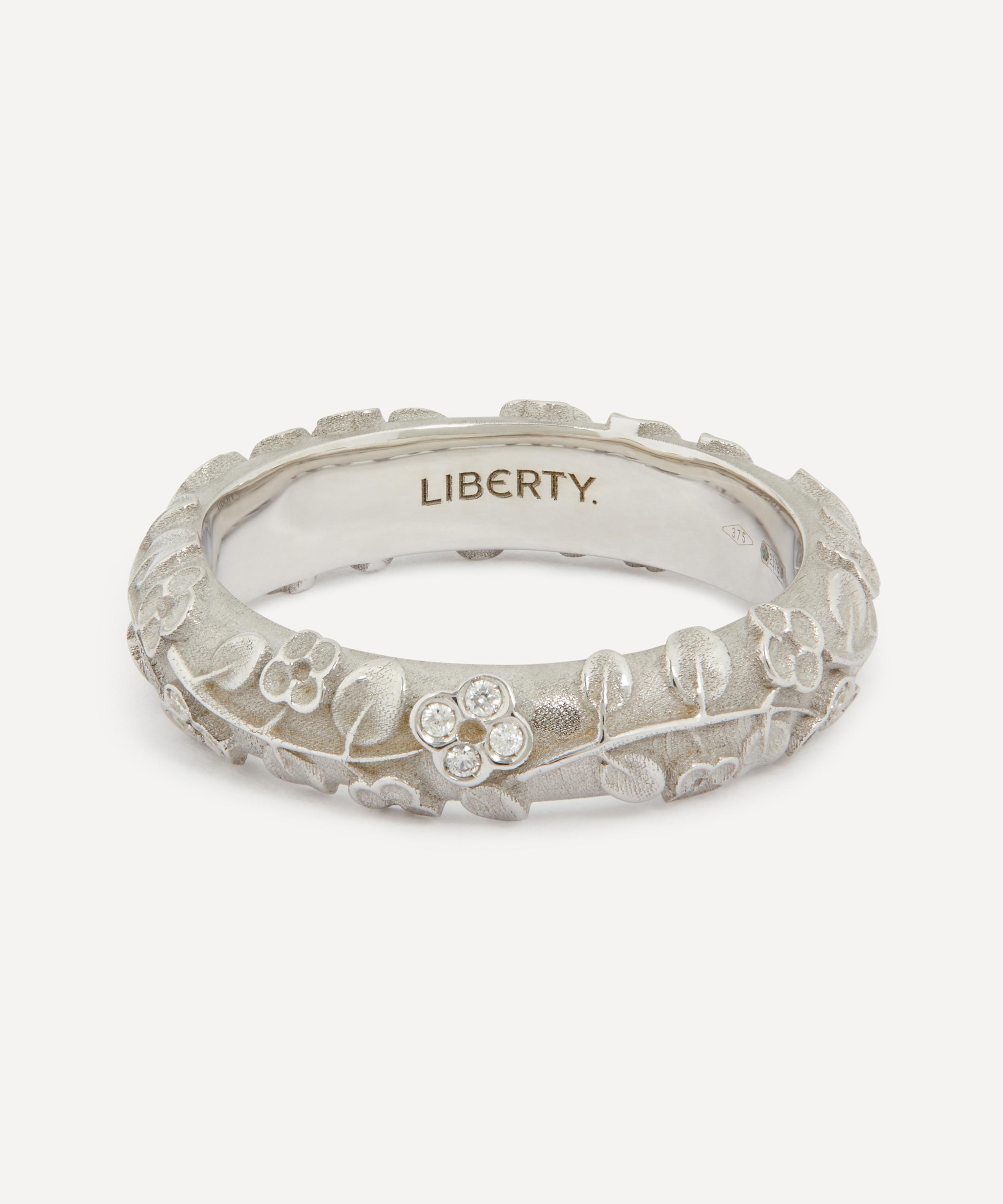 Inspired by Arthur Liberty’s love for Japan, this rendition of the Blossom ring by Liberty is crafted in Italy from 9ct white gold.