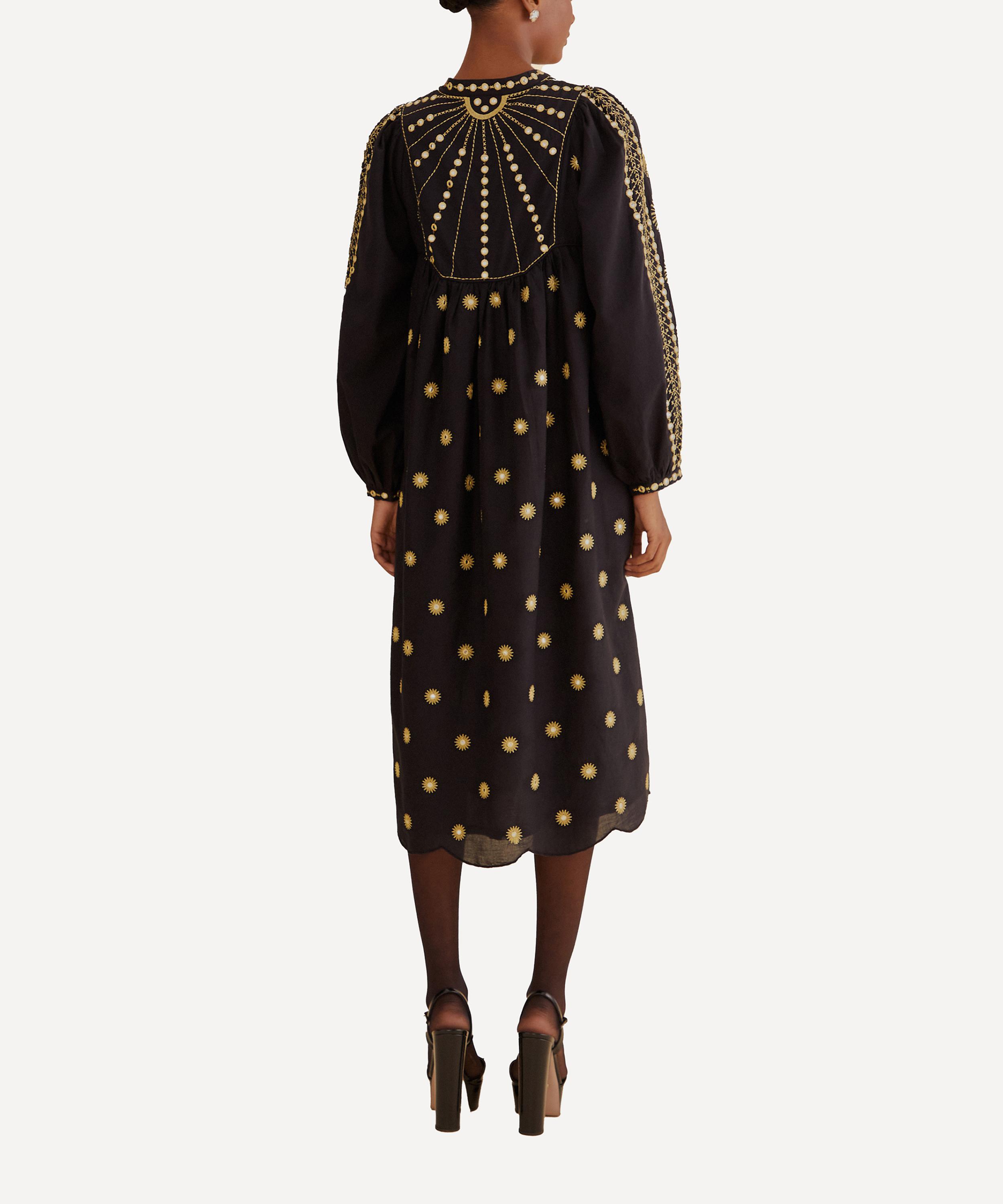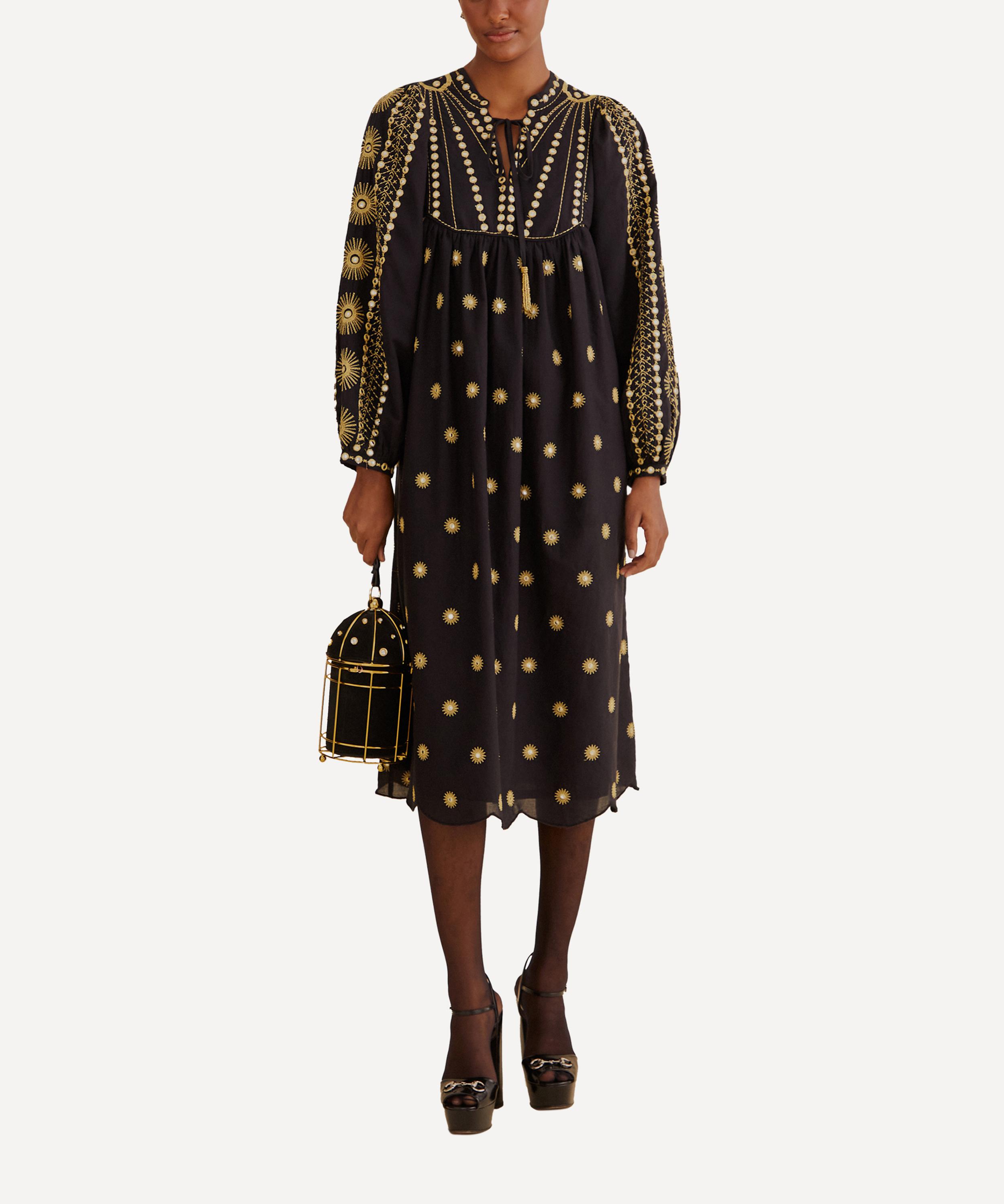 The Sun-Embroidered Midi-Dress from Rio de Janeiro-based label FARM Rio brings some Brazilian vivacity to your new-season edit.