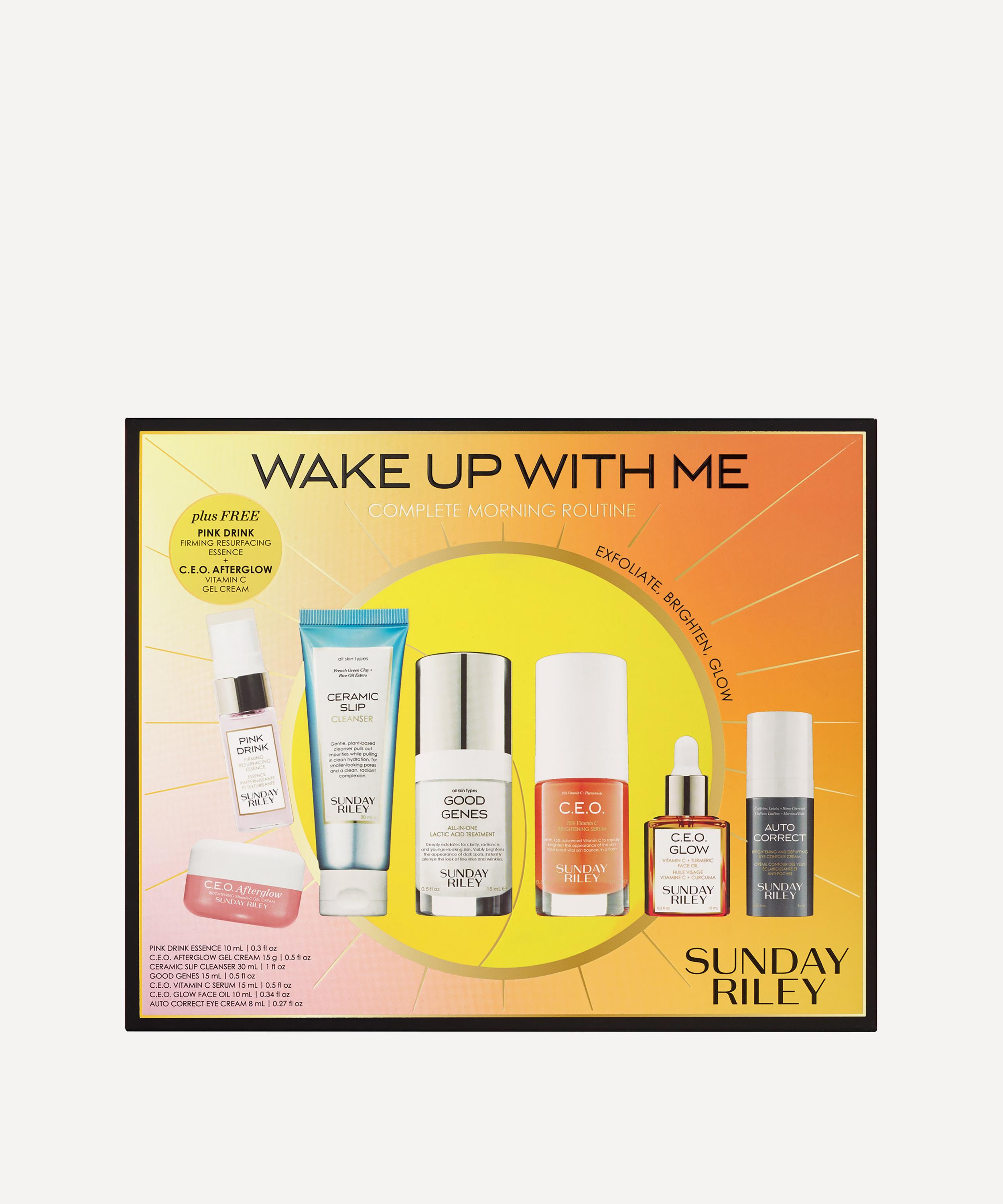 Rise and shine to Sunday Riley's Wake Up With Me Complete Morning Routine Kit, showcasing a specially curated collection of must-have formulas that are poised to elevate your daily skin care regime.