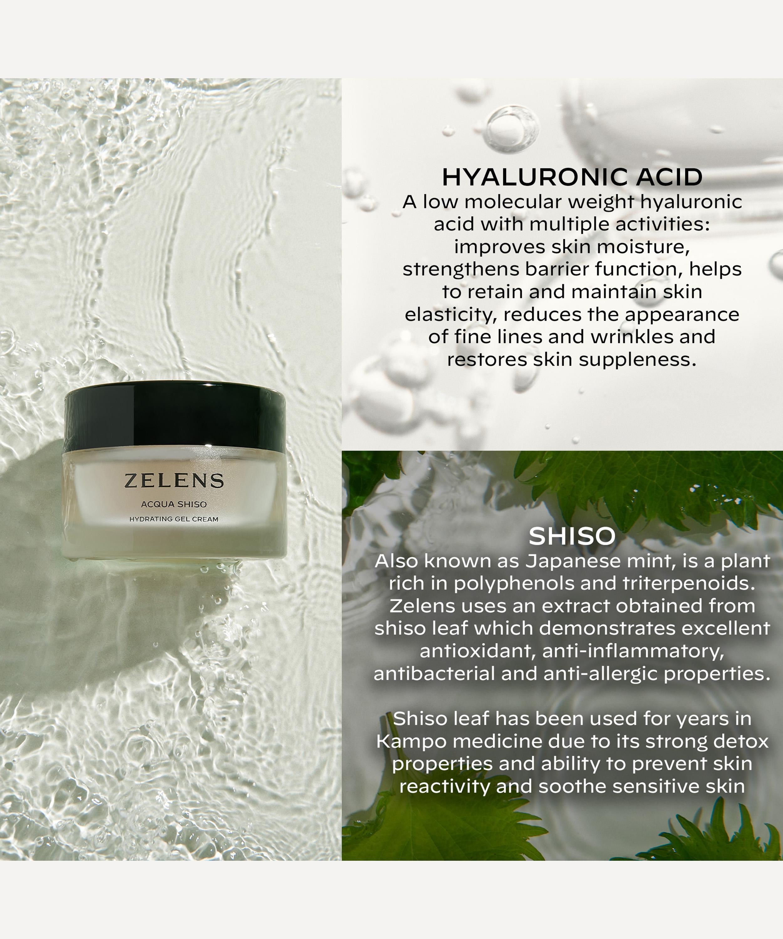 Richly formulated with fermented extract from green Shiso leaves, the Acqua Shiso Hydrating Gel Cream from Zelens is a soothing treatment for dull, dehydrated skin.