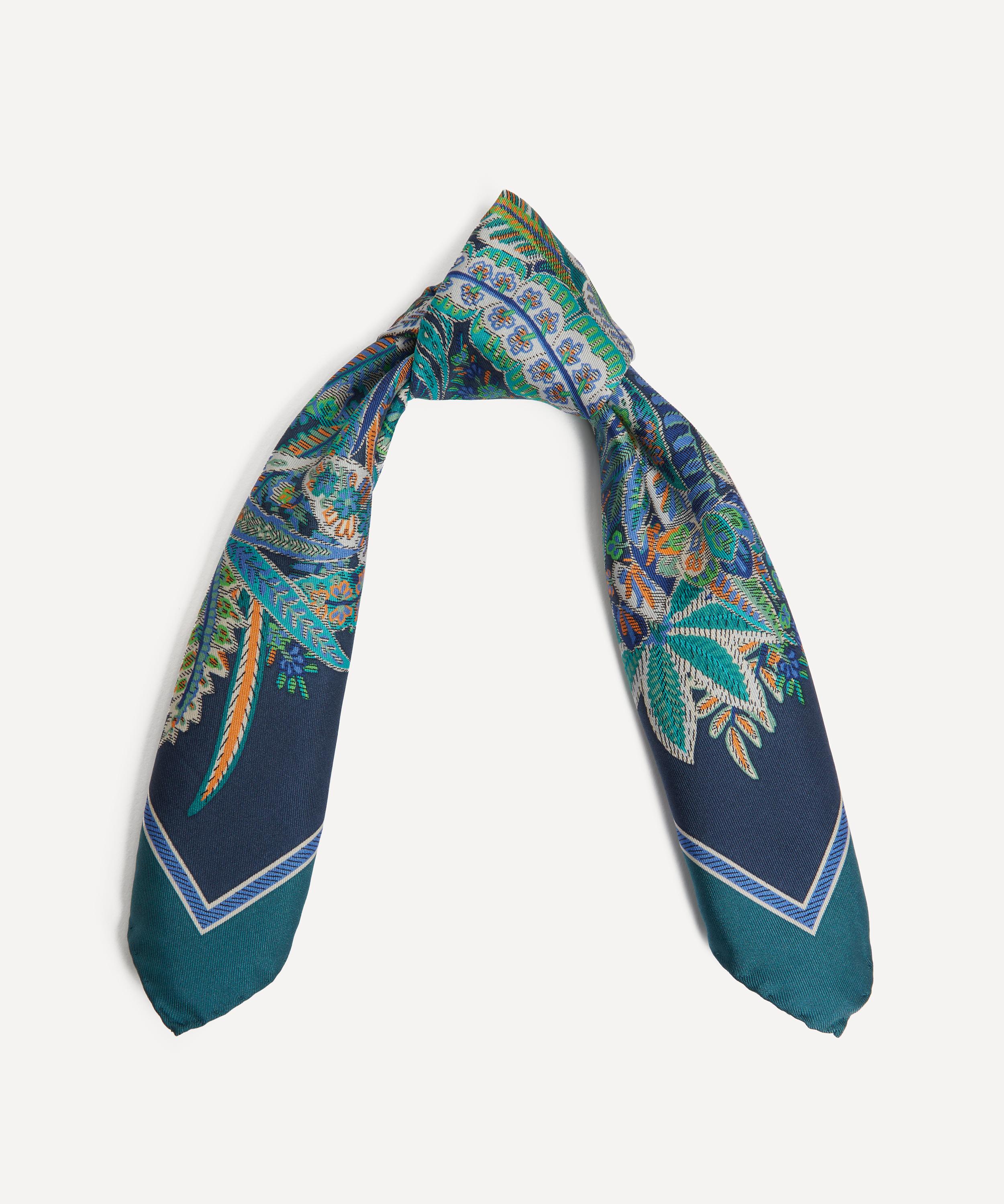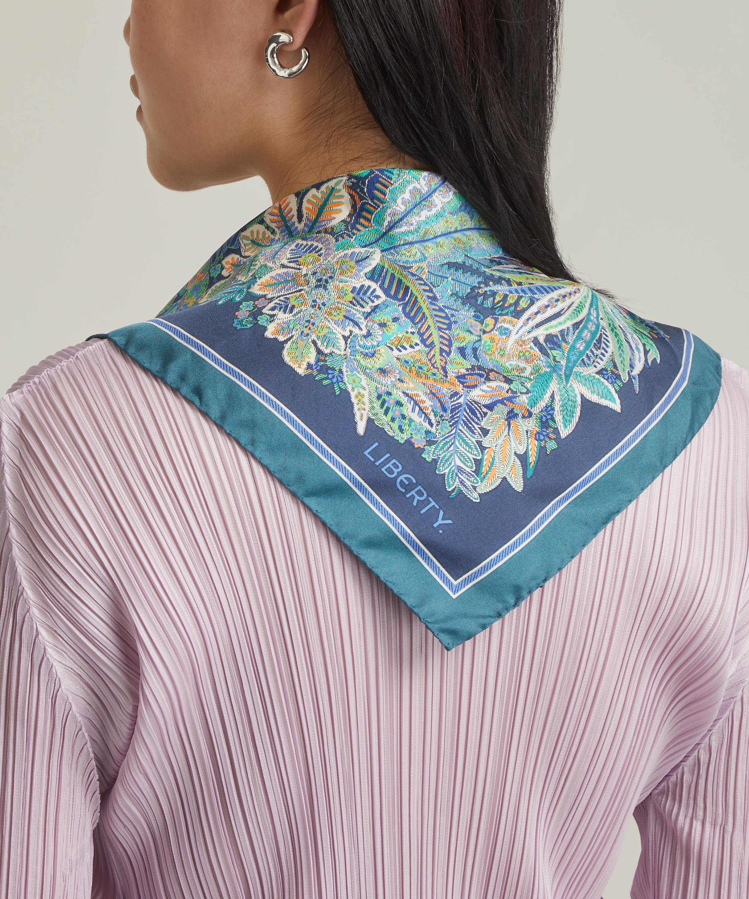 Reach for the Adelphi Voyage silk scarf from Liberty to tie your outfit together. Part of our Botanical Atlas collection – inspired by the magical wonders of the natural world, this scarf evokes classic heritage style with the Adelphi Voyage print, boasting a mesmerising paisley depicting a rainforest of tropical palms, feathery leaves, and fern fronds. Meticulously crafted from an ultra-soft silk twill, try draping it over neutral outerwear, or knot it close to the neck for a burst of contemporary colour designed to stand the test of time.