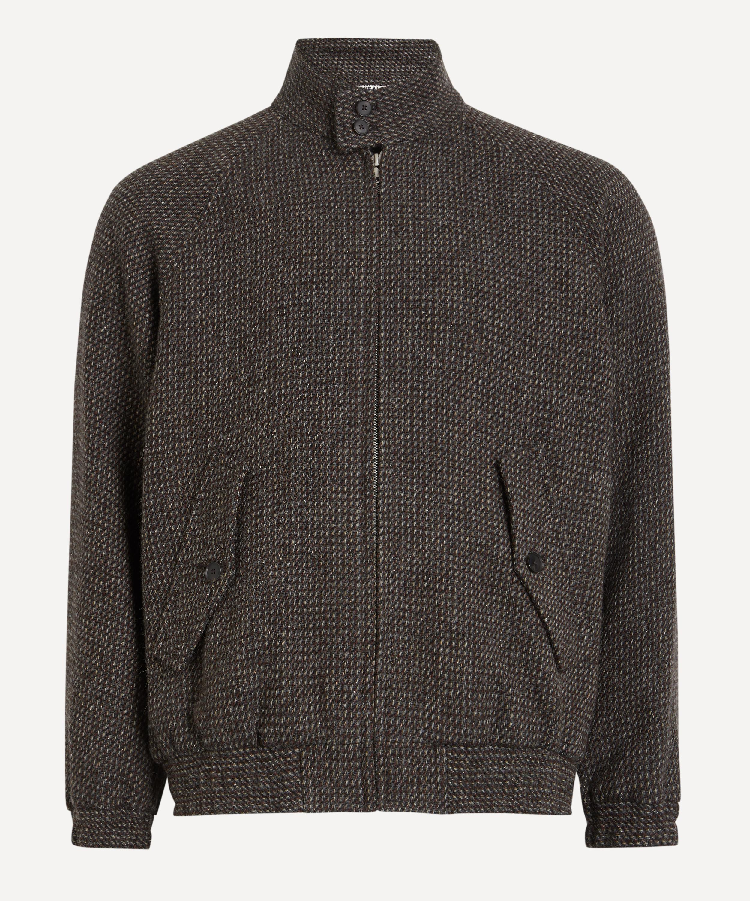 Crafted from a luxurious, lightweight tweed blend of wool, alpaca and silk, this blouson jacket features an oversized fit with a stand collar, raglan sleeves, zip fastening, and elasticated cuffs and hem for a refined yet comfortable finish.