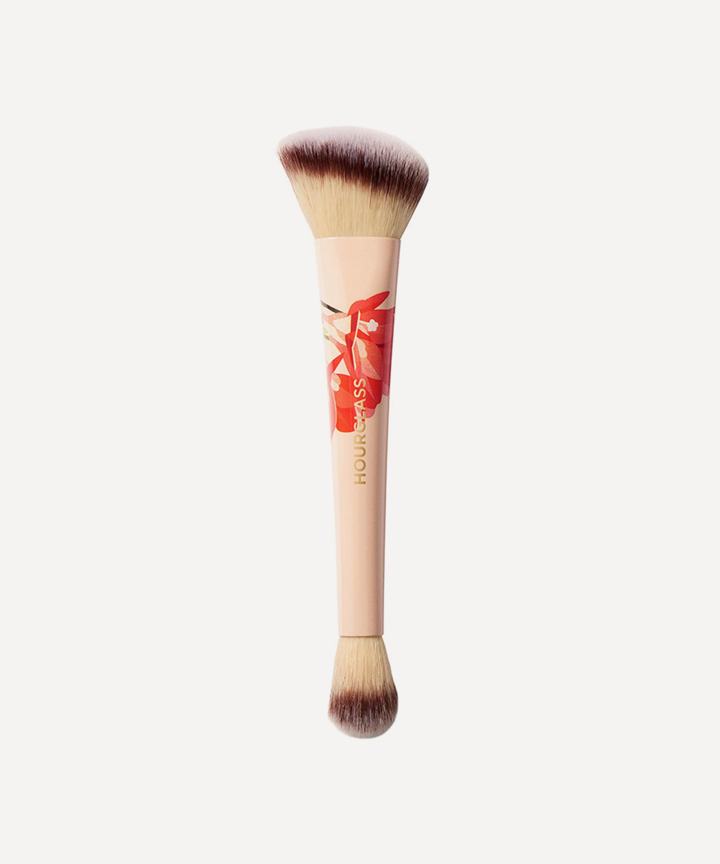 Complement your makeup kit with the Ambient Lighting Edit Brush II, a limited-edition, double-ended brush by Hourglass designed for flawless makeup application. Featuring two versatile heads – a slanted end for blush and a domed end for highlighter – this exclusive brush is crafted with ultra-soft synthetic bristles for a luxurious feel. Adorned with freesia flower artwork by Ukrainian tattoo artist Sasha Unisex, it makes the perfect festive addition to any beauty collection, offering effortless precision and style.