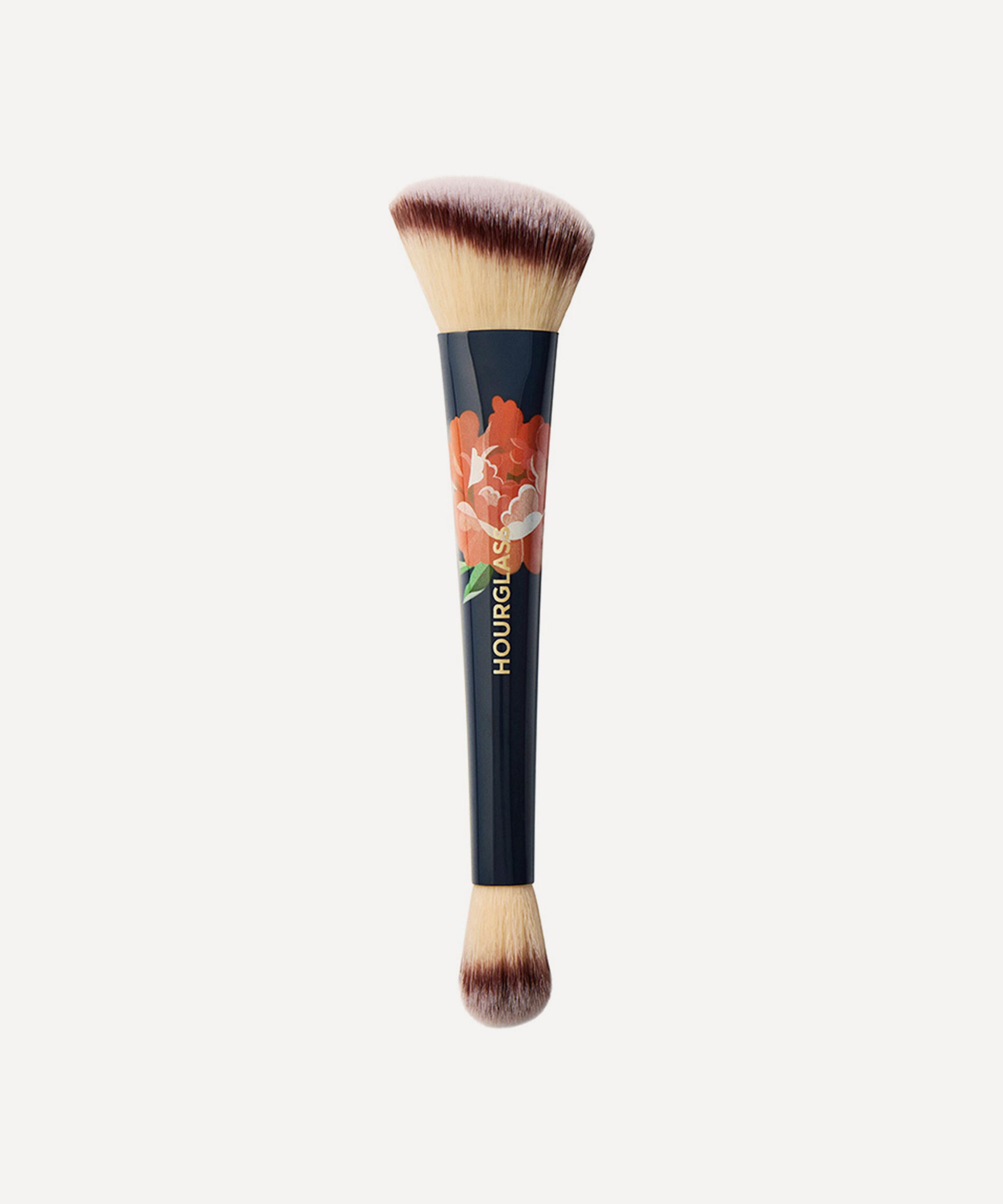 Complement your makeup kit with the Ambient Lighting Edit Brush II, a limited-edition, double-ended brush by Hourglass designed for flawless makeup application. Featuring two versatile heads – a slanted end for blush and a domed end for highlighter – this exclusive brush is crafted with ultra-soft synthetic bristles for a luxurious feel. Adorned with peony flower artwork by Ukrainian tattoo artist Sasha Unisex, it makes the perfect festive addition to any beauty collection, offering effortless precision and style.