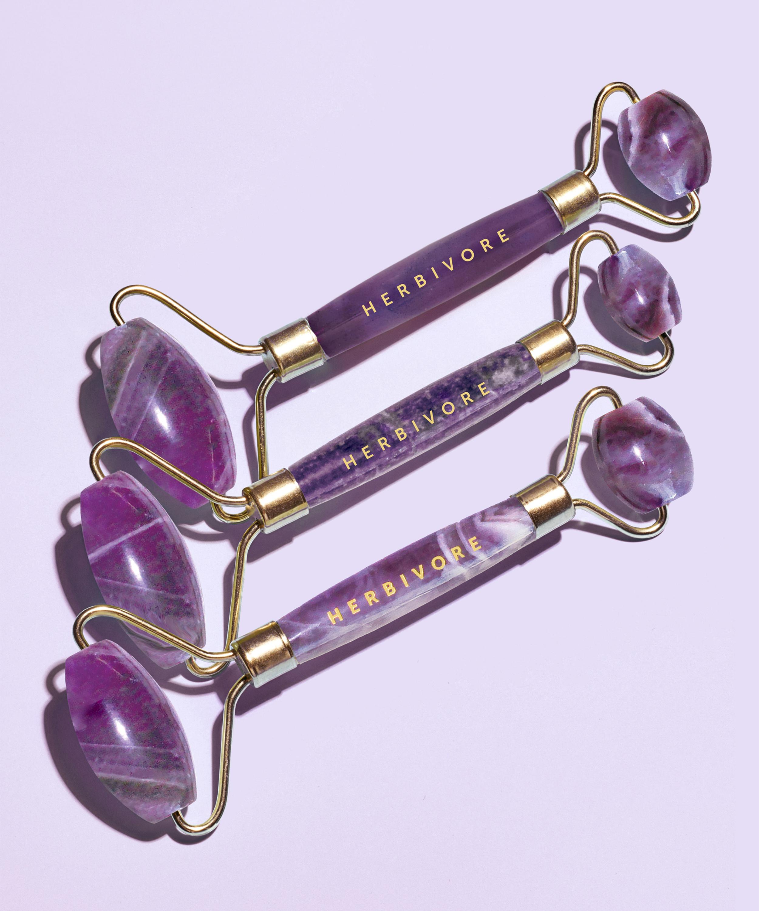 Herbivore's Amethyst Facial Roller is a cult beauty tool with relaxing and de-stressing properties, known to improve skin's elasticity, reduce puffiness and fine lines and ease facial muscle tension while creating the perfect canvas for skin care.