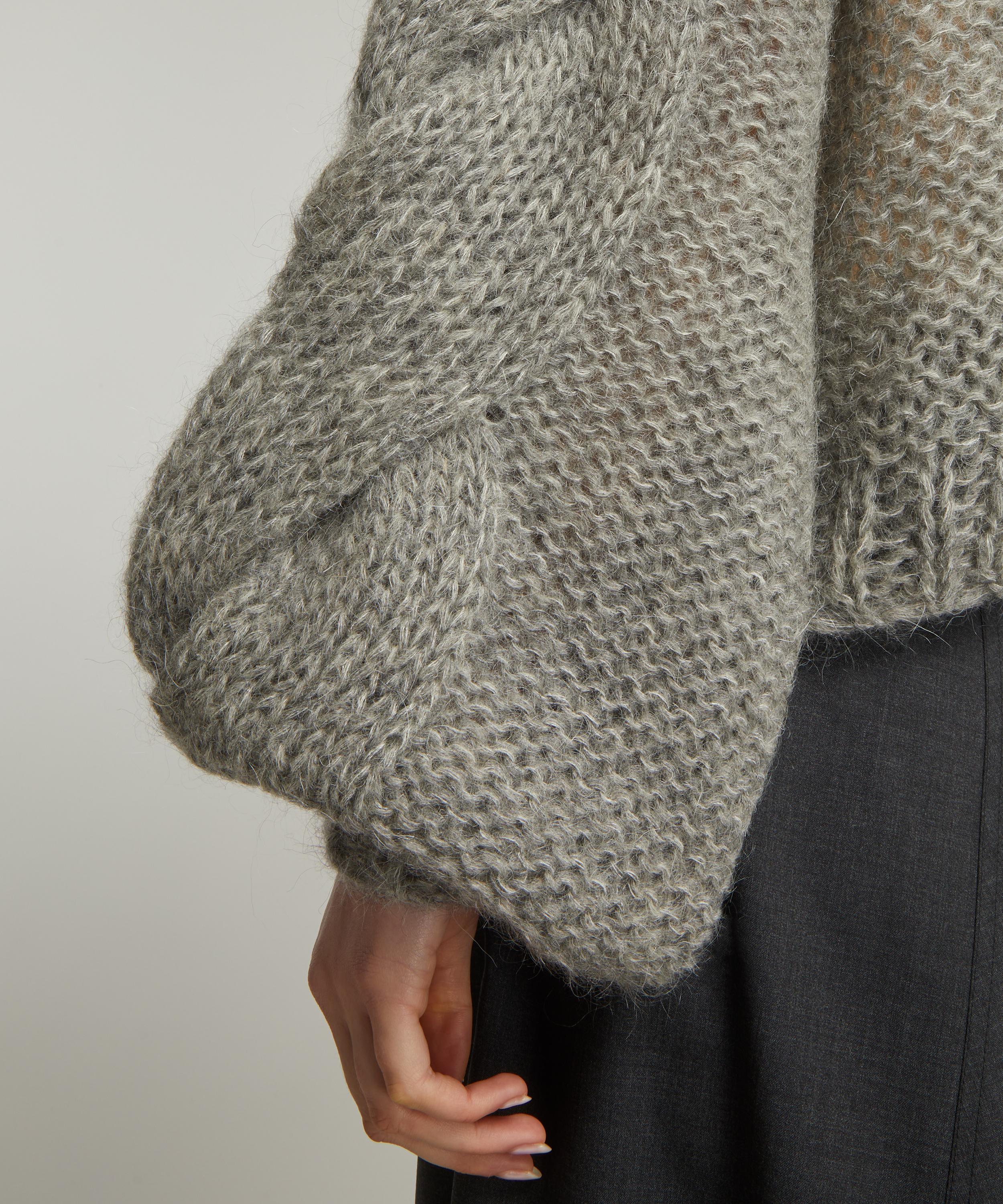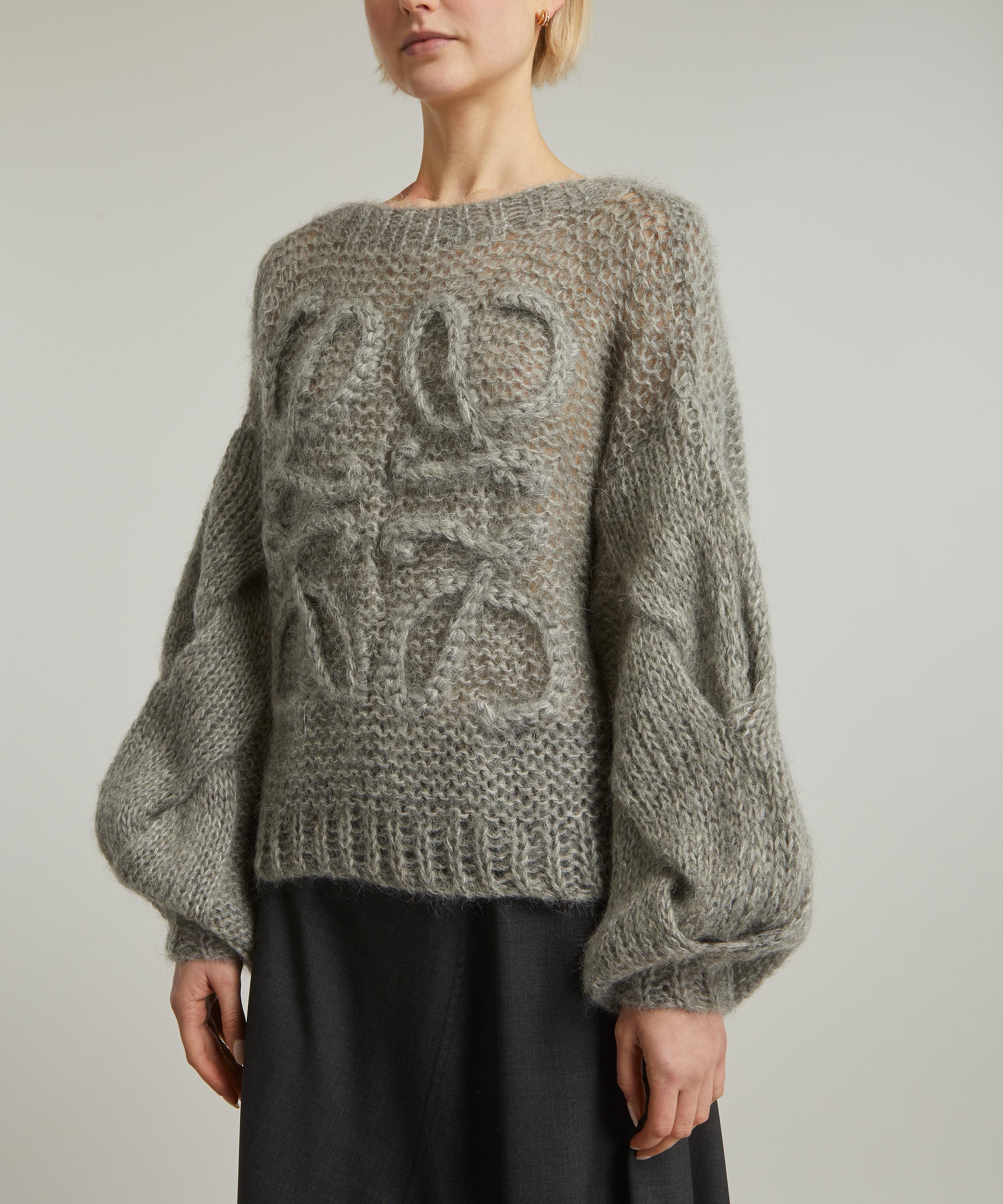 Knitted from a sumptuously-soft mohair-blend, this relaxed jumper is enhanced with voluminous, cable-knit puff-sleeves, and hand-finished Anagram appliqué at the front.