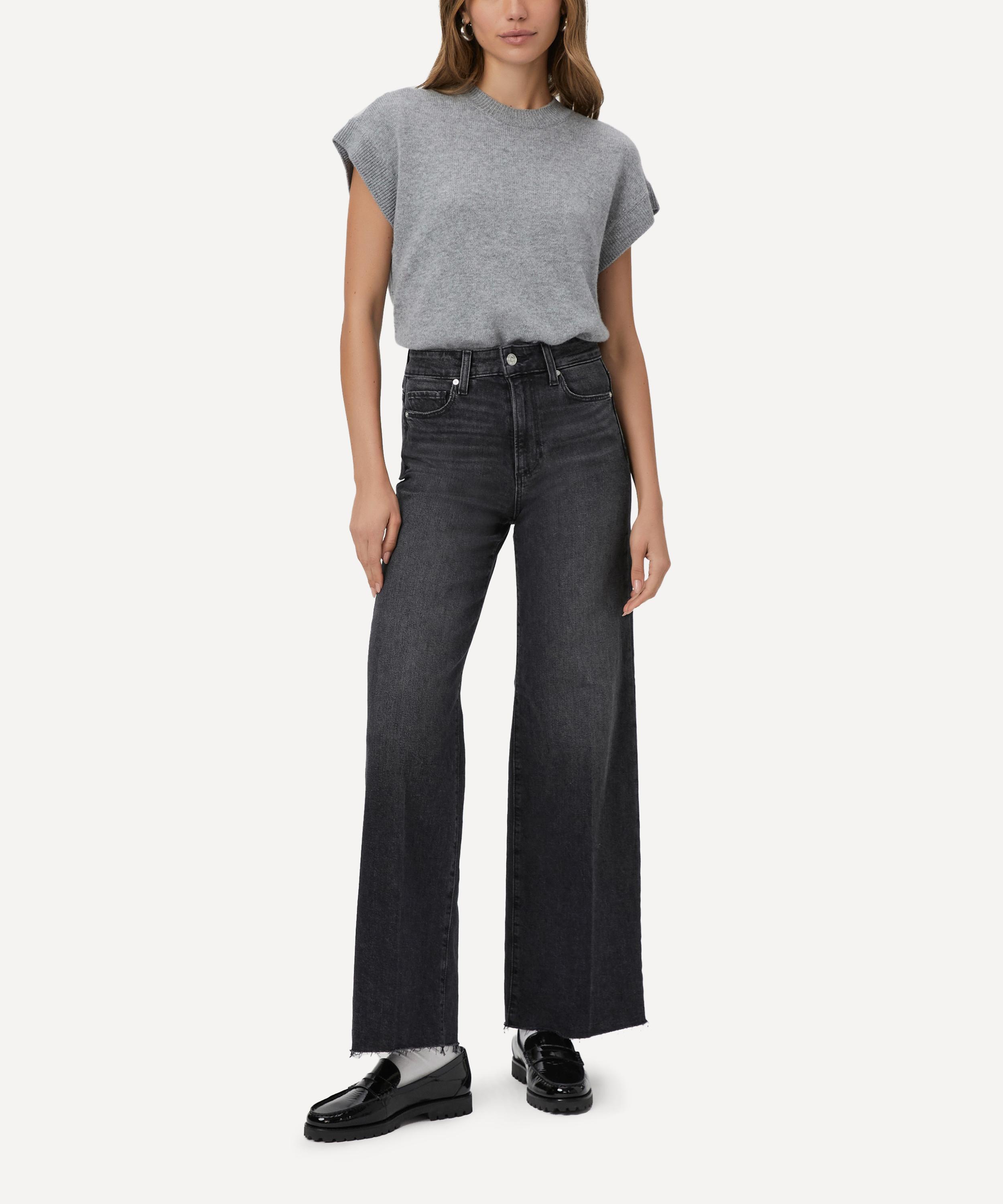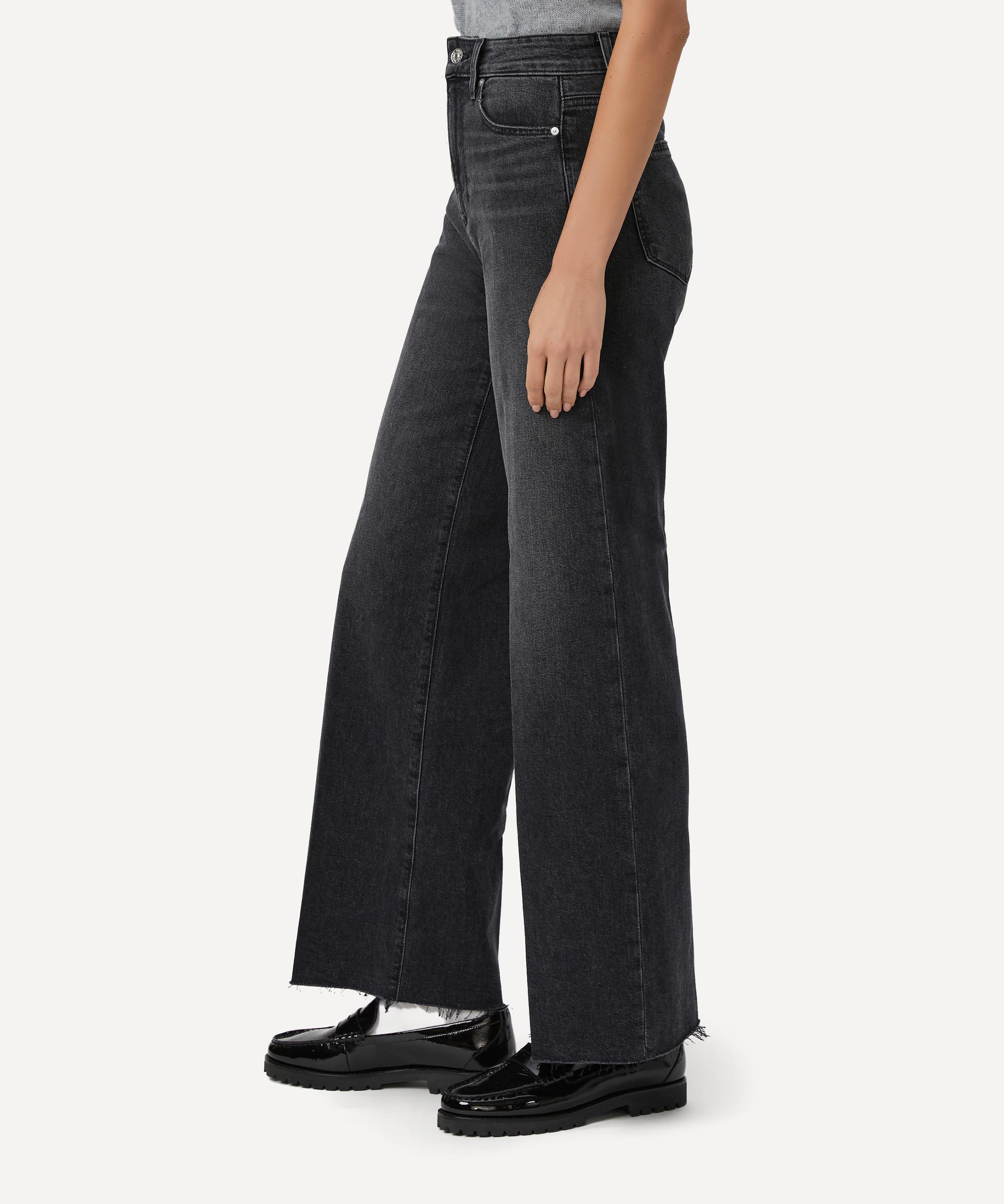 Cut from signature stretch denim in a washed black hue, the Anessa jeans feature an ultra high-rise waist and a wide-leg silhouette, complete with lived-in details and a distressed hem for an authentic vintage look. Designed for a relaxed fit with a 31” inseam, they offer an effortlessly cool option for everyday wear.