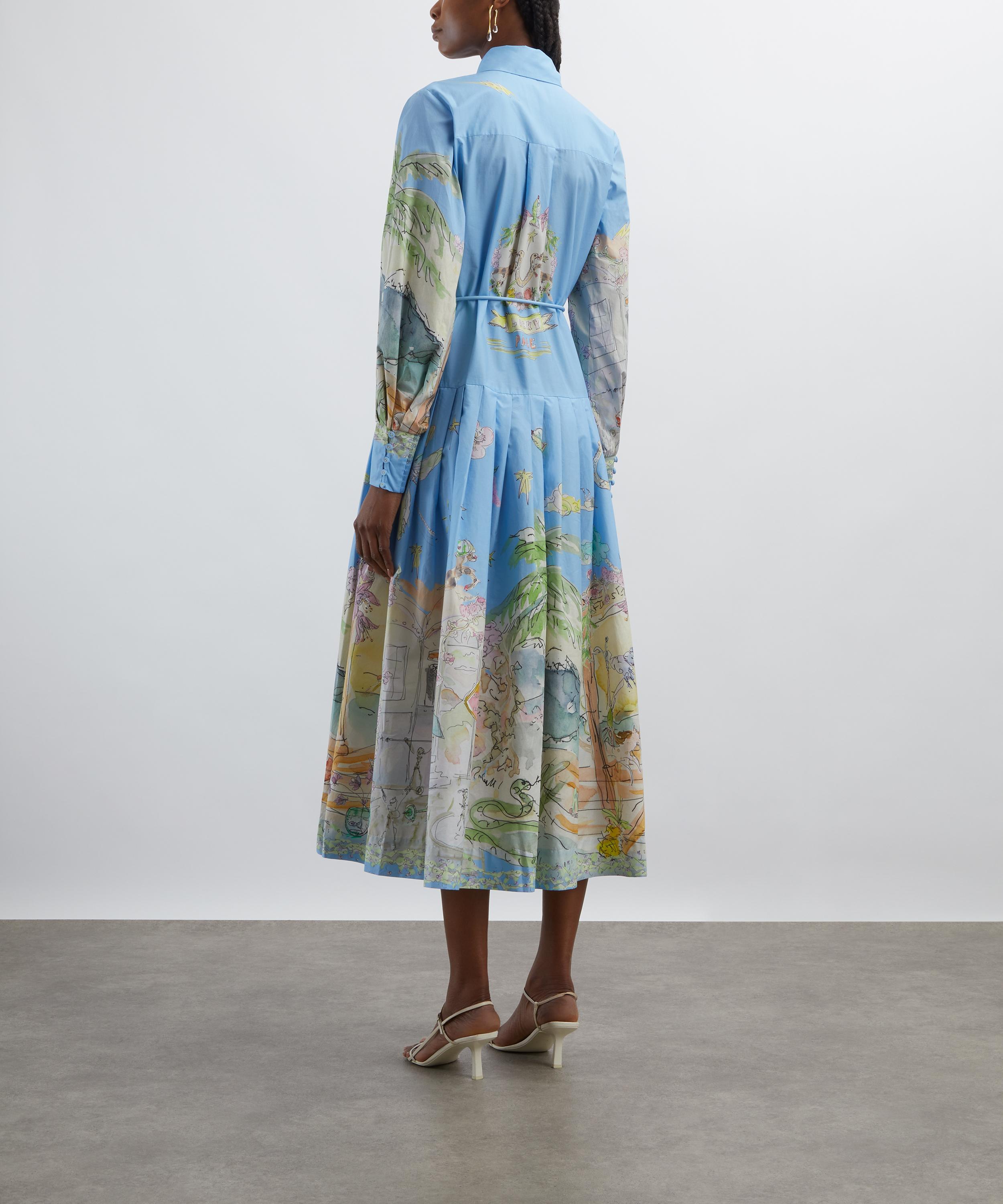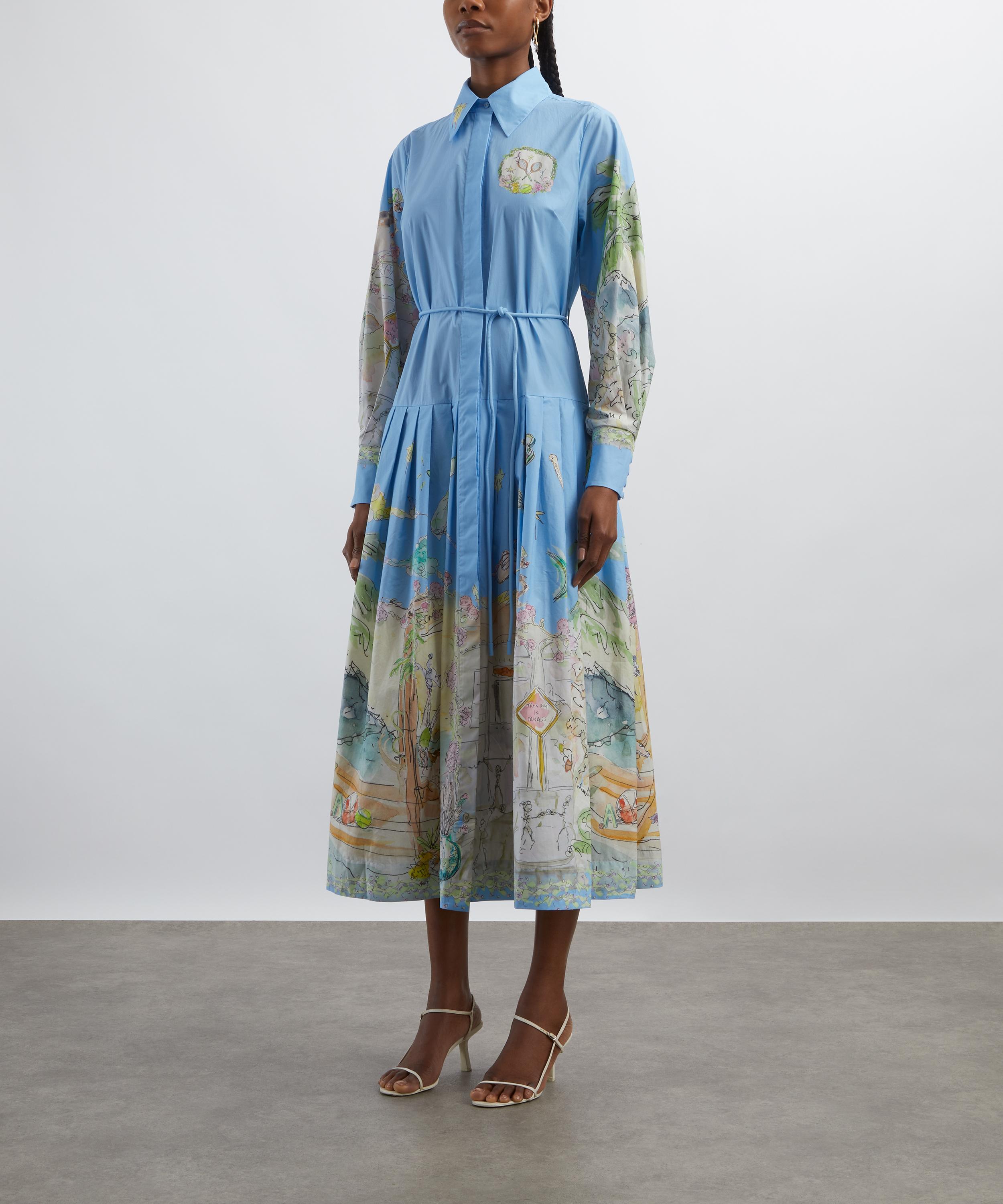 Created in collaboration with artist Anouk Colantoni, this vibrant shirt dress is adorned with a whimsical assortment of charming illustrations. Cut from cotton, it features a relaxed midi silhouette with a point collar, long blouson sleeves with buttoned cuffs, and a pleated skirt, finished with a tie belt to cinch the waist.