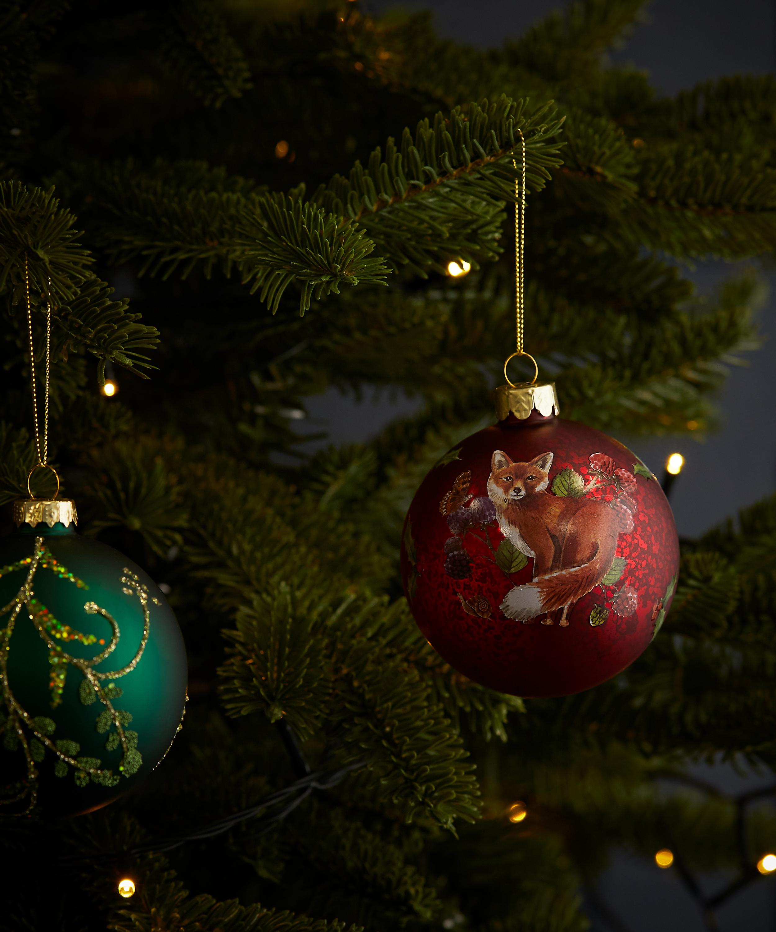 An irresistible piece of Christmas fun, it features an elegant fox and fruit design on a luxe red backdrop – ready to shimmer all season long.