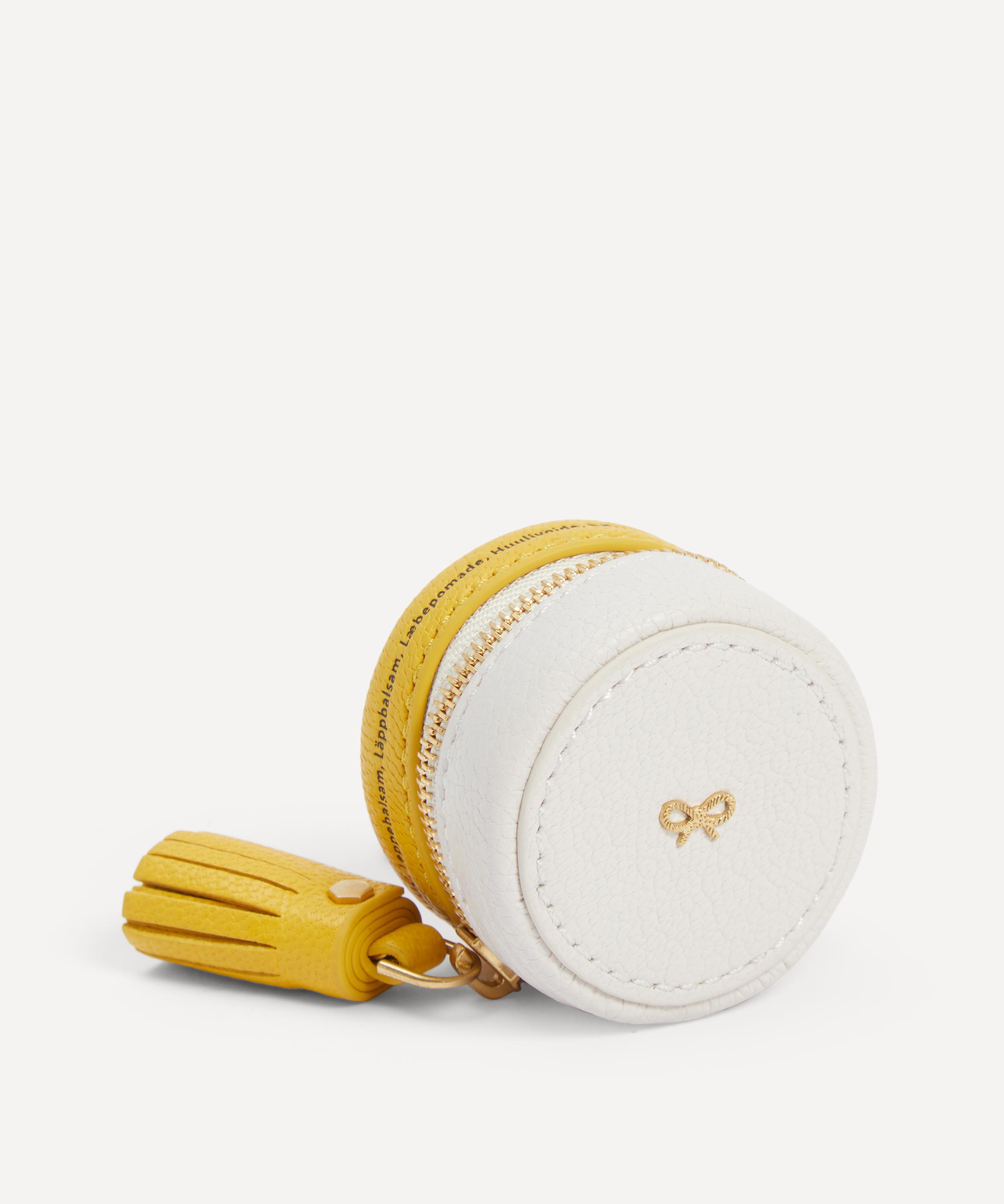 Crafted from glossy capra leather to look exactly like the saccharine yellow lip balm, this charm is complete with a tassel zip pull and keychain - reflecting the brand’s skill for fun, functional accessories.About Anya Hindmarch