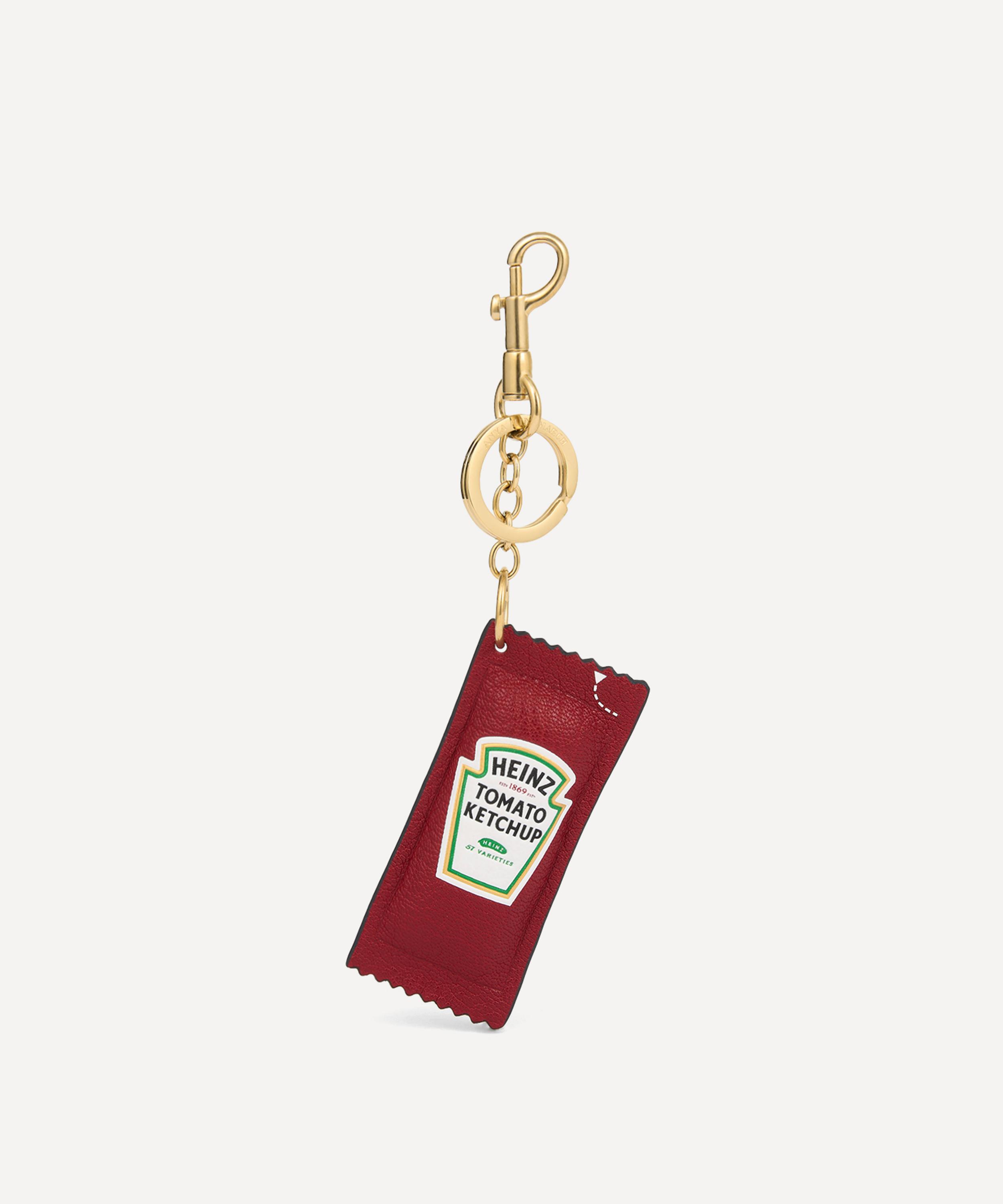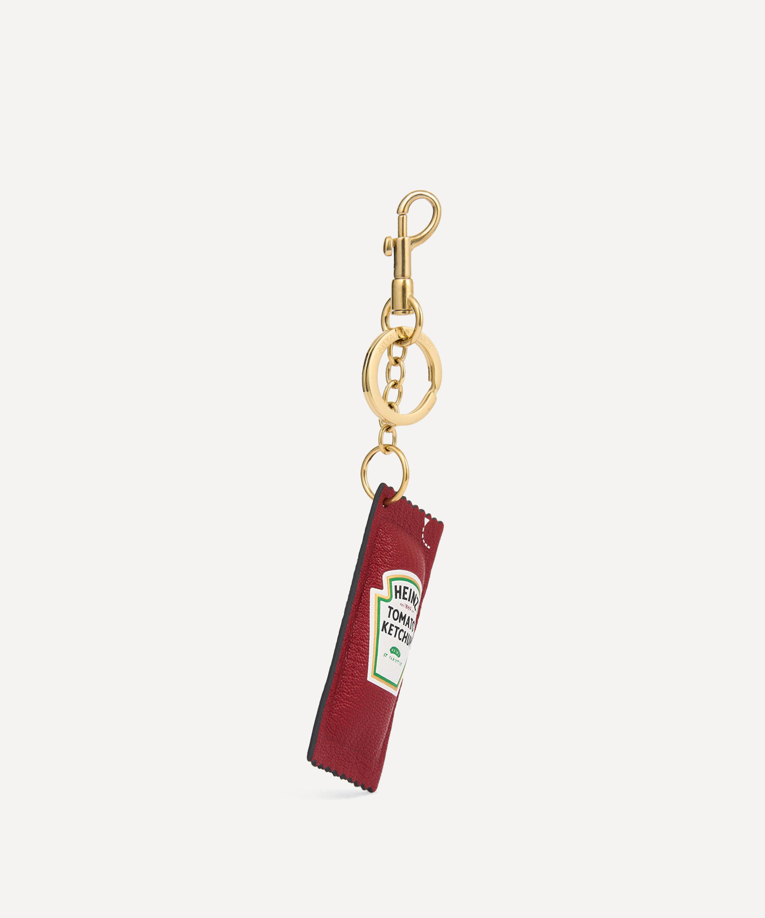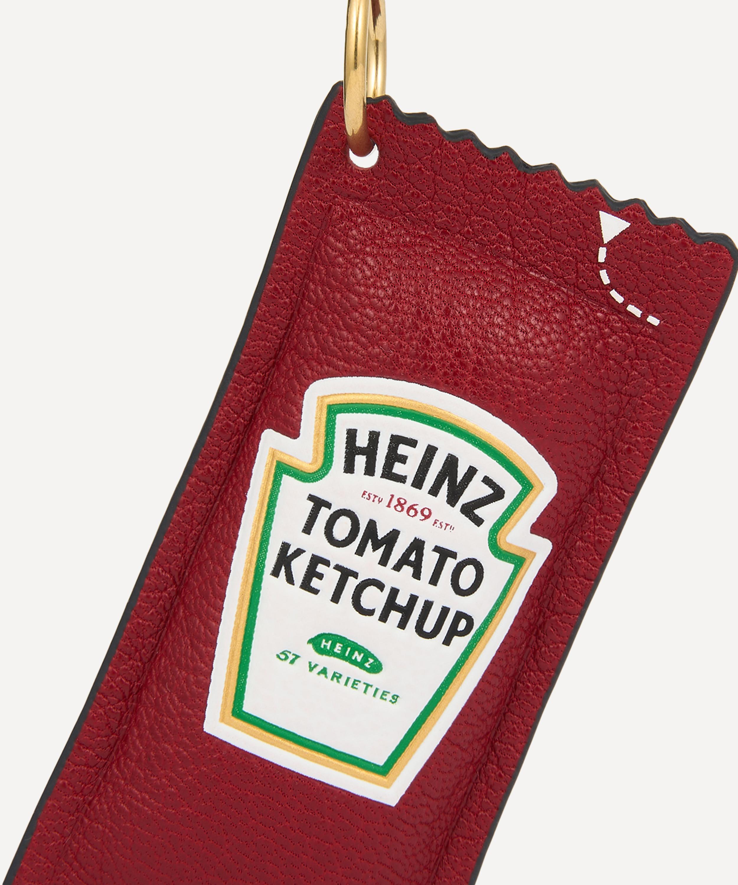 Crafted from textured leather to look like a pack of ketchup, this charm is finished with foiled appliqué and meticulous detailing – complete with a gold-tone clasp and keyring reflecting the brand’s skill for fun, functional accessories.About Anya Hindmarch
