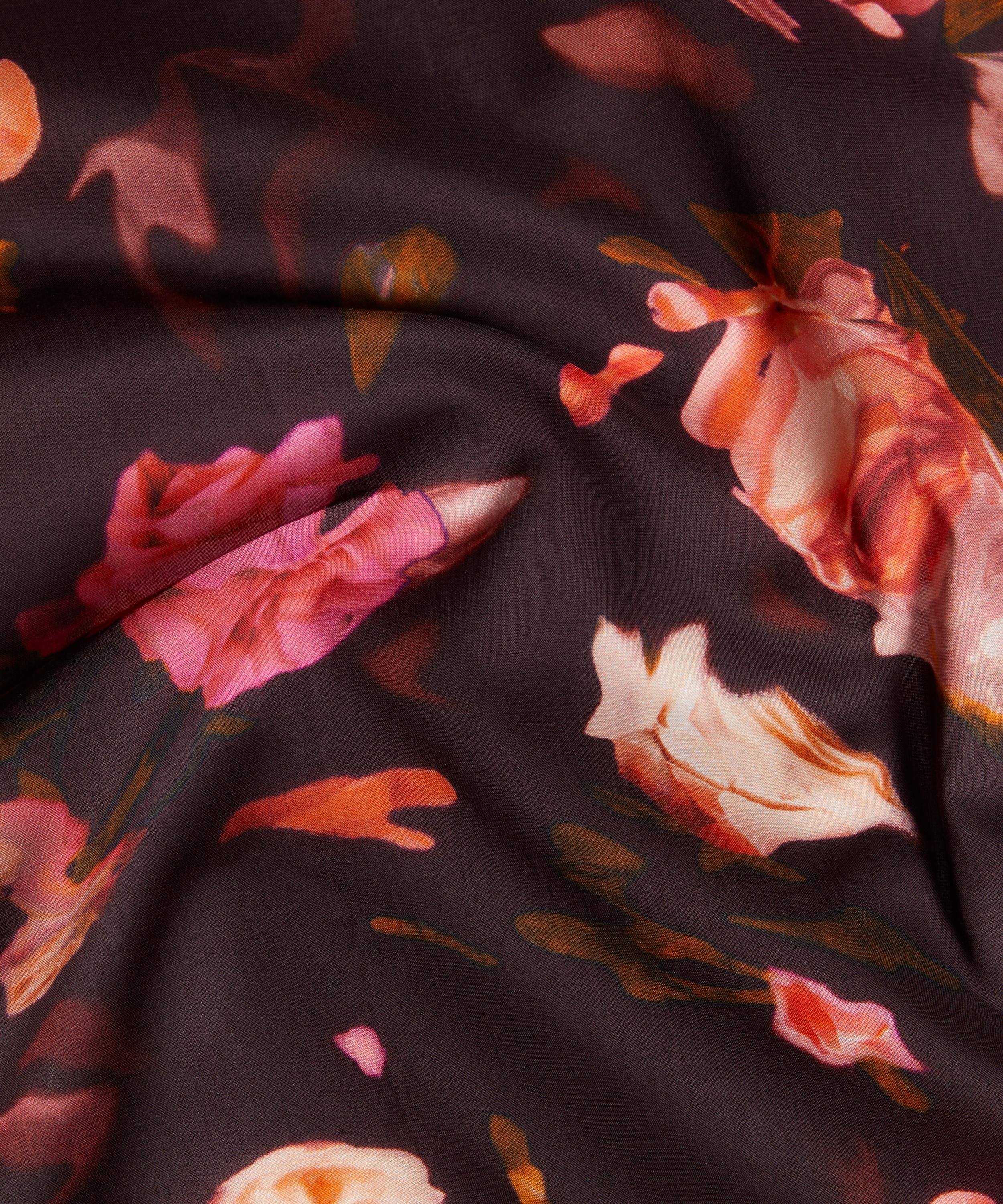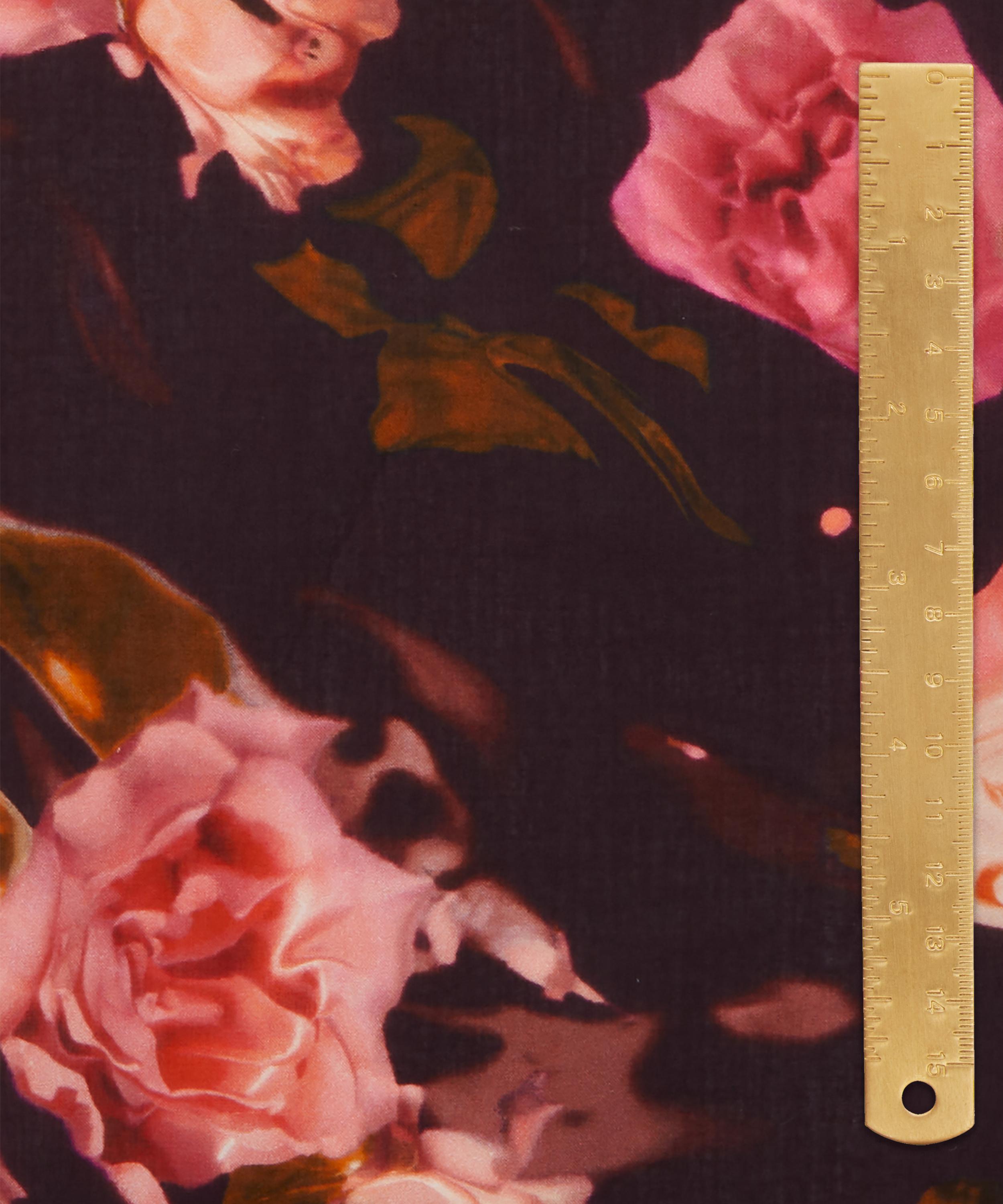 Taking influence from Aphrodite, the goddess of love and beauty, this design focuses on her symbol of the rose – legend has it that when the goddess was born from the sea, roses sprung from the sand as she stepped ashore. The pattern was created using photography and digital manipulation, to give the illusion of roses submerged underwater. The flowers appear distorted and abstracted, in an original and highly contemporary take on a classic rose print. Aphrodite’s Rose is part of the Oceans story of our Autumn/Winter 2023 collection – featuring designs that draw us deep down into a glittering underwater kingdom of wine-dark waters inhabited by powerful mythological beings.