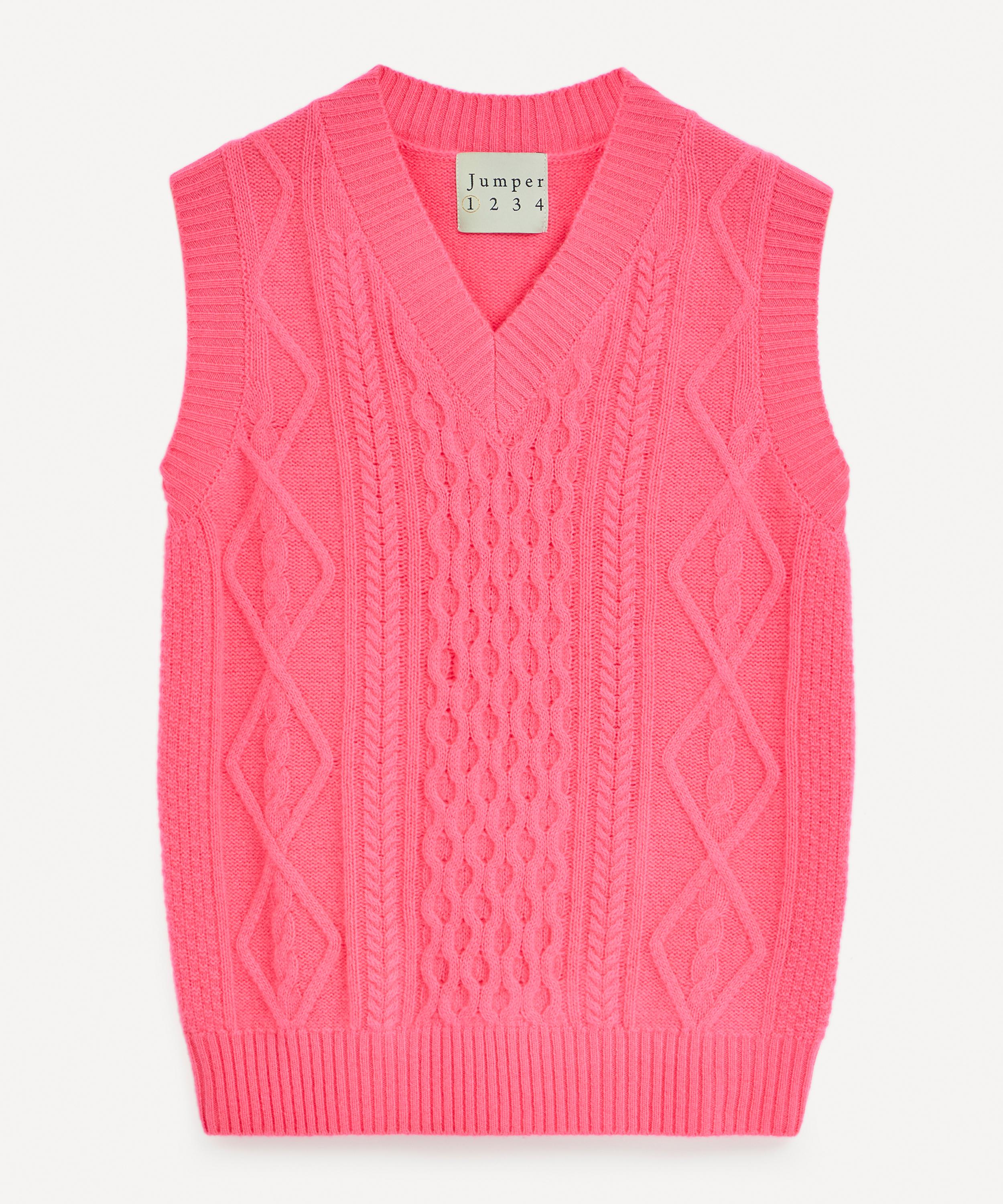 A classic and cosy knit, the Aran cashmere tank-top from Jumper 1234 is a staple in any curated wardrobe. Bringing a touch of luxury to your daily edit, this sumptuously-soft sleeveless knit is elevated by its chunky cable pattern.
