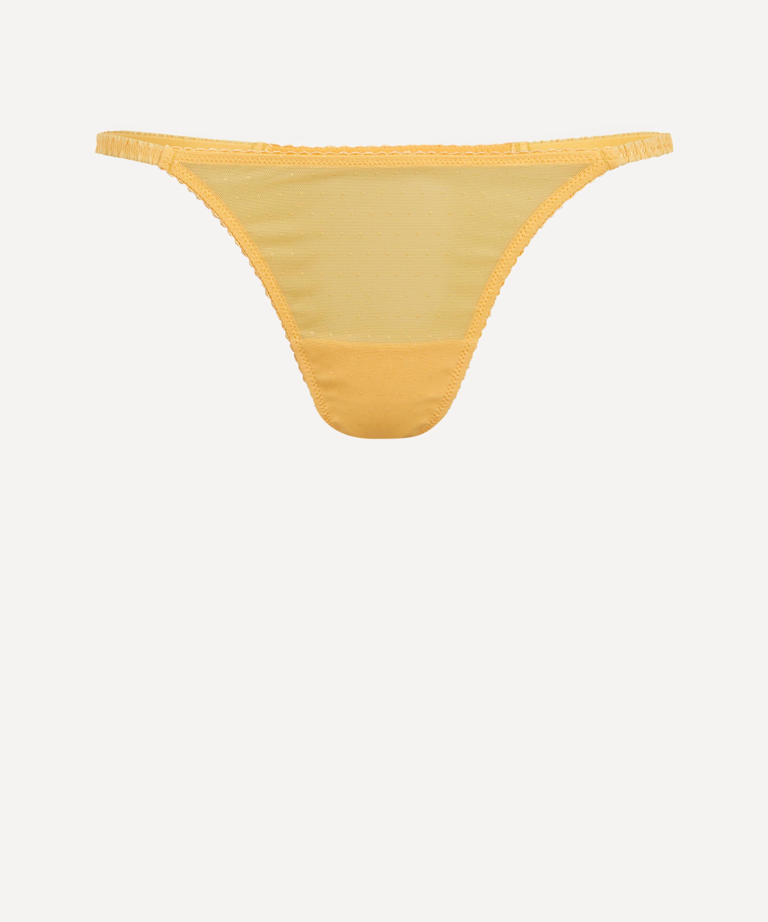 In dotty deadstock fabric, this classic thong is crafted with mesh for extra comfort. Designed to sit on the hips or be worn higher, they're finished with delicate scalloped trims for a romantic touch.