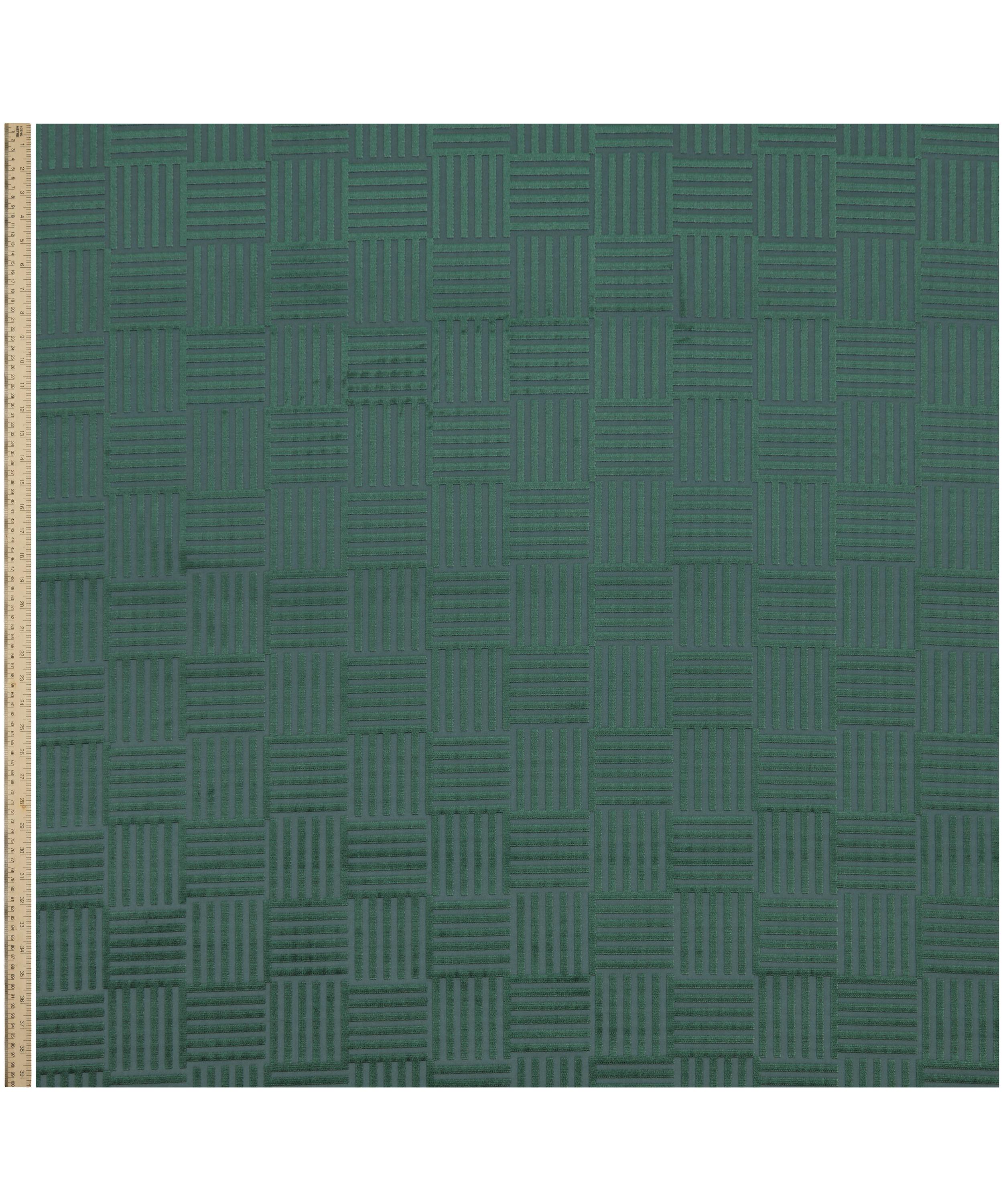 The Botanical Atlas fabric collection celebrates our historic lineage of craftsmanship and design through a cross-pollination of styles and visual narratives. Richly layered embroideries, opulent textured weaves, and contemporary printed velvets and linens are juxtaposed with a selection of elegant stripes and mesmerising geometrics - expertly crafted using traditional and cutting-edge techniques in Italy, Belgium, and India. A bold, dramatic geometric found in the Liberty archive has been developed into this richly textured matte and sheen velvet.