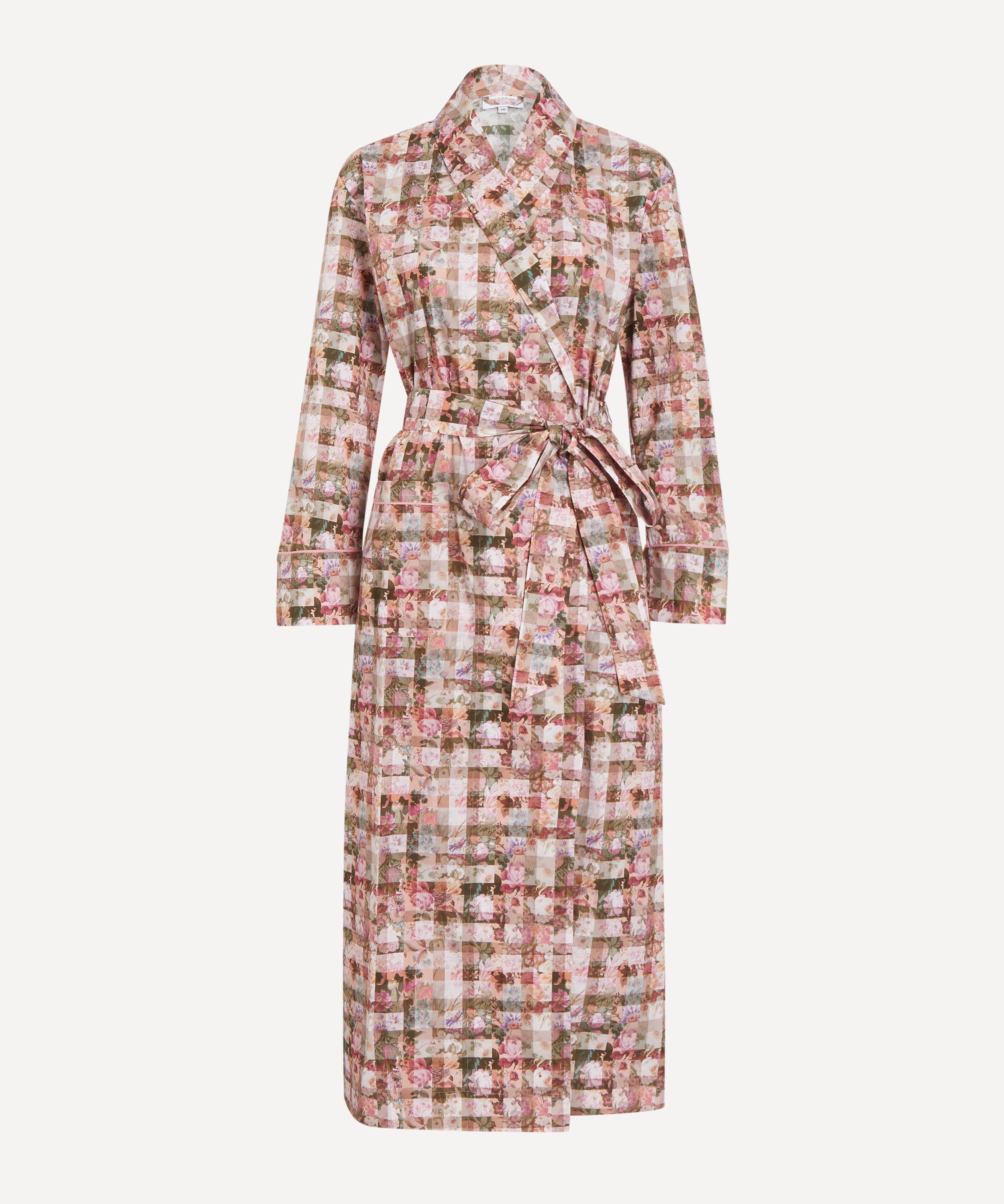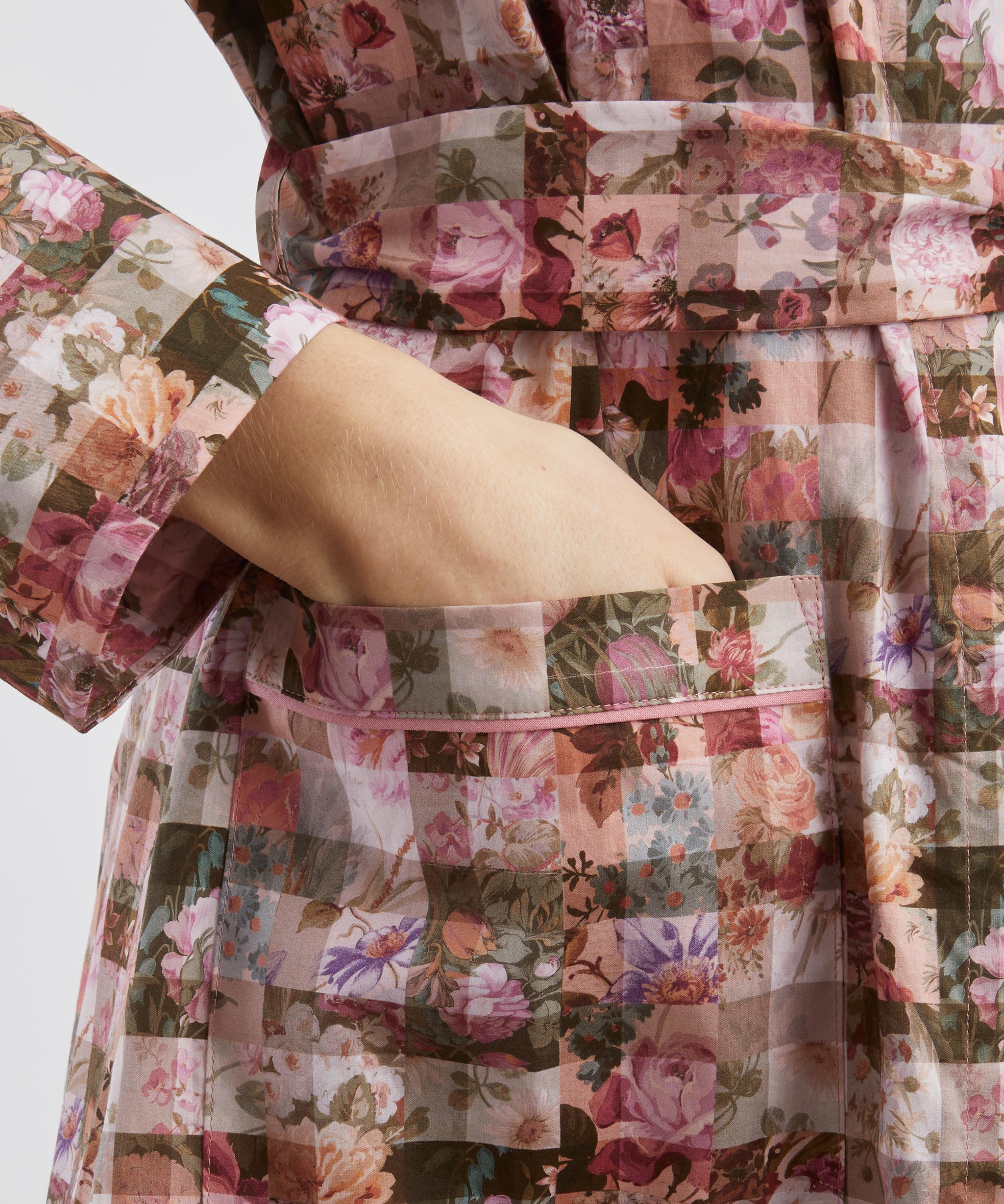 Bringing a touch of opulence to your nightwear edit, this robe showcases our Archive Gingham print. Carefully engineered into a check pattern by the design studio, this heritage patchwork originates from a collection of hand-painted artworks found within the Liberty archive. Botanical illustrations of chrysanthemums, roses, tulips, daisies, peonies, and clematis flowers elegantly peek through a transparent grid, while interplays of light and shadow infuse the design with a modern yet timeless allure.