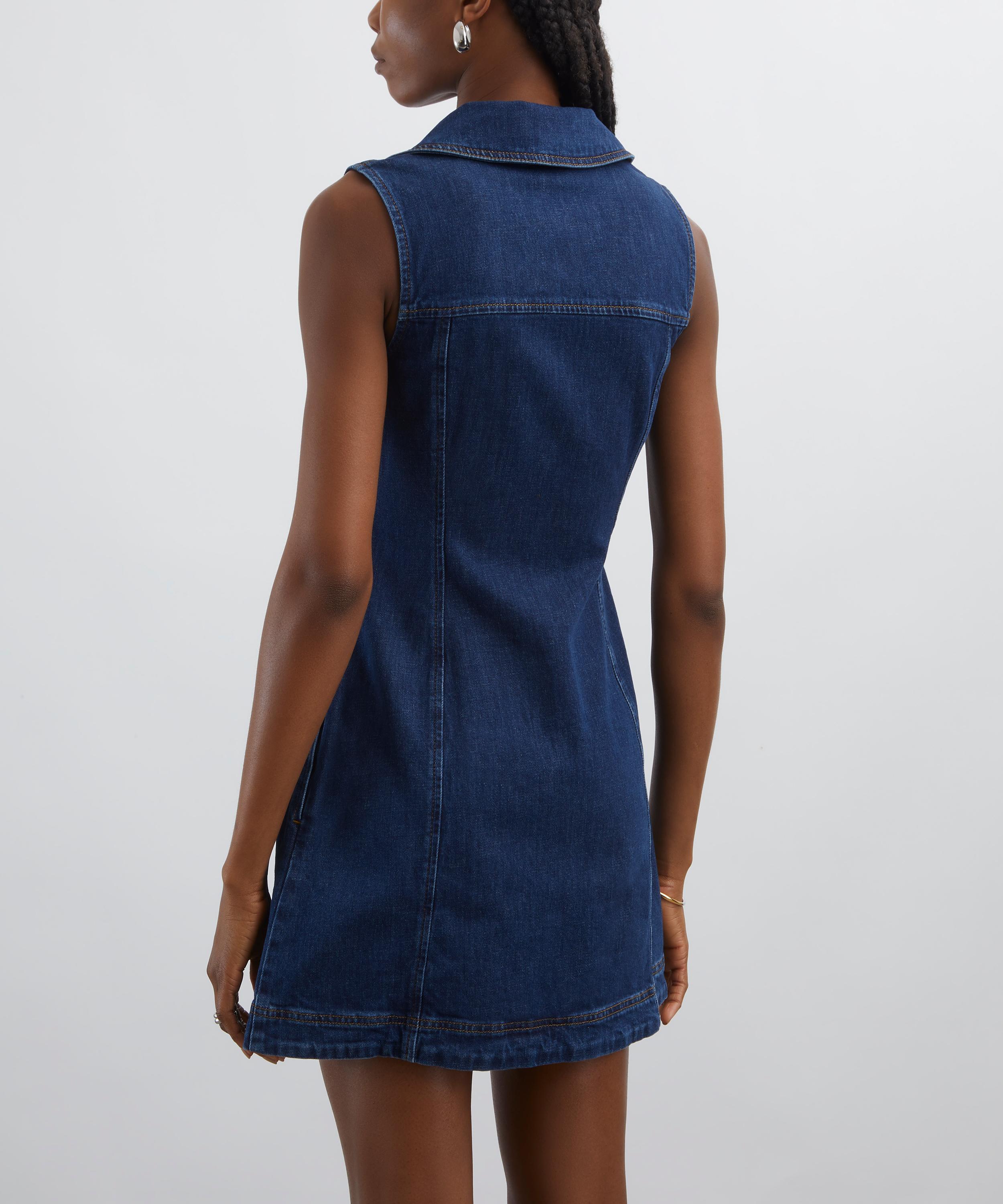 Crafted from cotton denim, this fitted mini dress features collared V-neckline, and a double-ended zip fastening, offering a modern yet effortless silhouette perfect for warm-weather dressing.