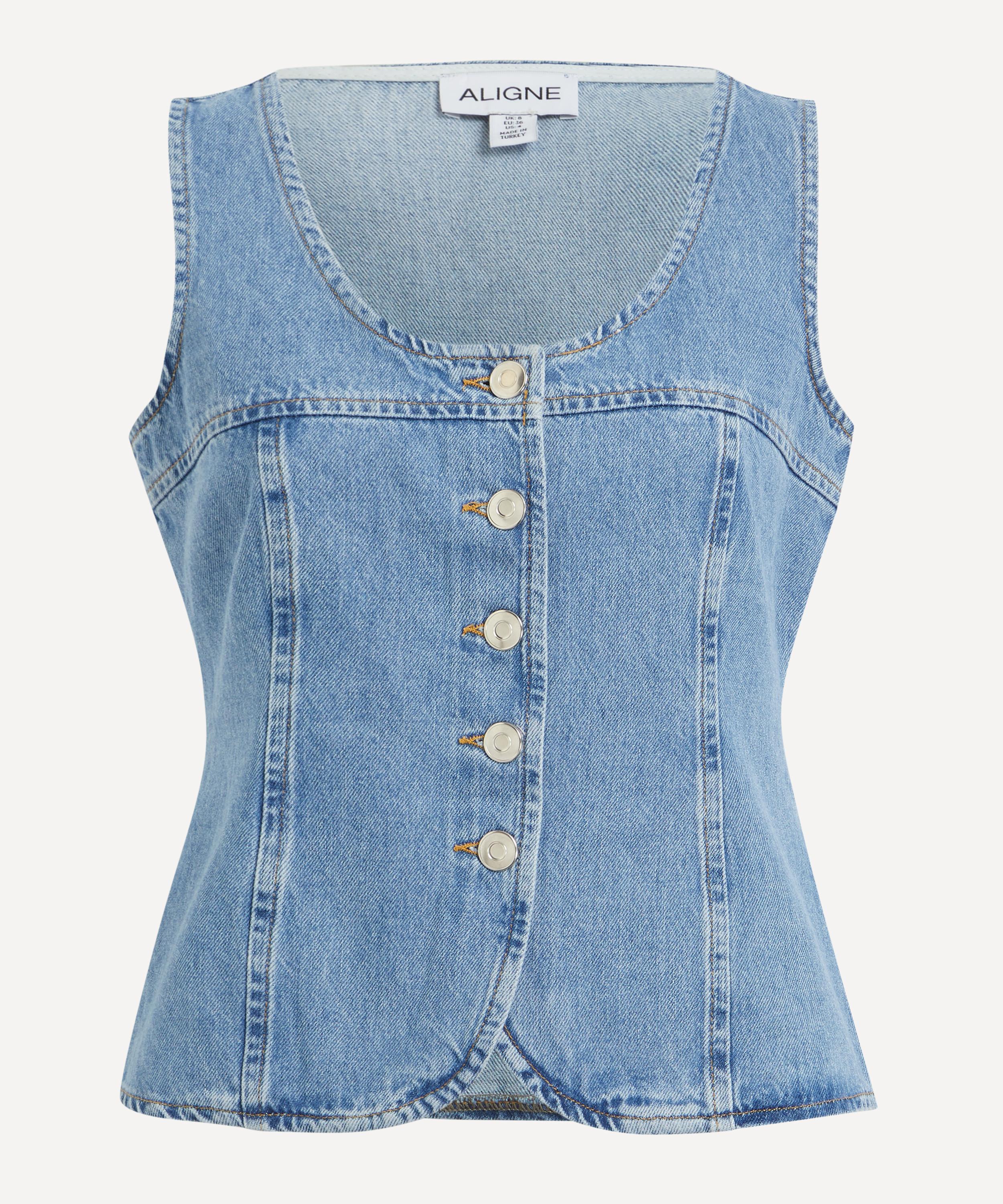 The Ariella Buttoned Denim Top from ALIGNE strikes the perfect balance between casual ease and understated sophistication.