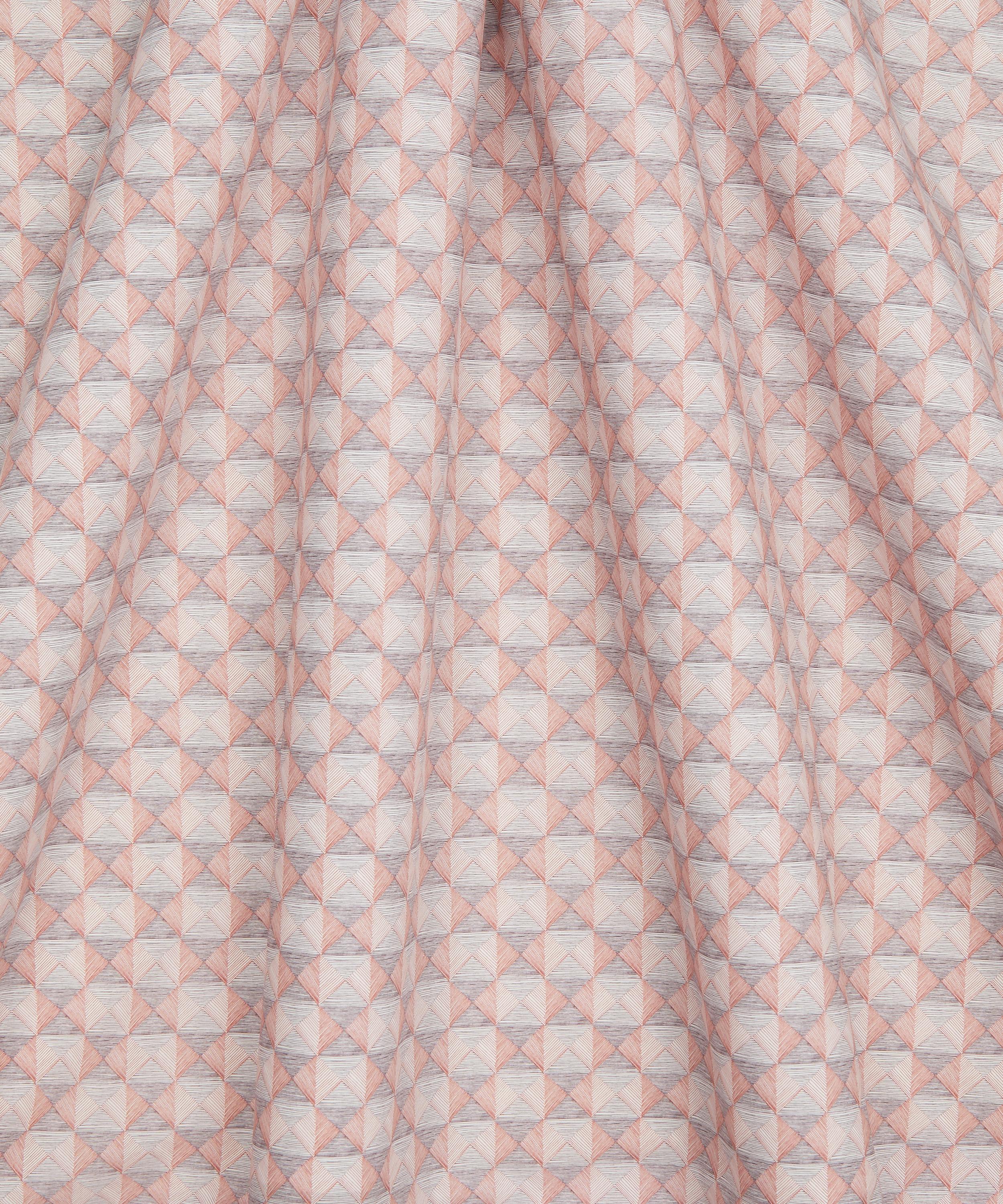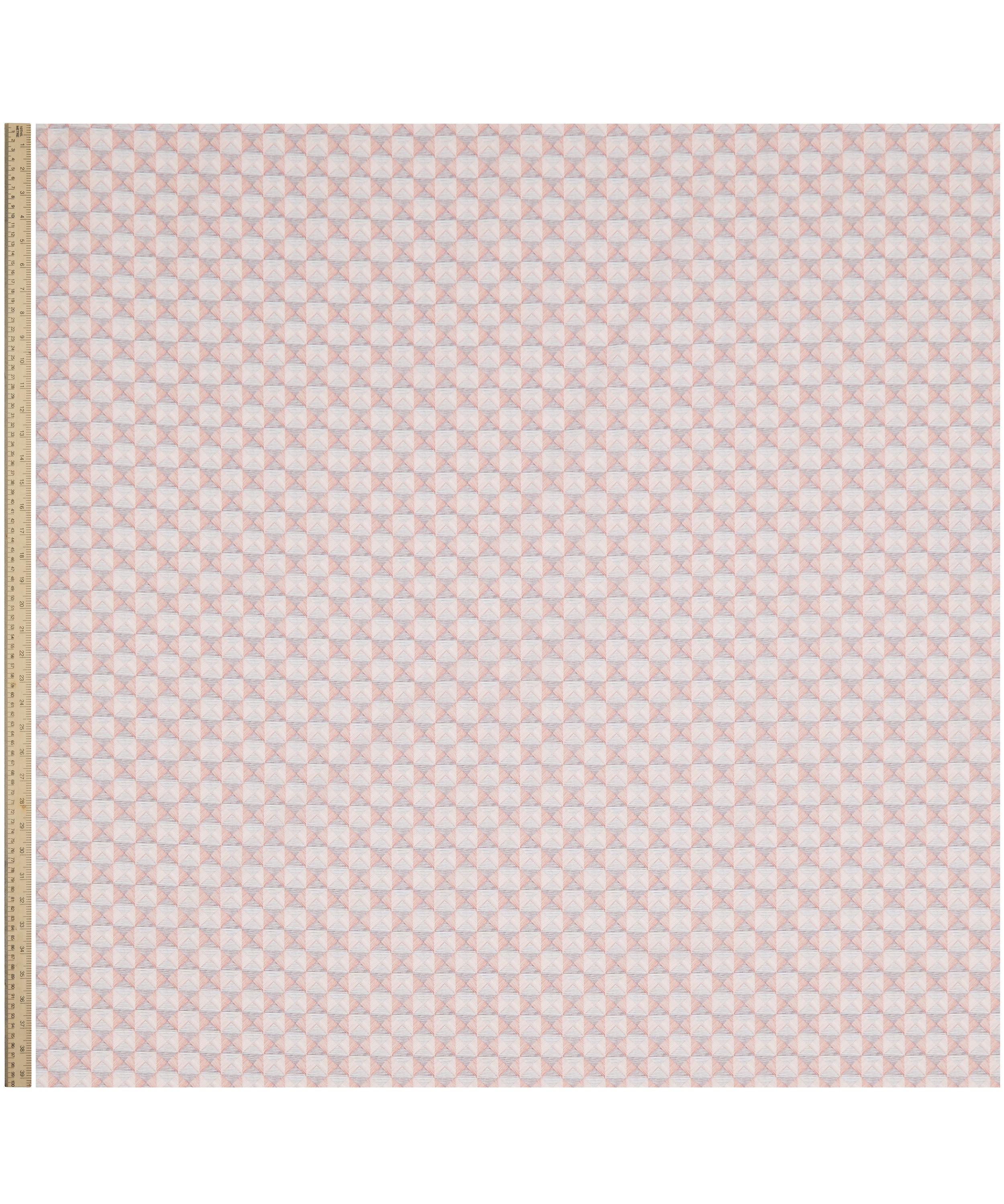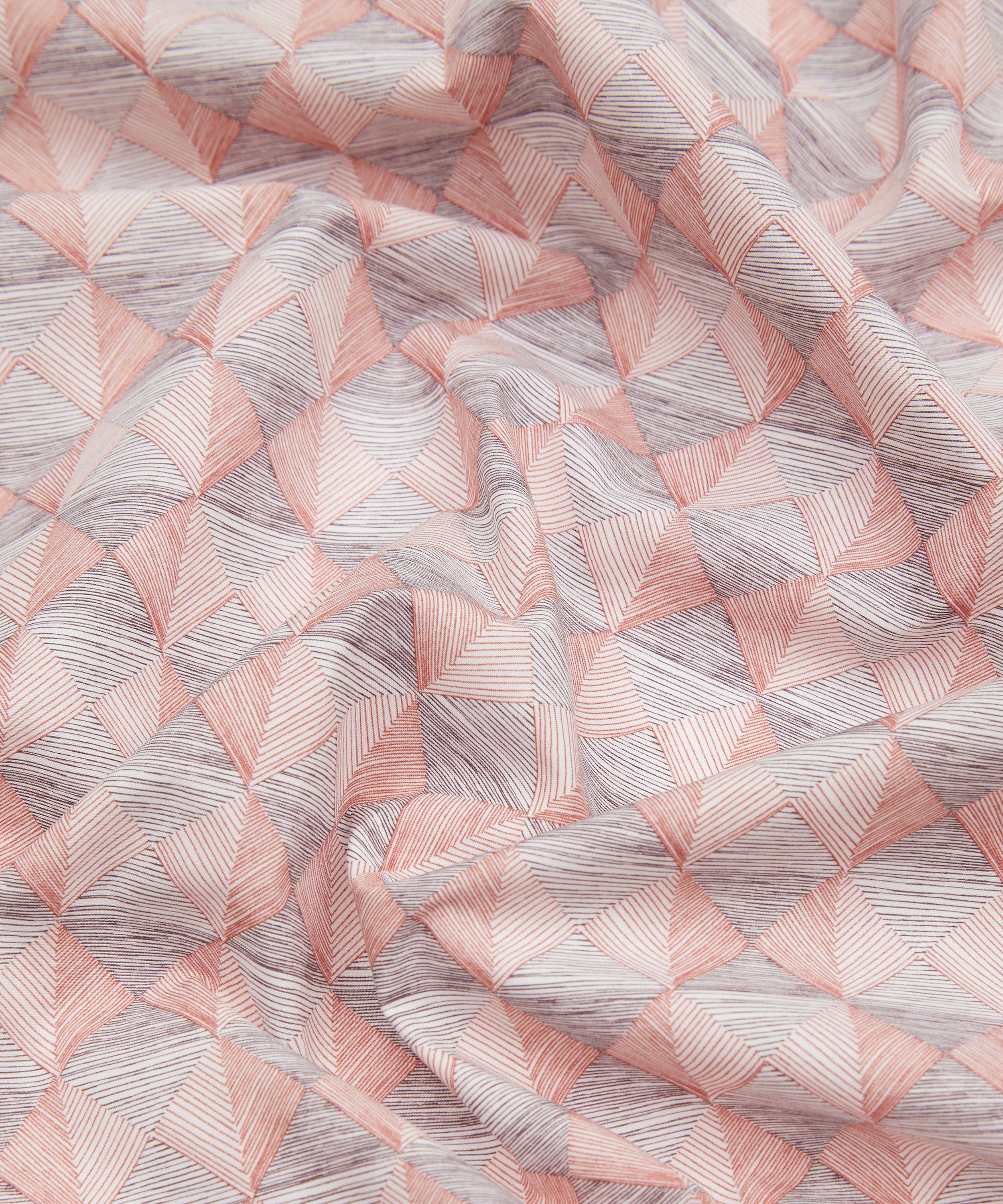 This small-scale textured geometric was inspired by the bevelled cabinet doors of a wooden bureau sketch, discovered in a 1904 Liberty furniture book. Versatile and easy to wear, its hand-drawn stripes cleverly convey depth and dimensionality, creating the effect of a check pattern. Continuously shifting according to the viewing angle, the diagonal, square or pyramidal shapes offer ever-changing perspectives. This print is part of the Craftsmanship narrative of this collection, exploring the creative process from within the Liberty archive, from print impressions and embroidered studies, to ceramics, jewellery, and furniture. Uncover the origins of the designers’ musings through artworks inspired by their sketchbooks and prototypes.
