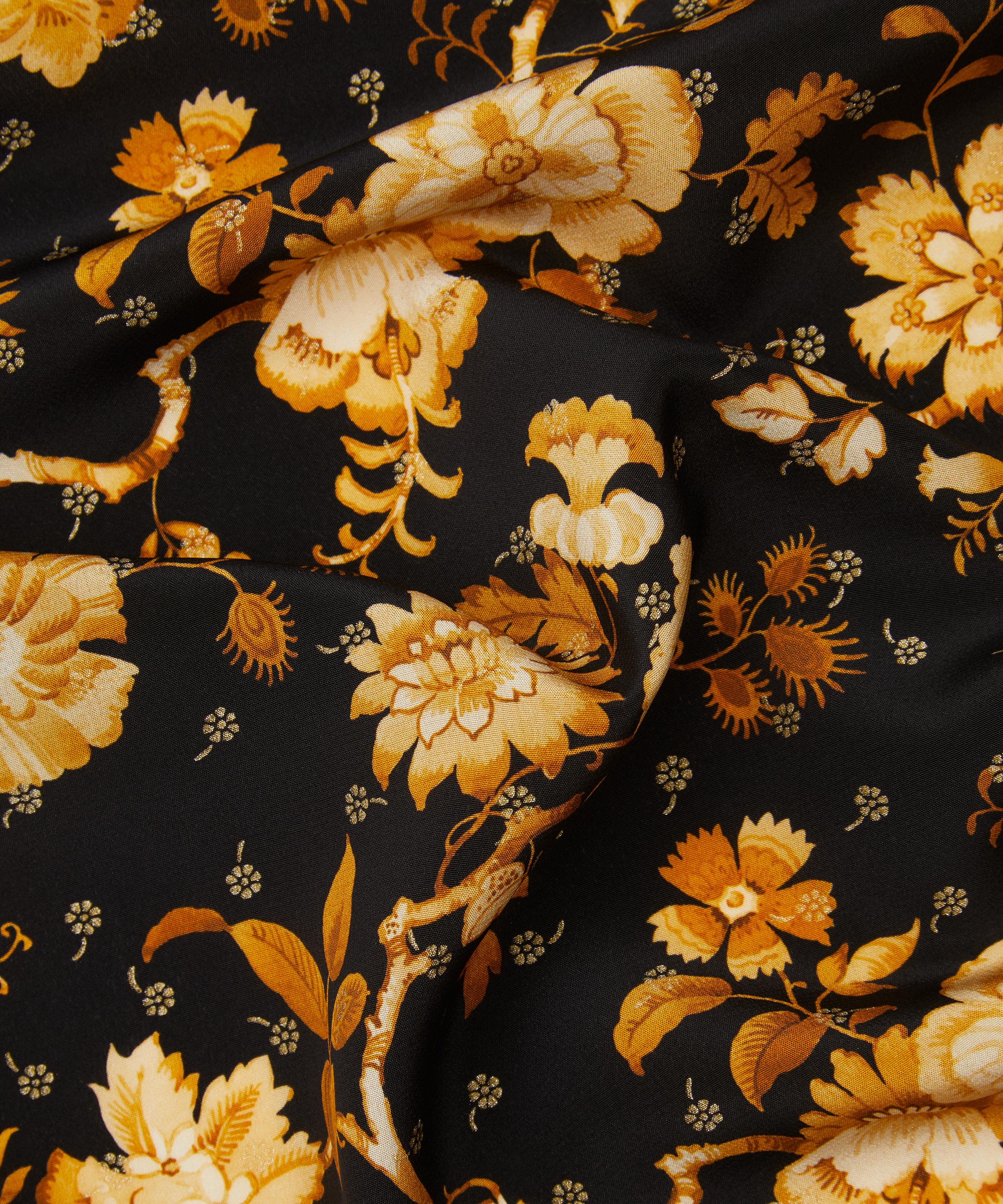 Crepe de chine is one of the best silk bases for daytime wear – it’s effortlessly luxe, with a lightweight drape that’s made more durable by its matte, slightly rough surface. Try using crepe de chine to create a louche effect with wide-leg trousers and loosely tailored shirts, or with fluted sleeves and ruffled accents for a romantic feel.
