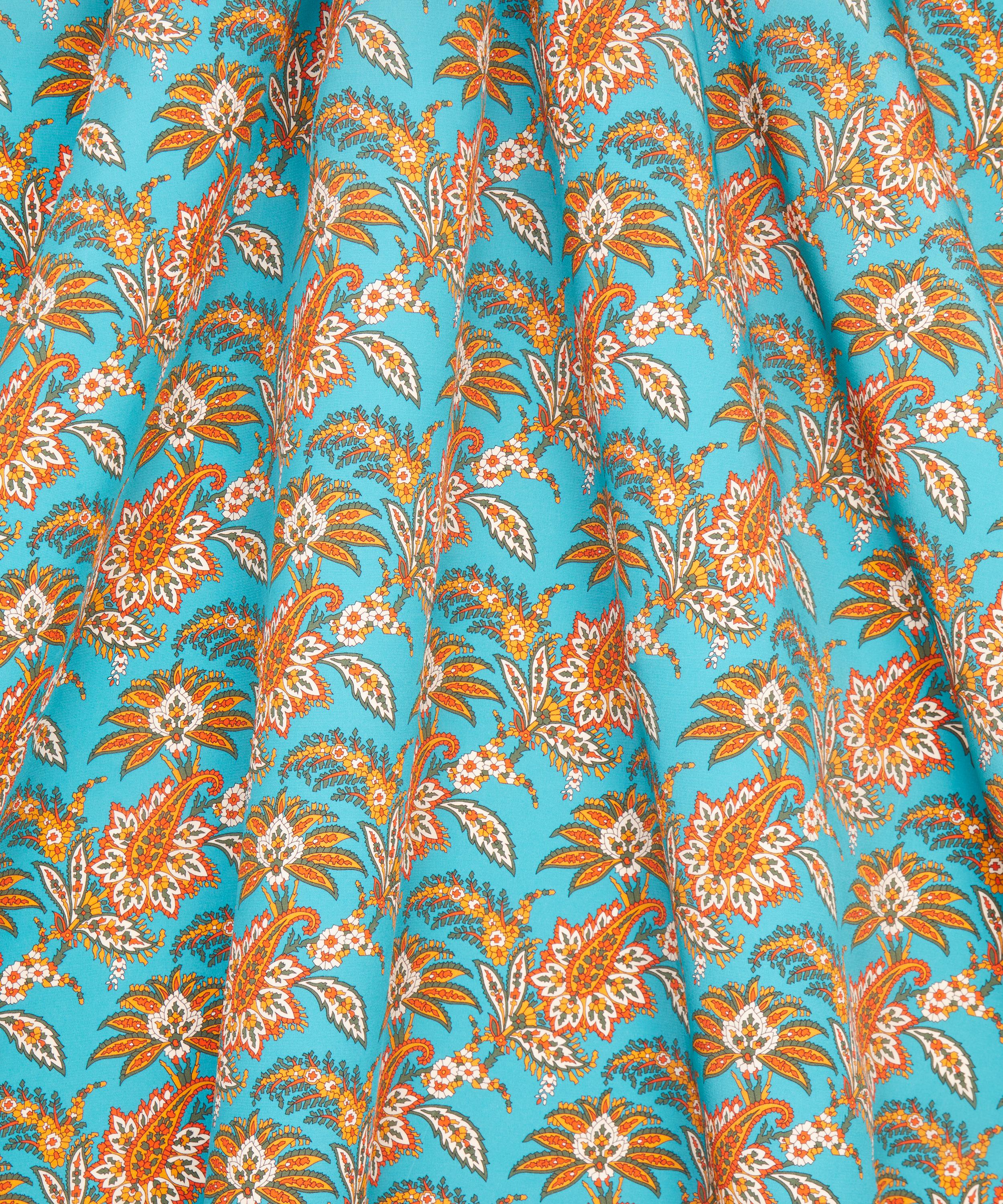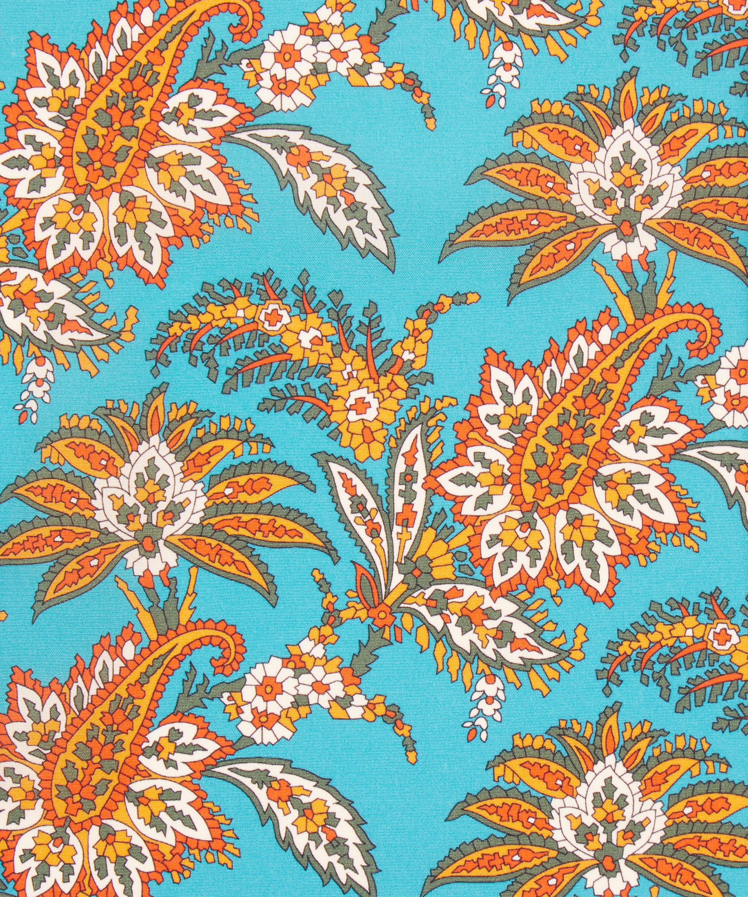 Sported by Florence Welch, this psychedelic-tinged botanical fern was originally printed for Liberty in 1963 during the hippie-influenced paisley resurgence of the 1960s and 1970s. This print is part of The Stage act of Retold, a look through our visually enthralling Liberty flagship which, with its atriums and galleries, forms the perfect stage for this performance to unfold – set with an eclectic collection of objets d’art from across the globe.