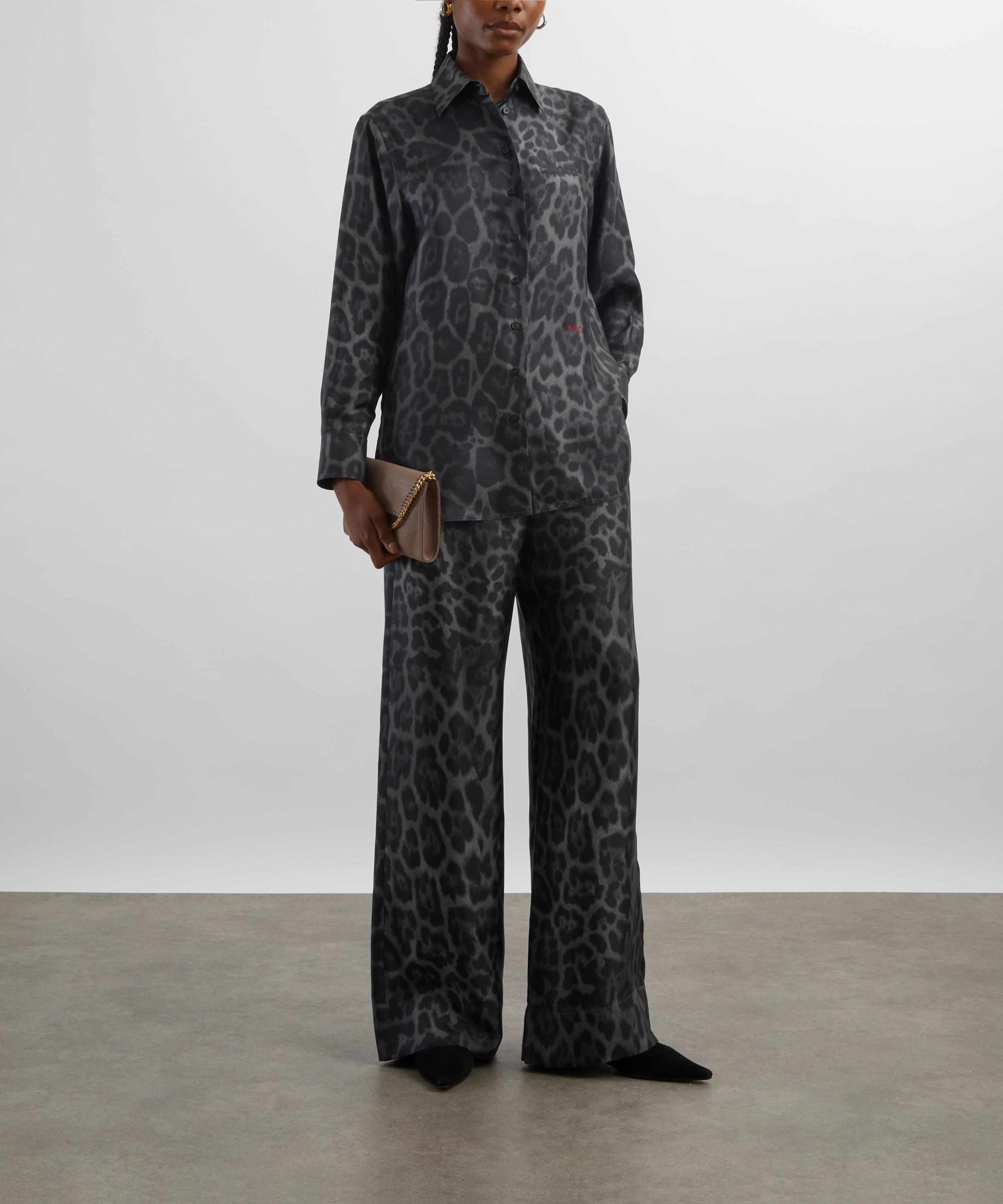 Stella McCartney Ash Grey Oversized Drawstring Leopard Trousers