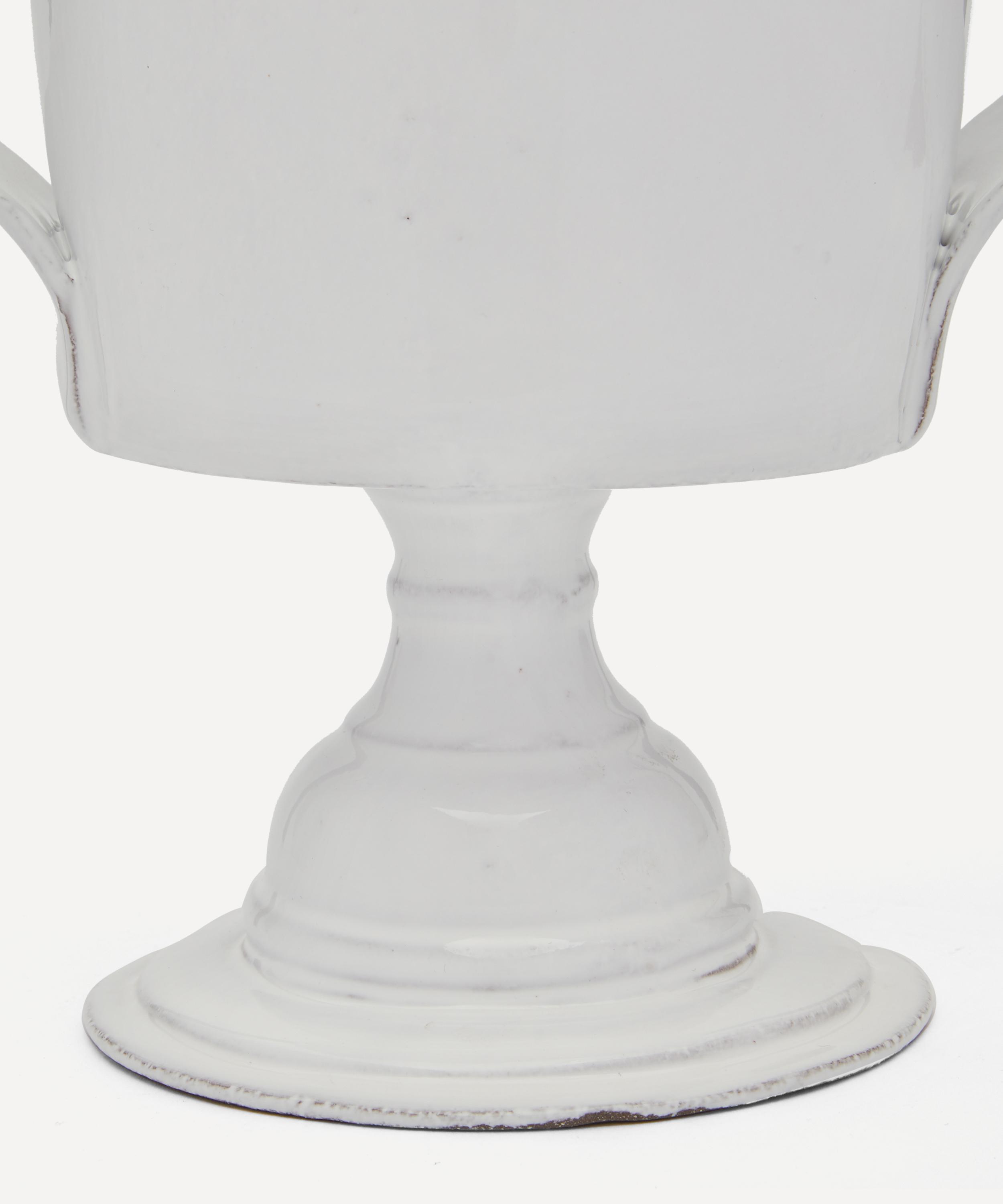 Votary of pre-industrial fabrication, Astier de Villatte is celebrated for being the one and only studio in Paris to hold and harbour the traditions of artisanal ceramic production. Restoring the ancestral systems of moulding and stamping, the Astier de Villatte vase is made using techniques from the Middle Ages which involve moulding a sheet of handmade clay, double firing the ‘biscuit’ piece and glazing the product in white enamel – a lengthy process that requires a drying time of up to one month. Characterised by its ribbon-like handles and goblet form, the vase is engraved with the brand’s signature crest - depicting an interlacing A & V - alongside the initials of one of the 40 master artisans who created it. Each handmade piece tells a beautiful story, it romances and imparts a sense of nostalgia into its owner. Use this perfectly imperfect vase to display verdant fronds or vibrant bouquets.