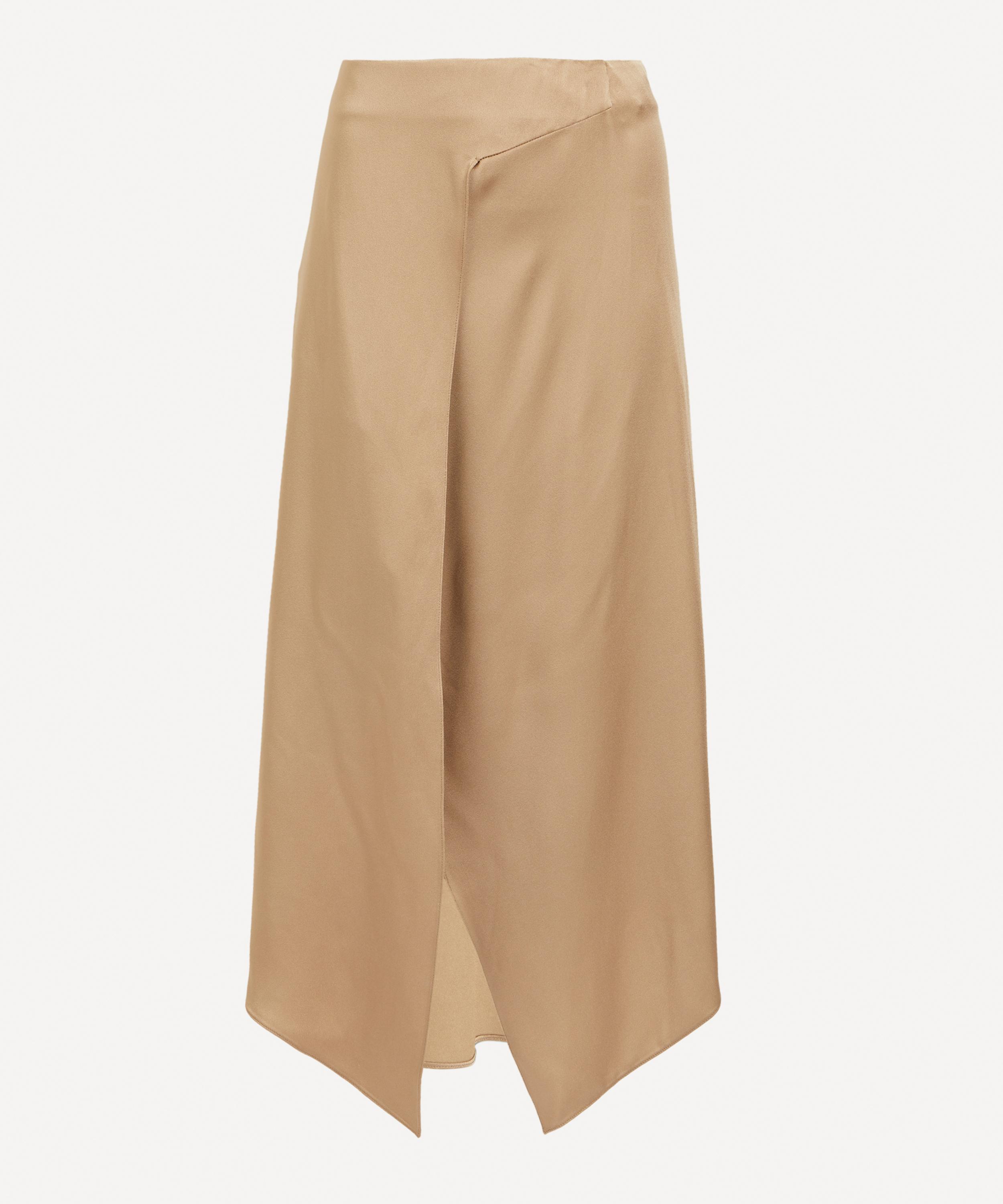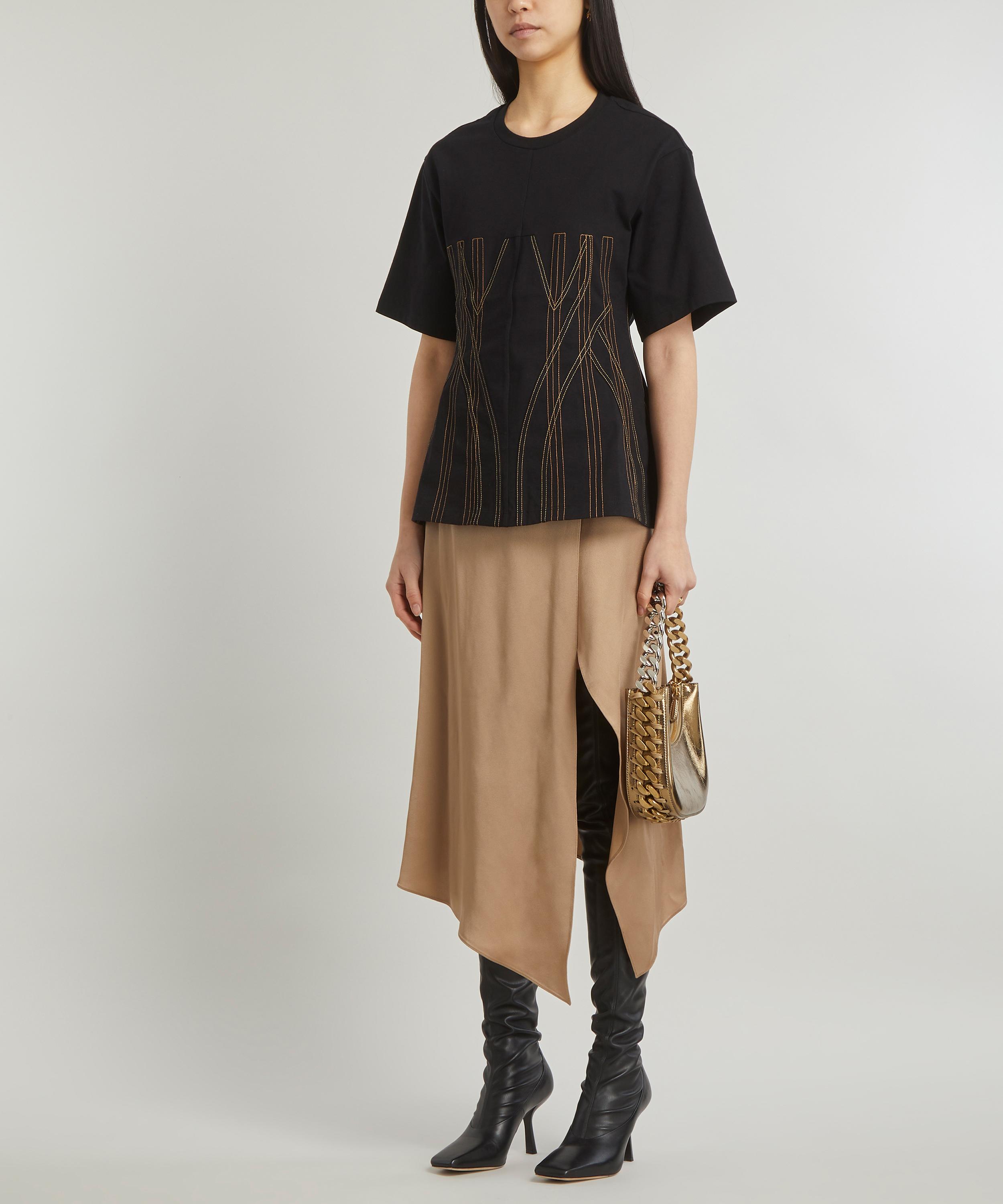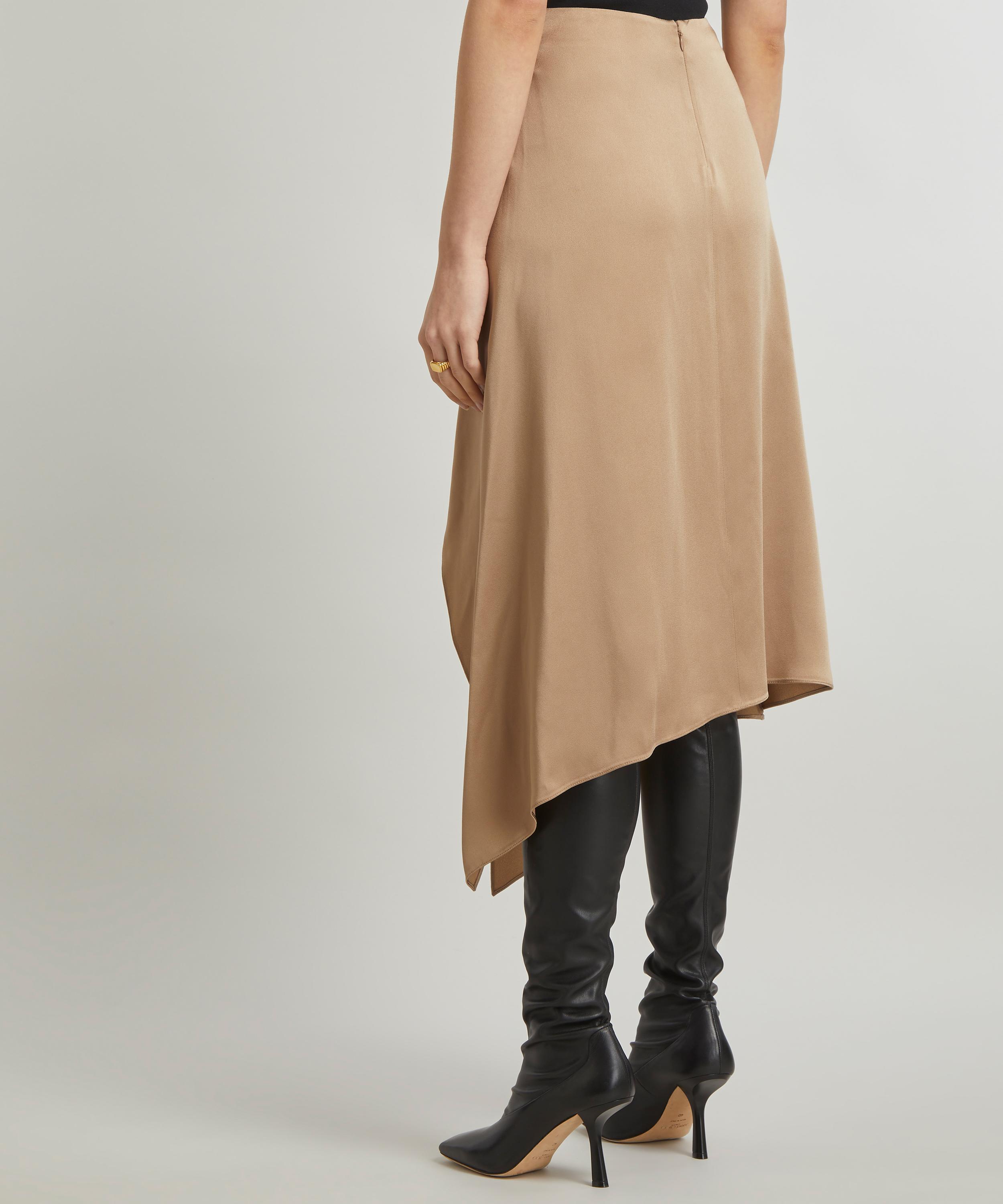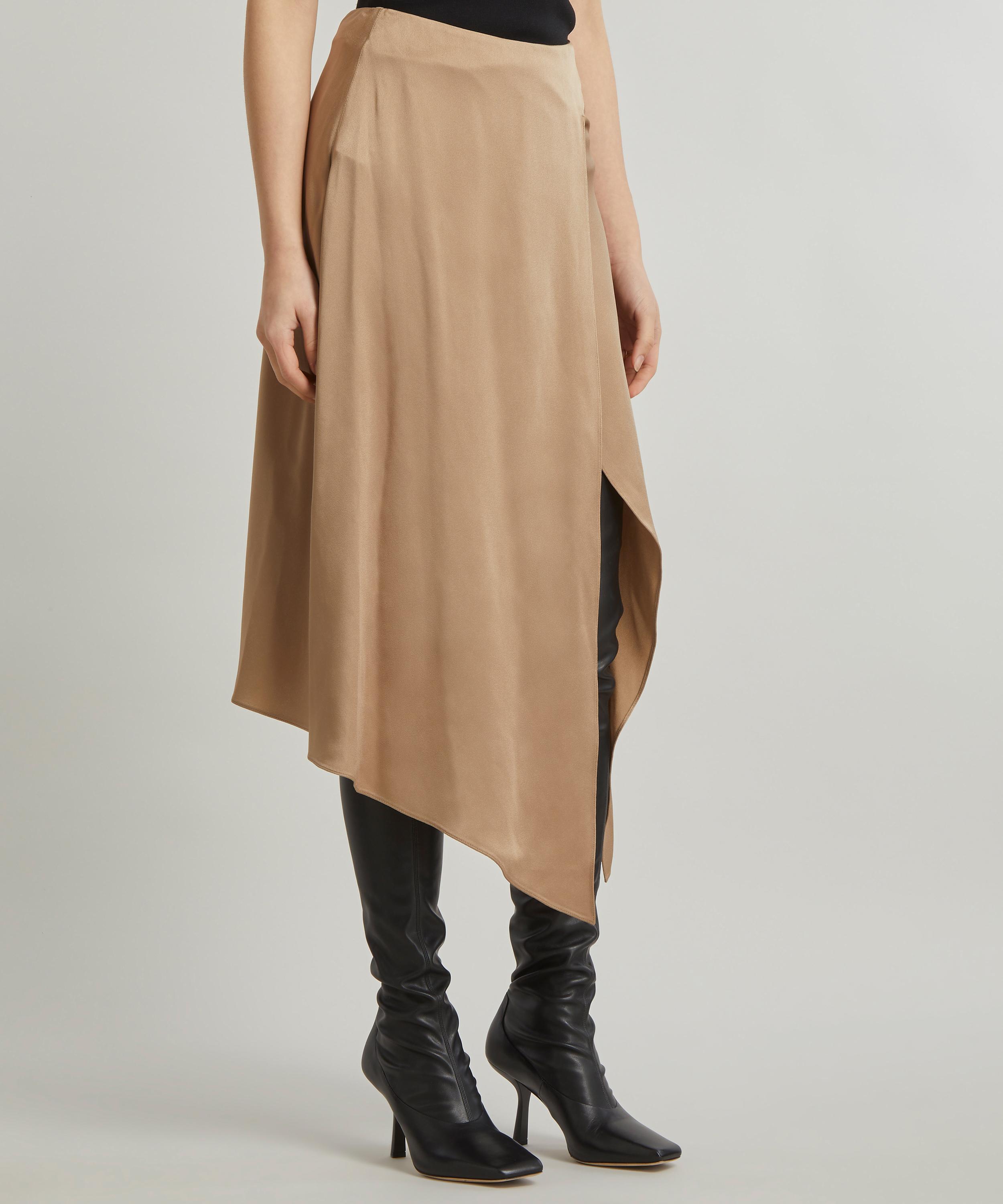 Effortlessly chic with a contemporary twist, this asymmetric midi-skirt from Stella McCartney showcases the label’s signature sophisticated style. Lightweight and loose with its classic A-line silhouette, its fitted high-waist falls to a flowy, asymmetric hem featuring a sensuous side-slit.