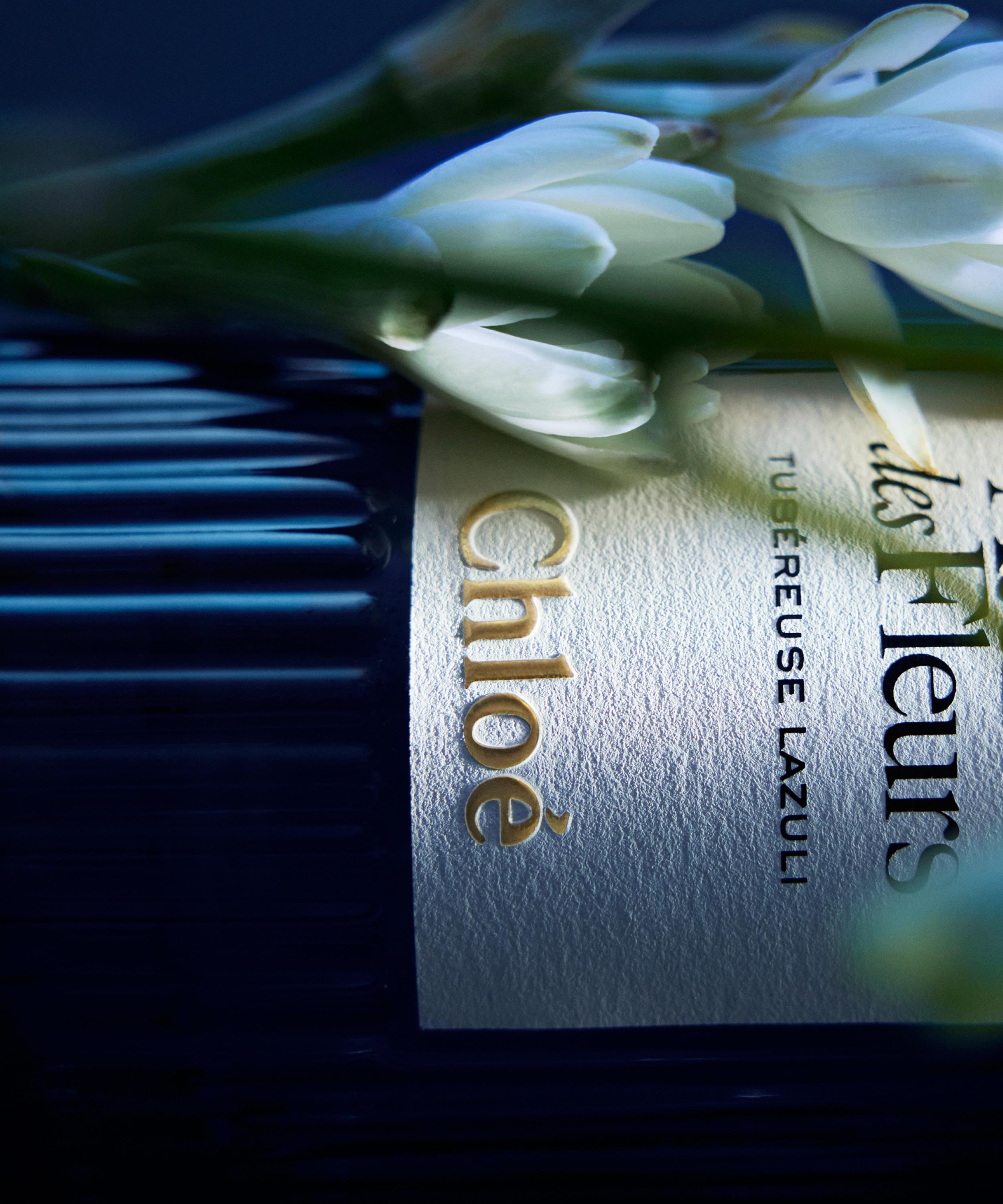 An invitation to discover the captivating aromas of nocturnal blooms, Chloé's Tubéreuse Lazuli eau de parfum reveals a sophisticated floral, woody fragrance.
